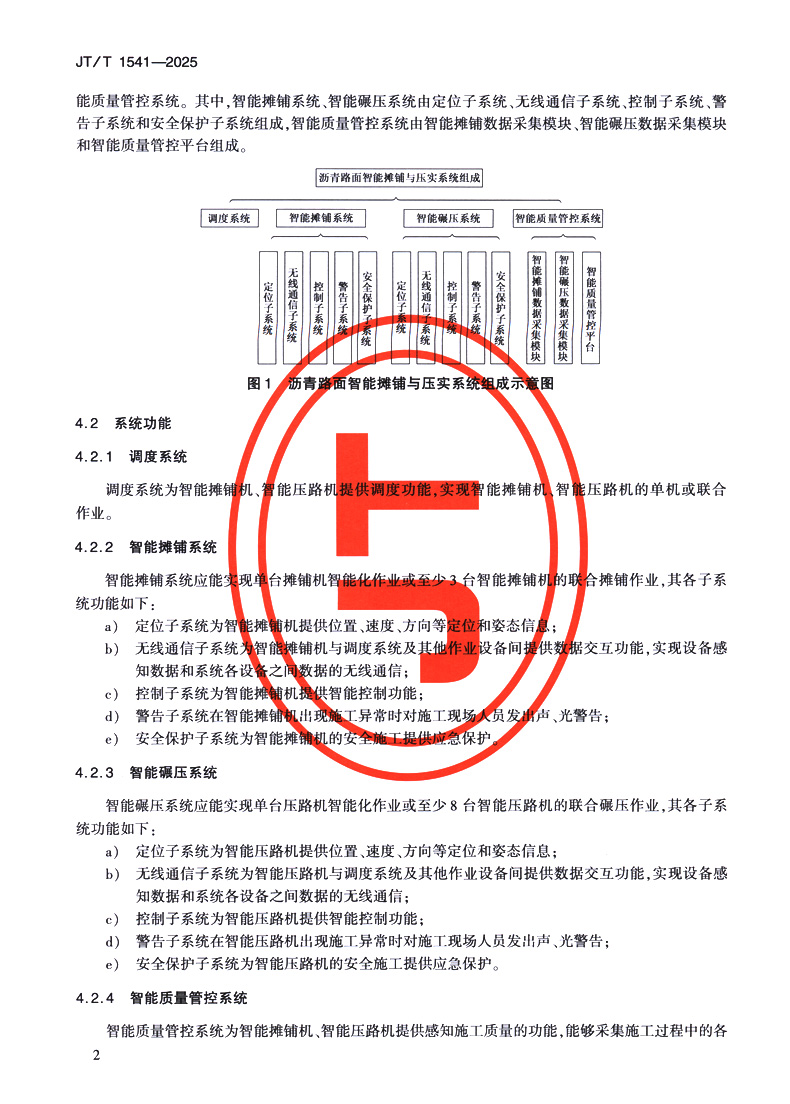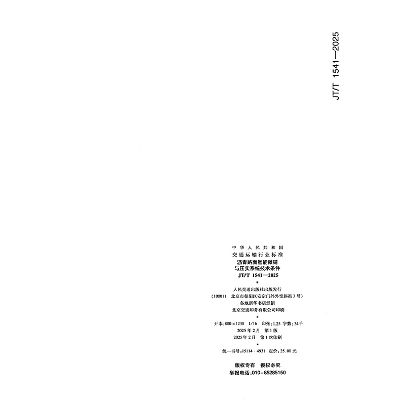 书名:沥青路面智能摊铺与压实系统技术条件(JT/T 1541—2025)