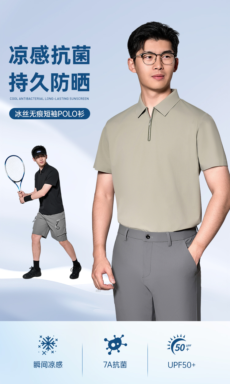 【7A抑菌凉感速干防晒短袖POLO衫】休闲运动短袖T恤 无缝压胶翻领半袖LT509