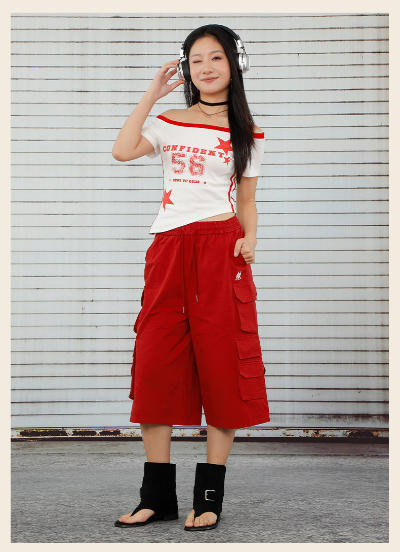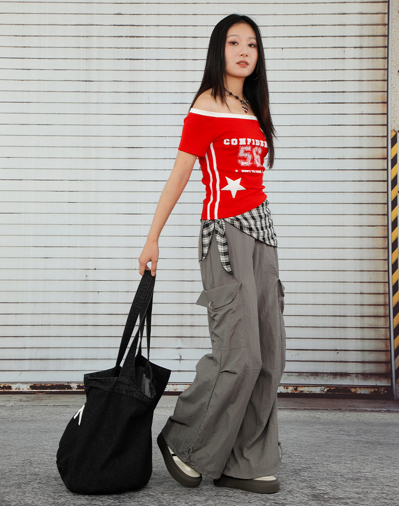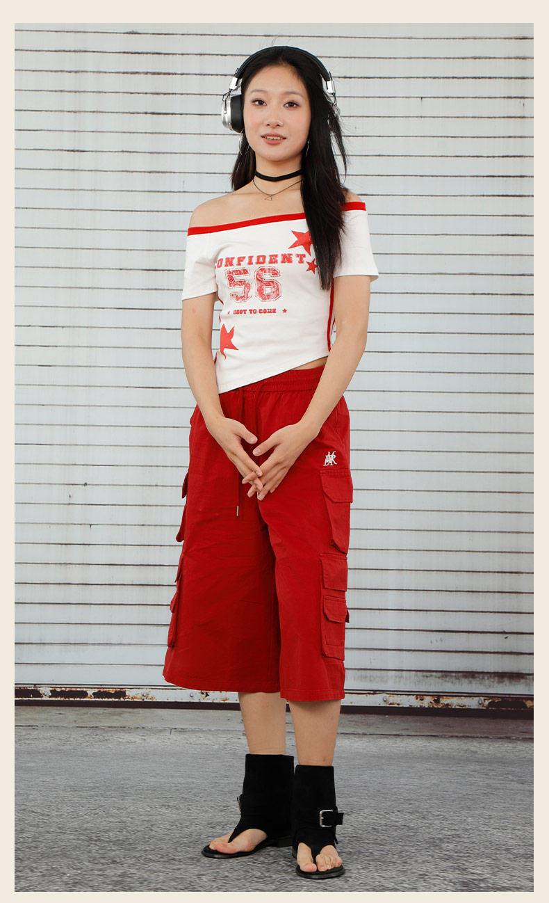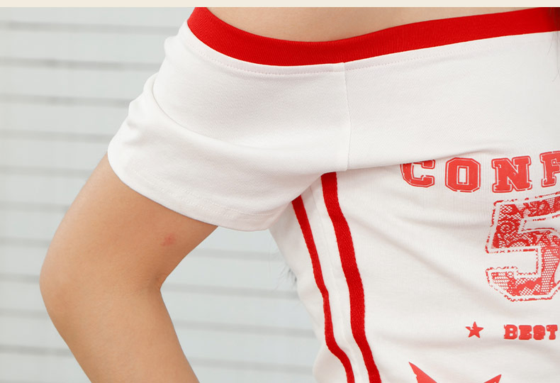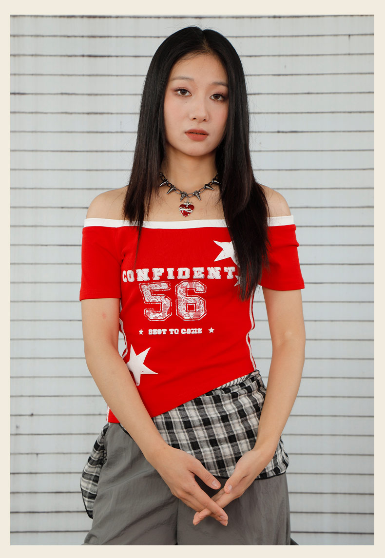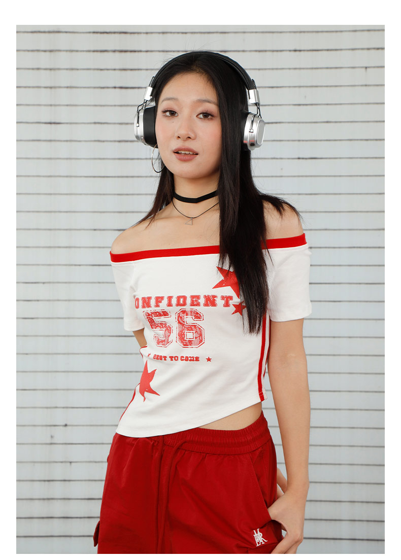 【商场同款】女款时尚泽西风字母斜肩T恤纪念日百货163302409