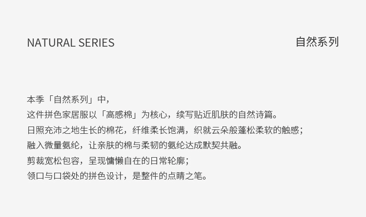 【比裸睡还舒适的家居服套装】壳木高感棉 · 拼色家居服9841,亲肤软糯,自然舒适