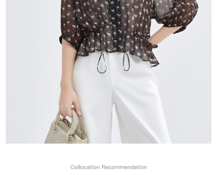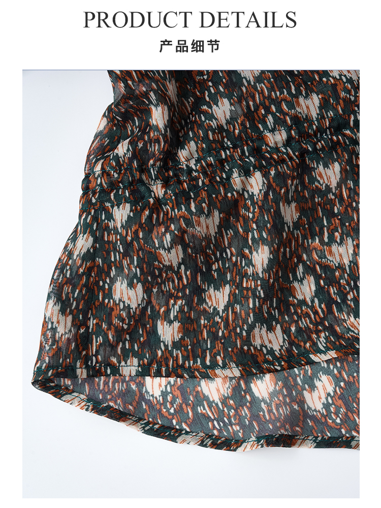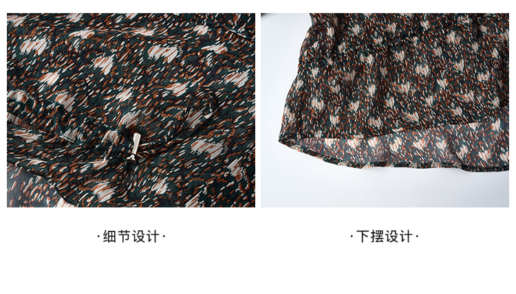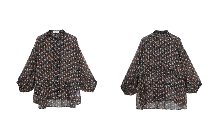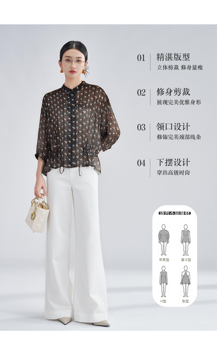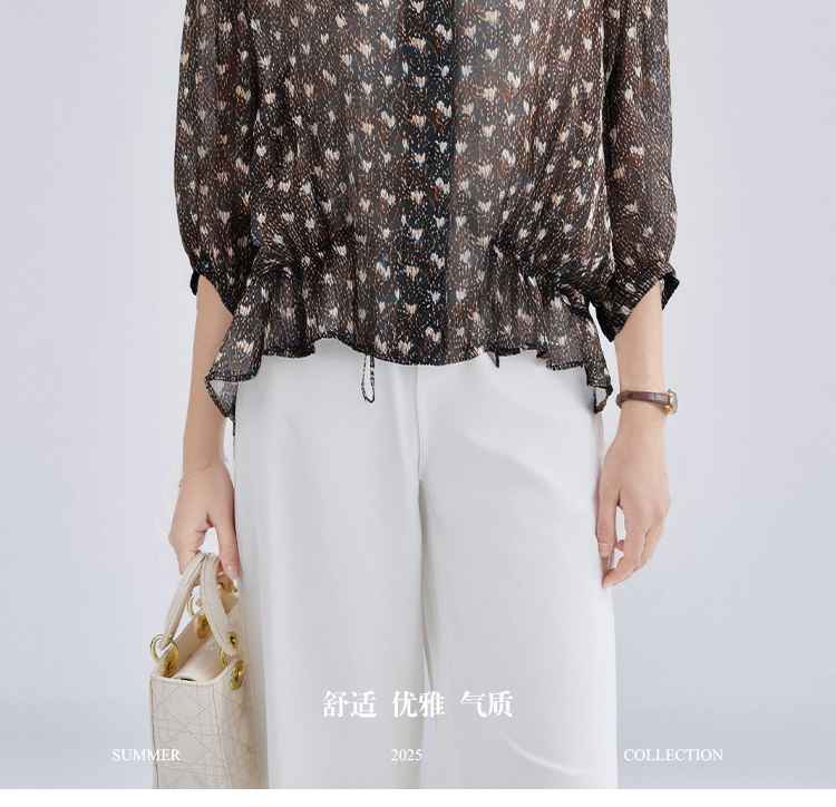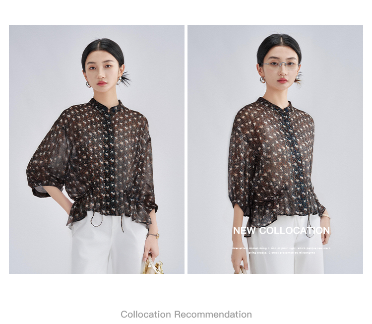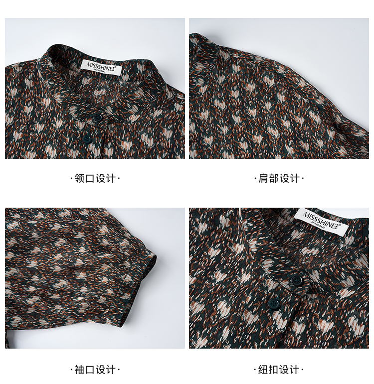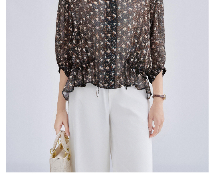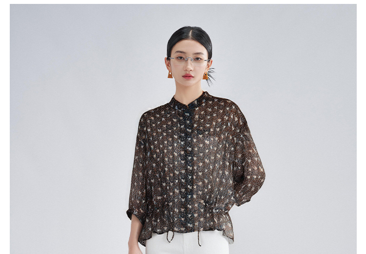 米思阳通勤优雅印花雪纺衬衫减龄宽松蝙蝠袖收腰显瘦衬衣女4276