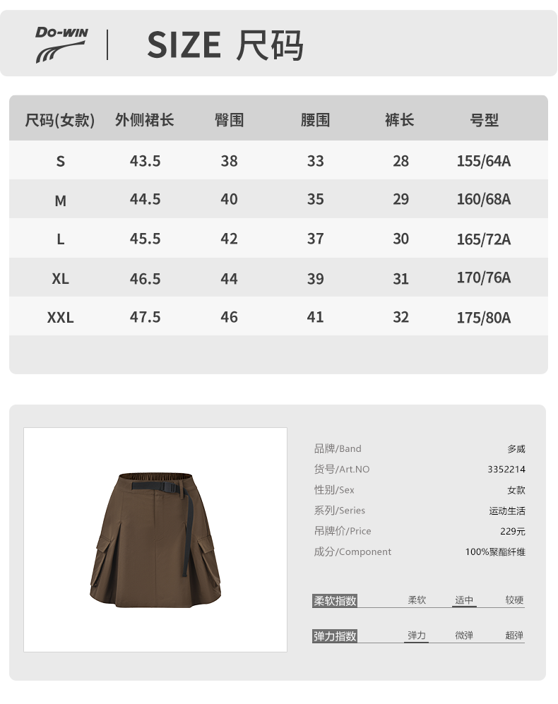 多威新款休闲运动户外工装女士半身裙3352214