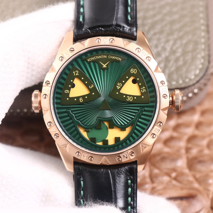 TW俄罗斯小丑【最高版本V3S真功能快调月相】与原版同步,取得最大成功【没有任何盲区】全面升级【"突破"钟表行业年度大作】AHCI独立制表协会主席康斯坦丁·切金Konstantin Chaykin大师匠心之作【技术突破】表盘表情神采不断变化的小丑脸,转动的眼睛,疯狂的面容,和吐出的红色舌头,表情变化非常丰富,两只眼睛分别为分钟和小时的指示,月相显示(笑脸),每天有2万多种表情变化,幽默性质的独特的设计元素【表壳直径42mmX11.8mm与原装同步】采用进口(全自动精工机械)手表自制机芯,功能百分百同步原版,走时稳定,素质坚挺。整体细节圈口侧面精细CNC打磨耗时费力多次调整模具,确保神韵和感觉能与原装相媲美,满足您对俄罗斯小丑"笑脸"的一切美好情怀。