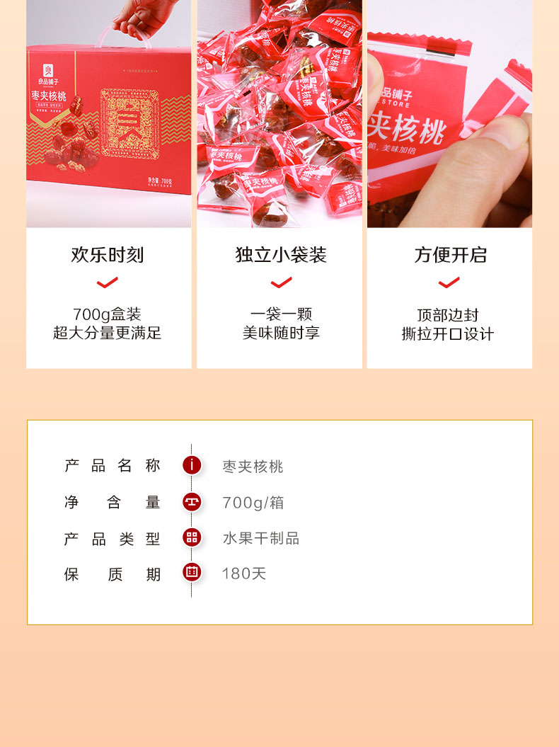 良品铺子 良品如意枣 枣夹核桃700g 休闲零食大礼包免洗红枣大枣夹新疆核桃仁包蜜饯果干果脯