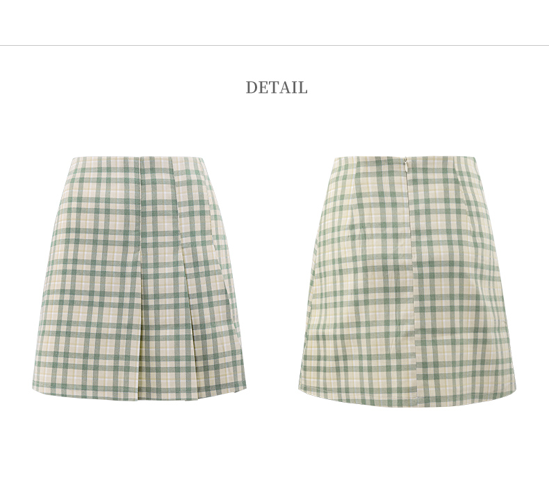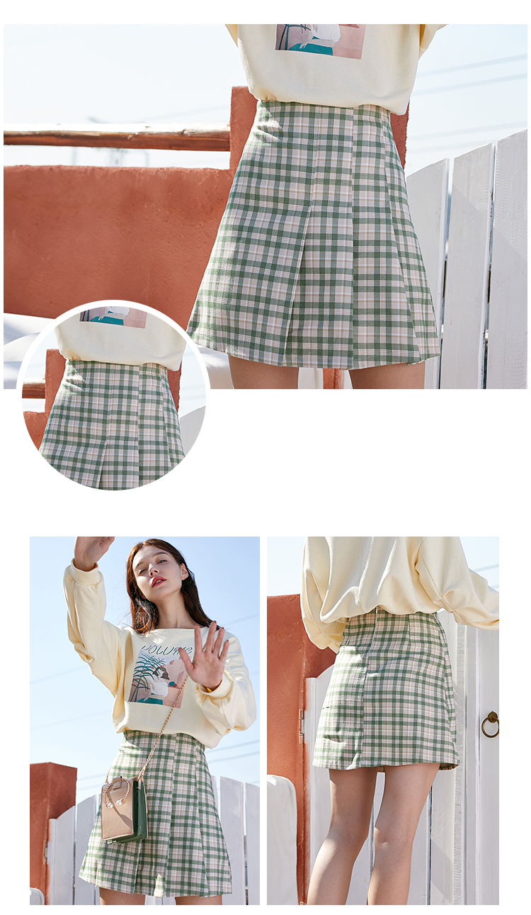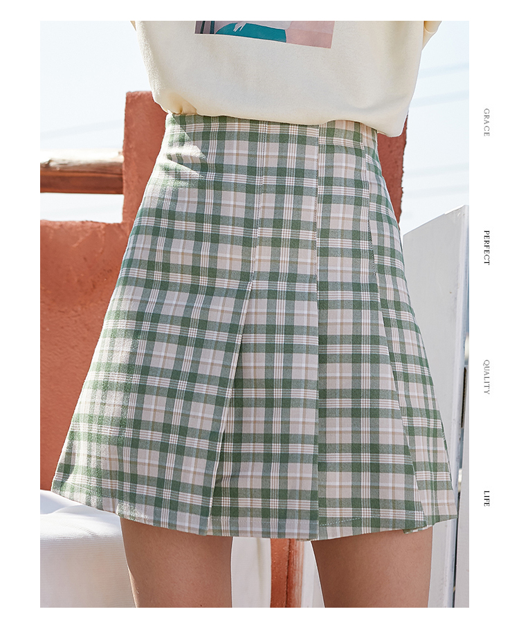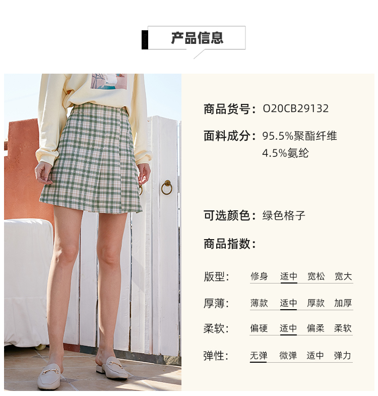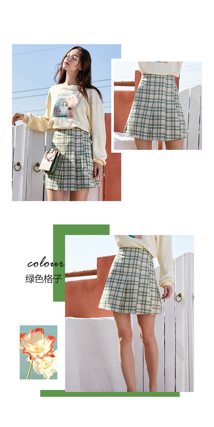 欧芮儿春季新款百褶格子半身裙女修身显瘦A字裙时尚气质短裙