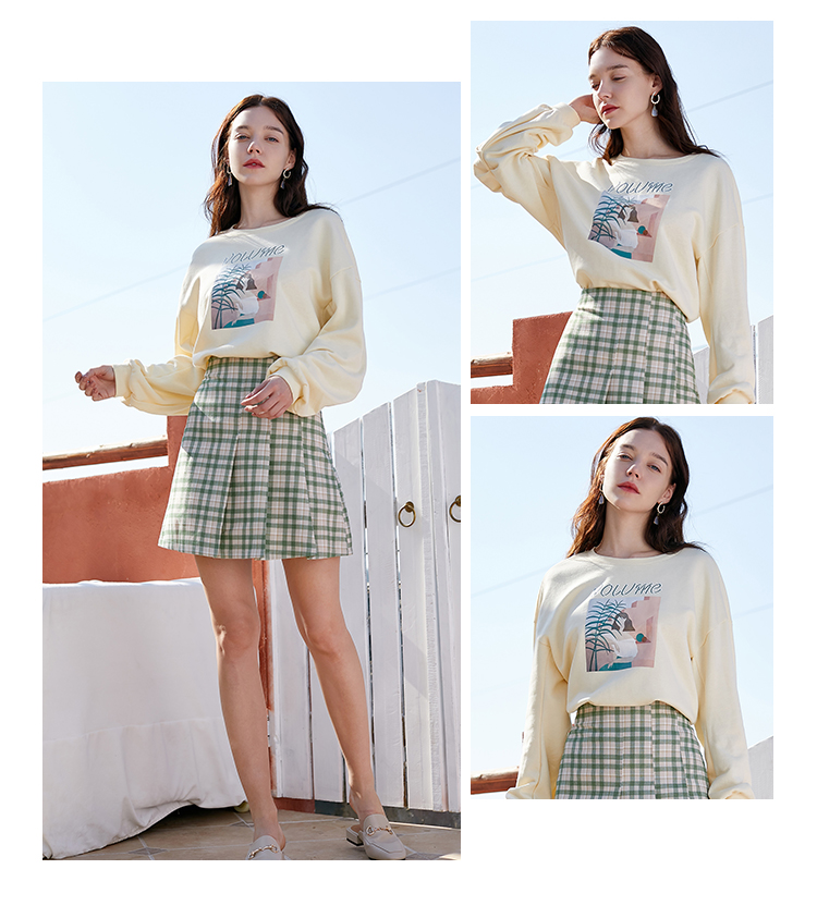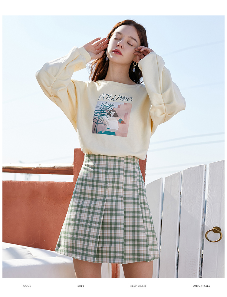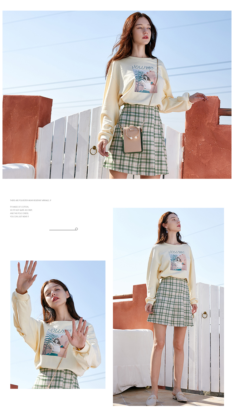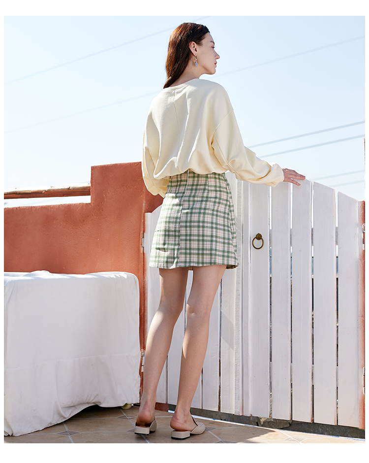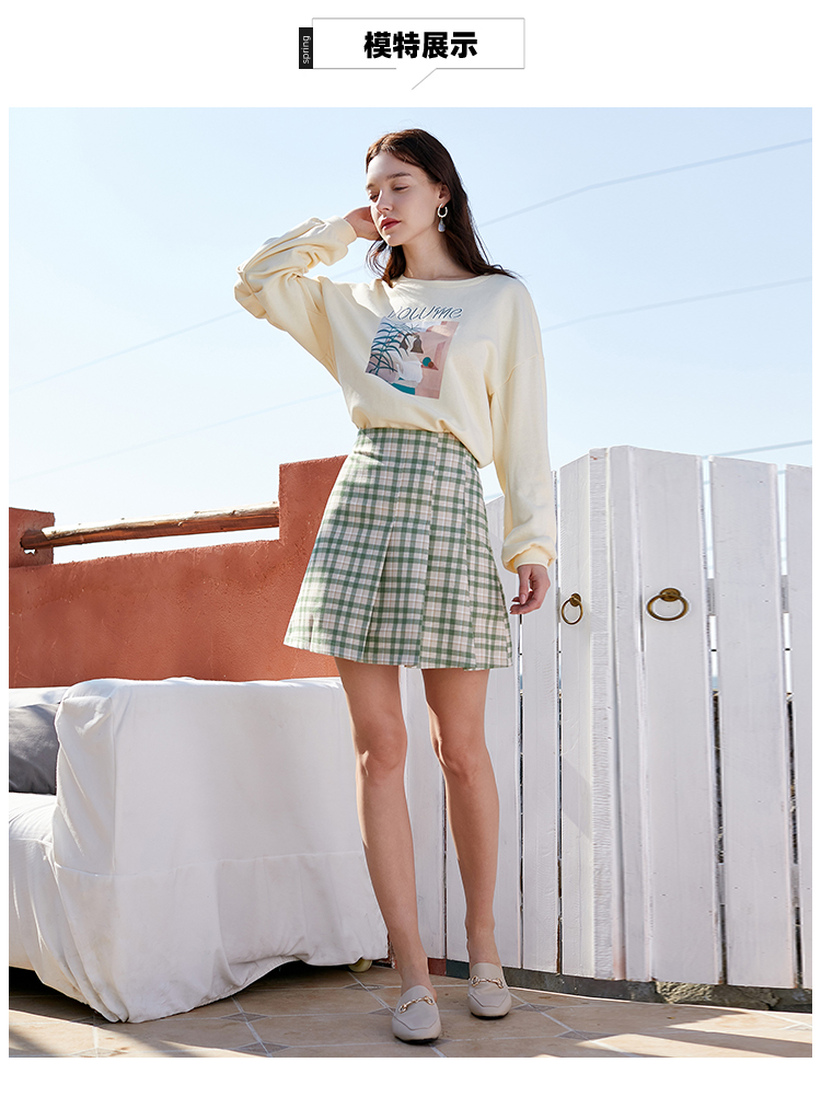 欧芮儿春季新款百褶格子半身裙女修身显瘦A字裙时尚气质短裙