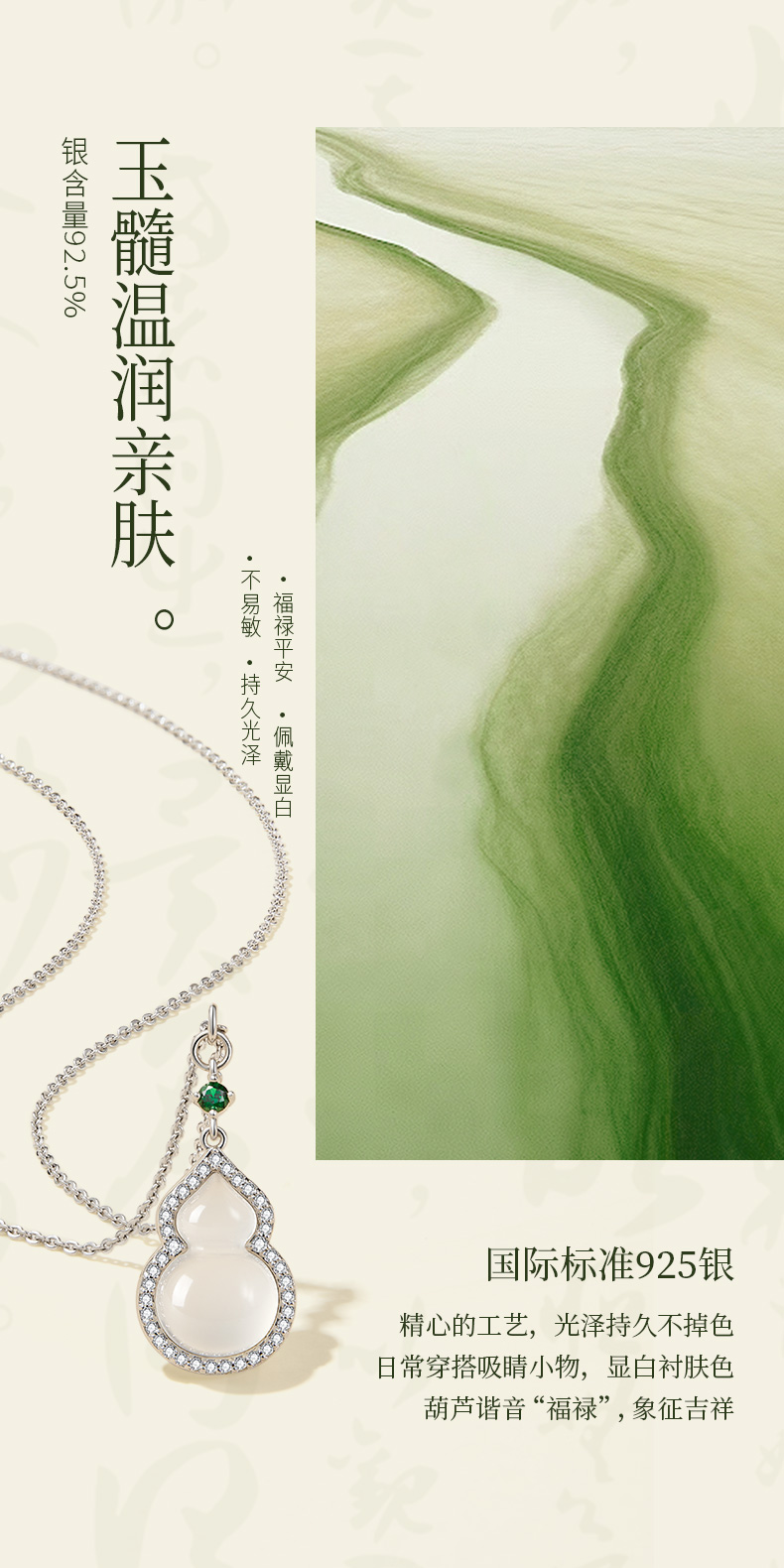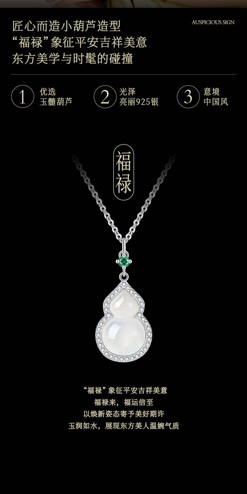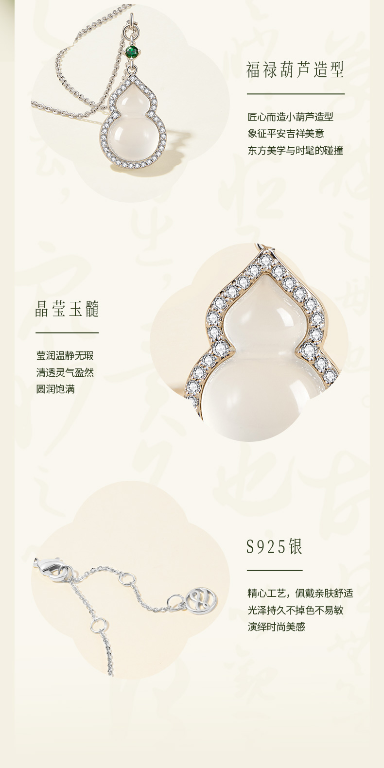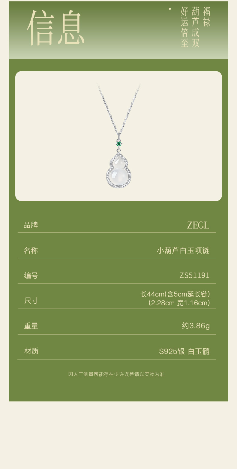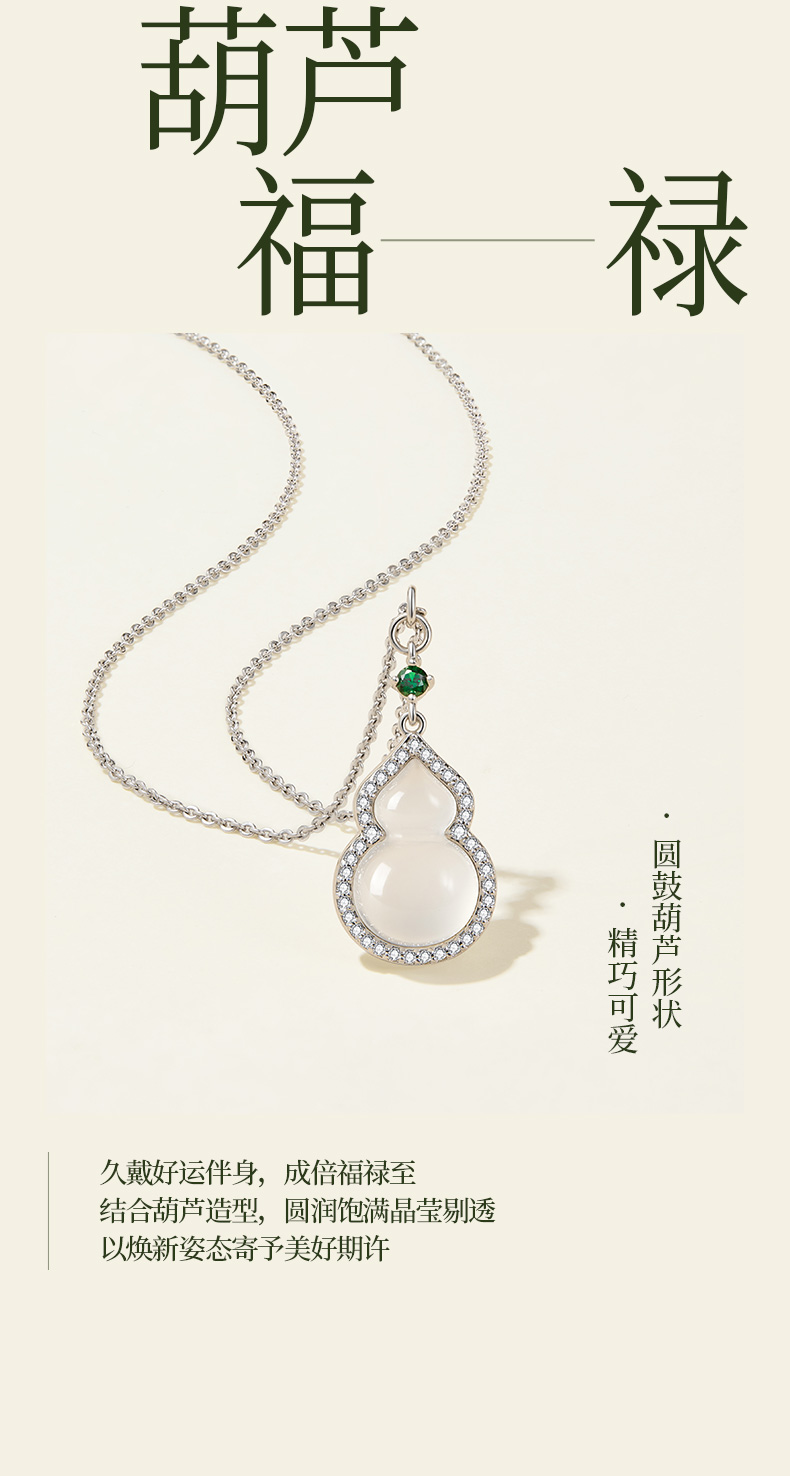 ZEGL设计师925银母亲节礼物白玉髓项链女款2024新款小葫芦锁骨链