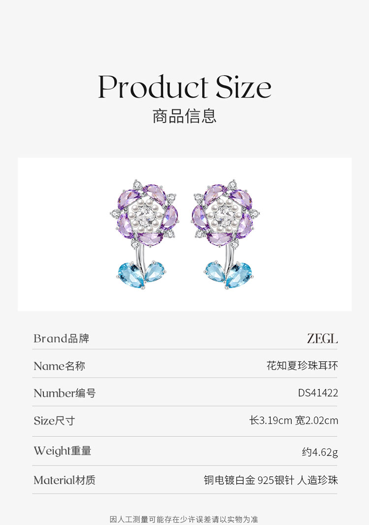ZEGL设计师花知夏系列森系花朵耳环女2023年新款爆款耳钉银针耳饰