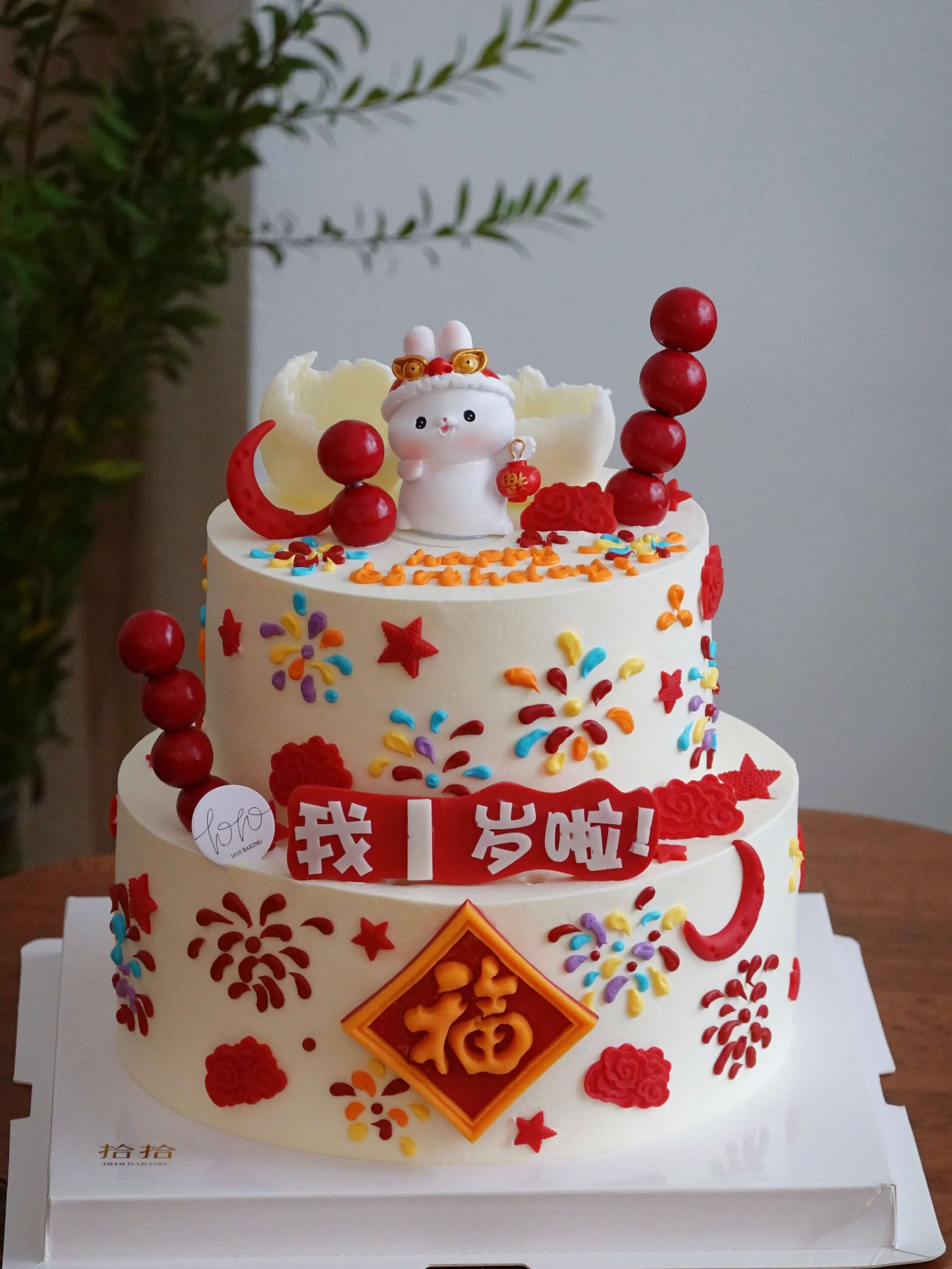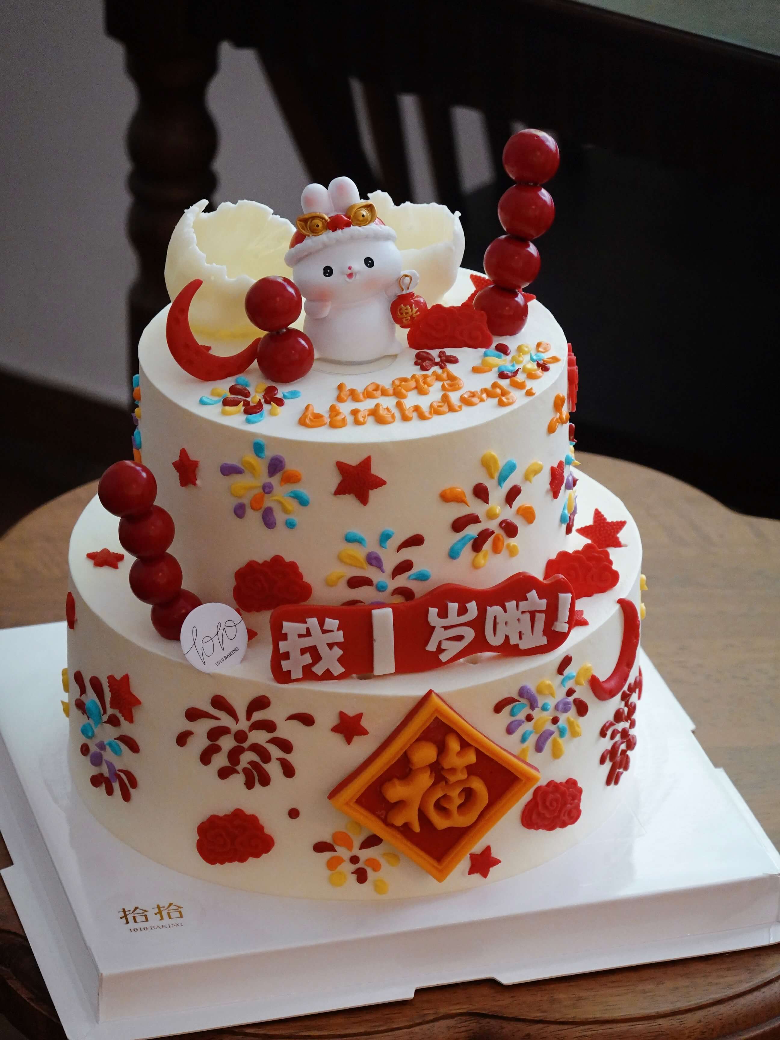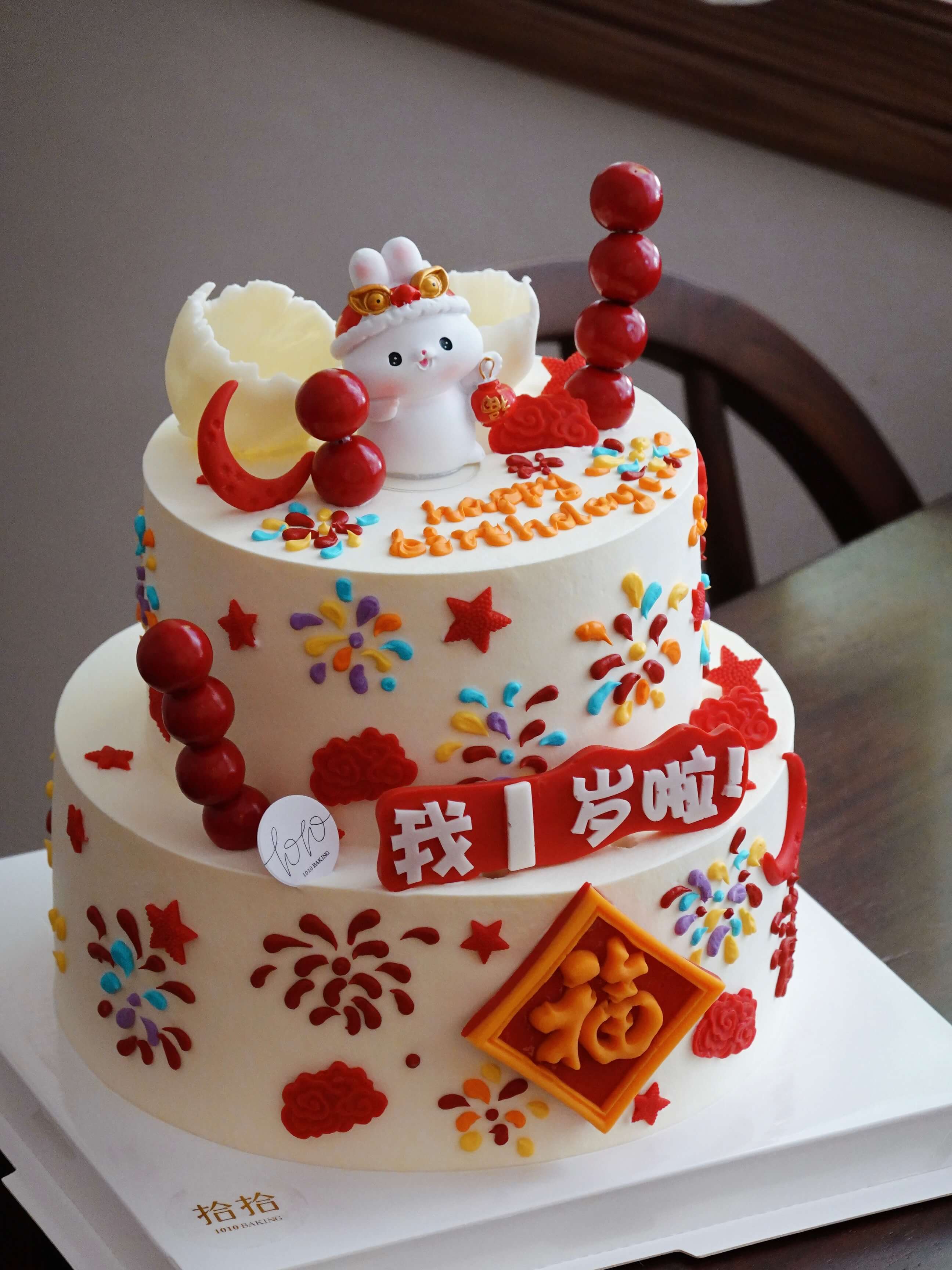 「小兔子·国风」岁数可改·翻糖巧克力·100%动物奶油(附图6+8寸双层·提前3天预订)