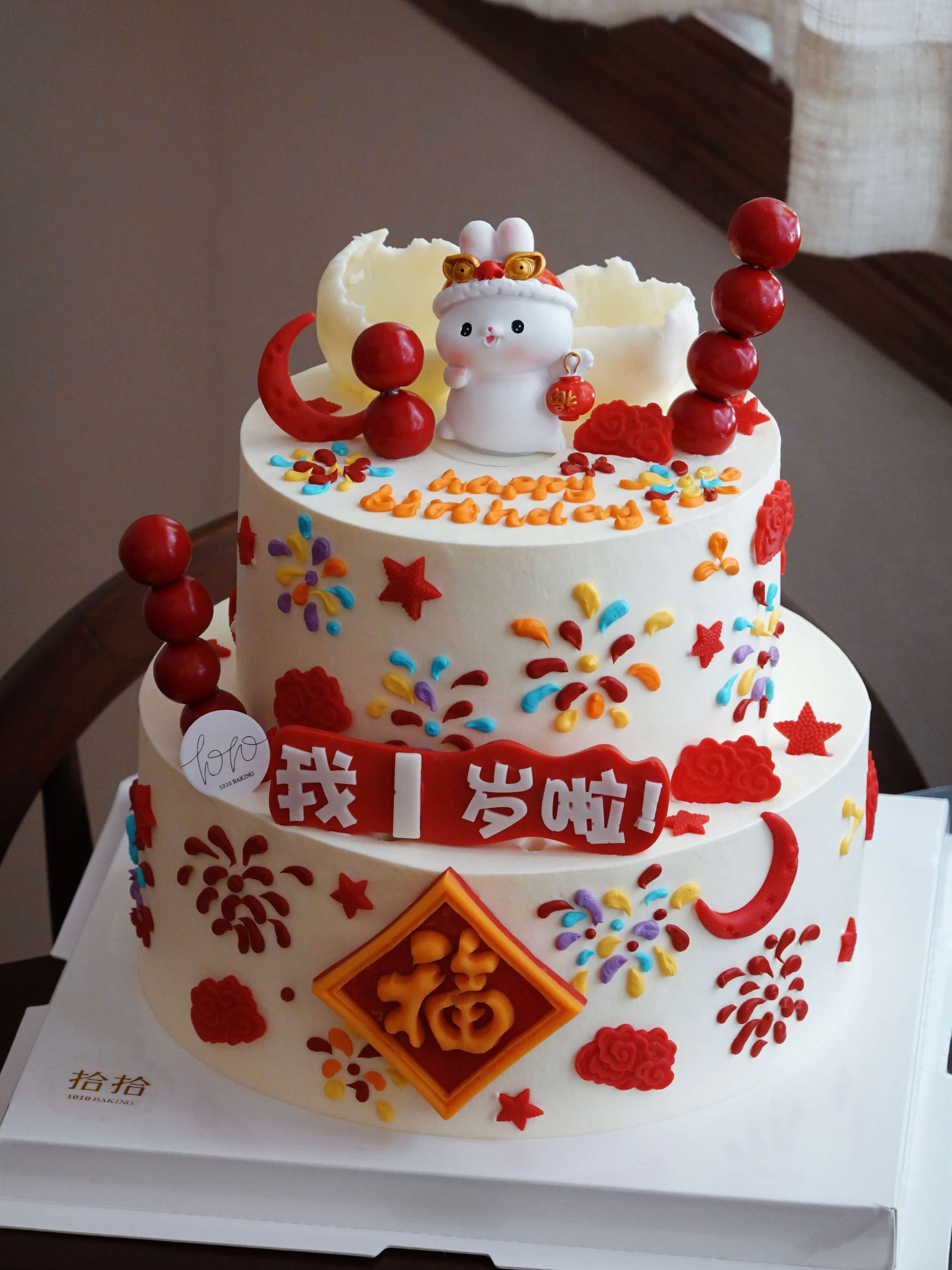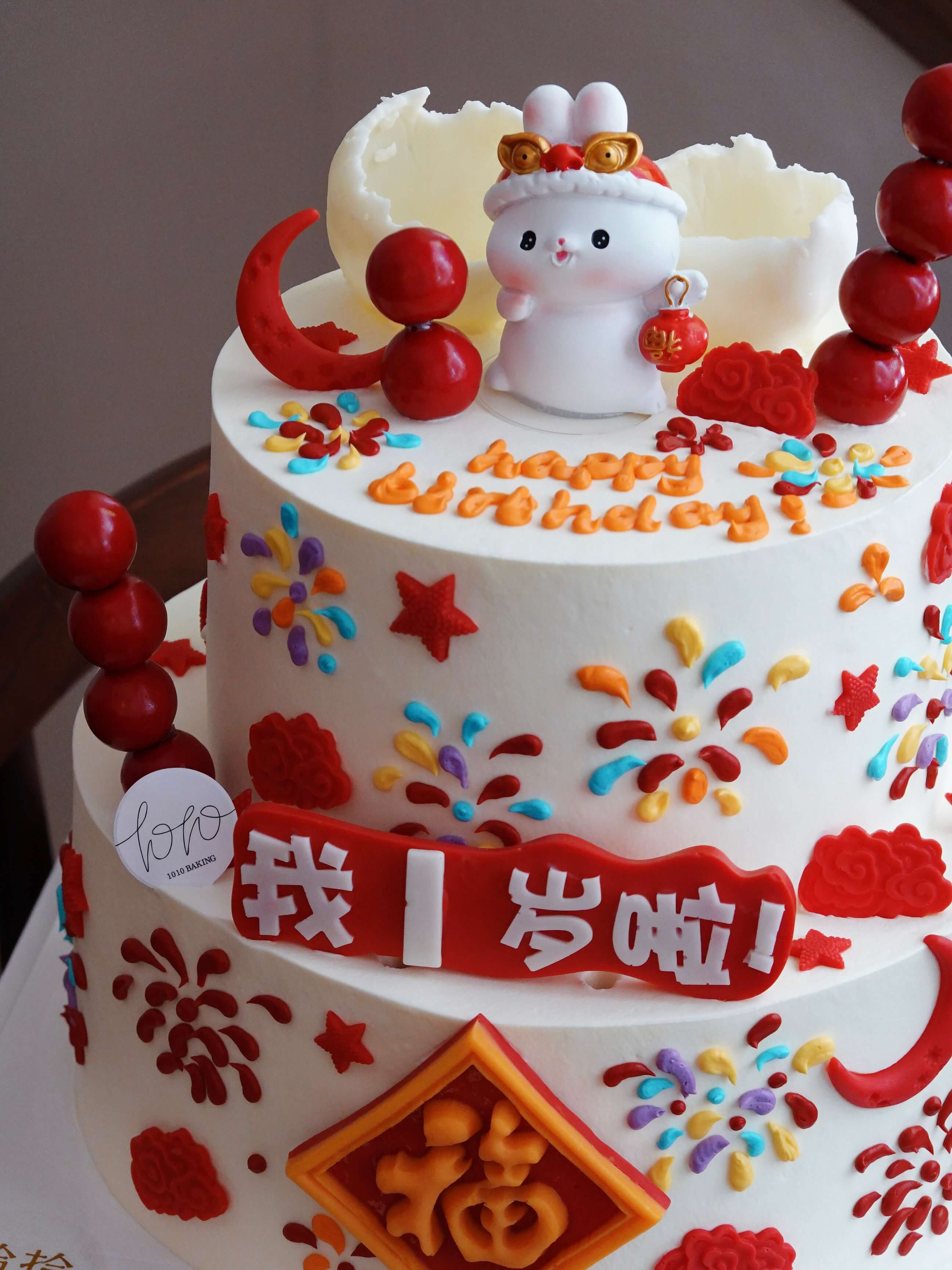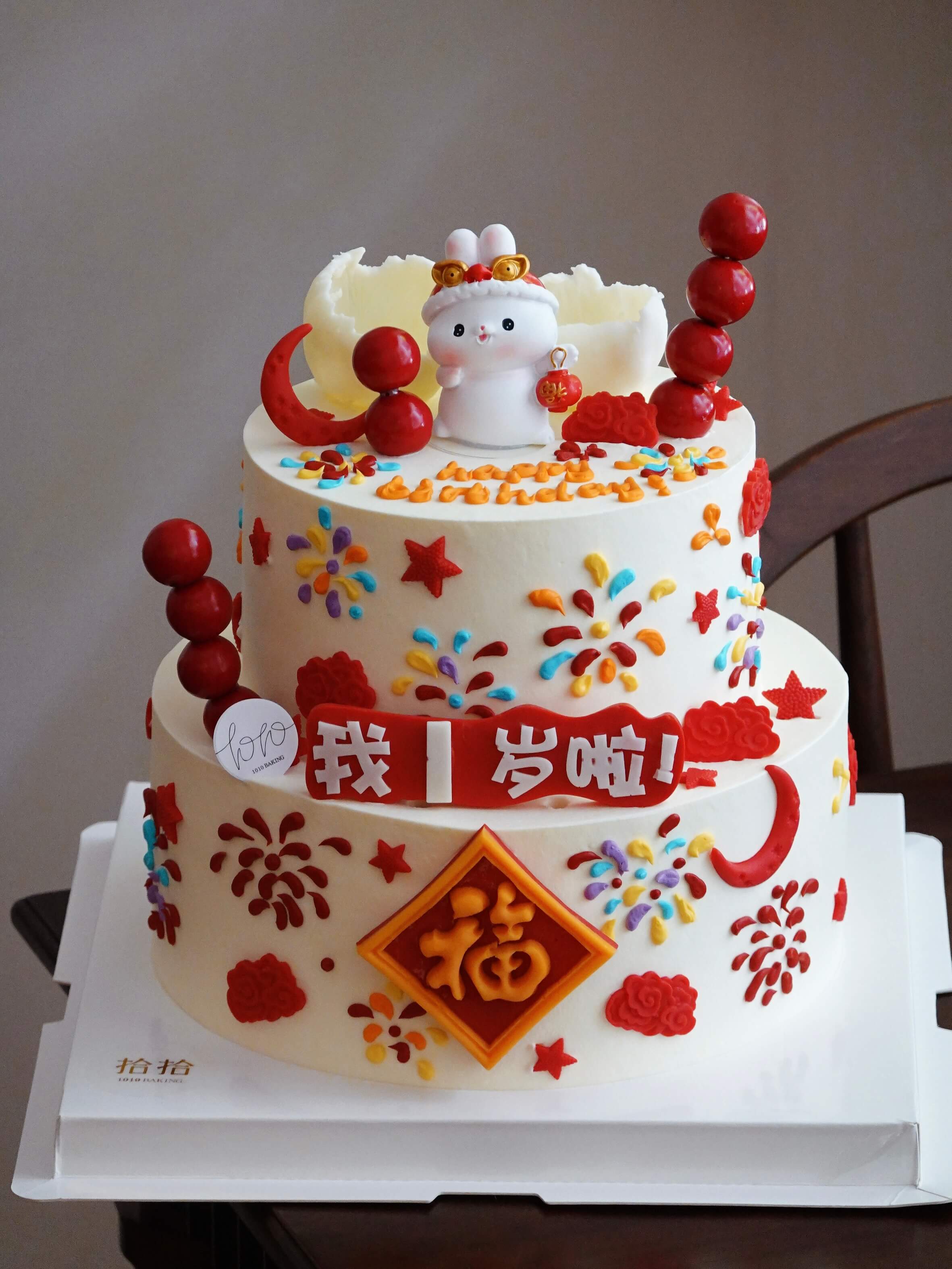 「小兔子·国风」岁数可改·翻糖巧克力·100%动物奶油(附图6+8寸双层·提前3天预订)