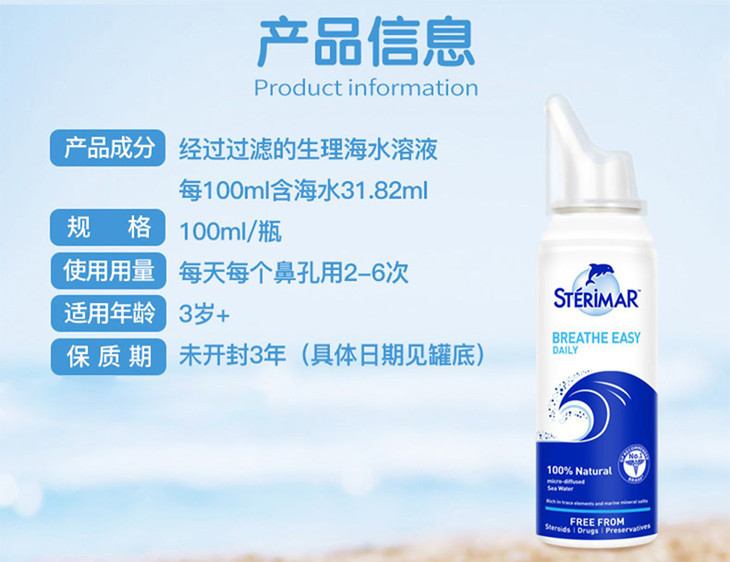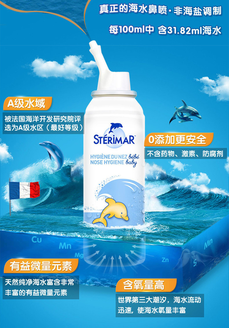 法国Sterimar 小海豚 纯海水鼻腔清洗喷雾 100ml