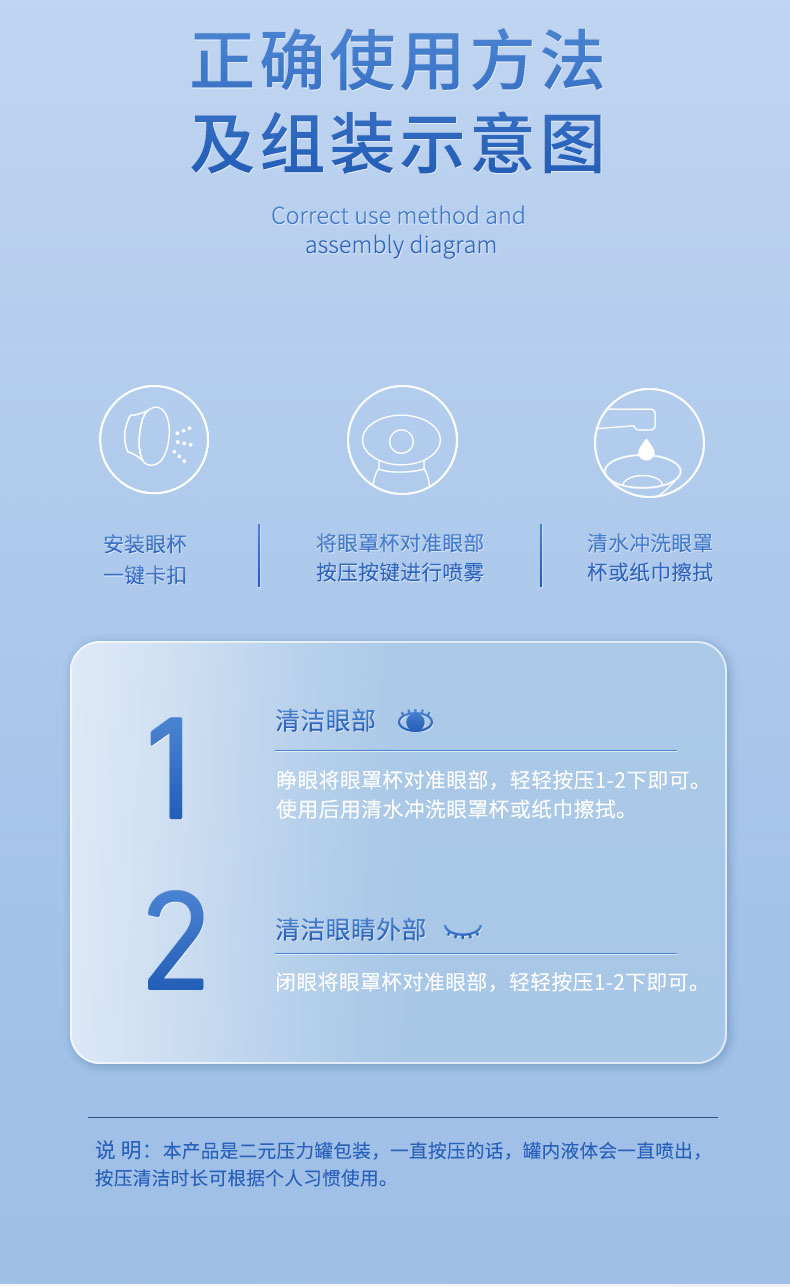 这款星目之源的洗眼喷雾真空瓶瓶+防回流设计干净卫生的同时还可以做到0防腐剂、0激素、0抗生素,按压冲洗喷雾很细腻