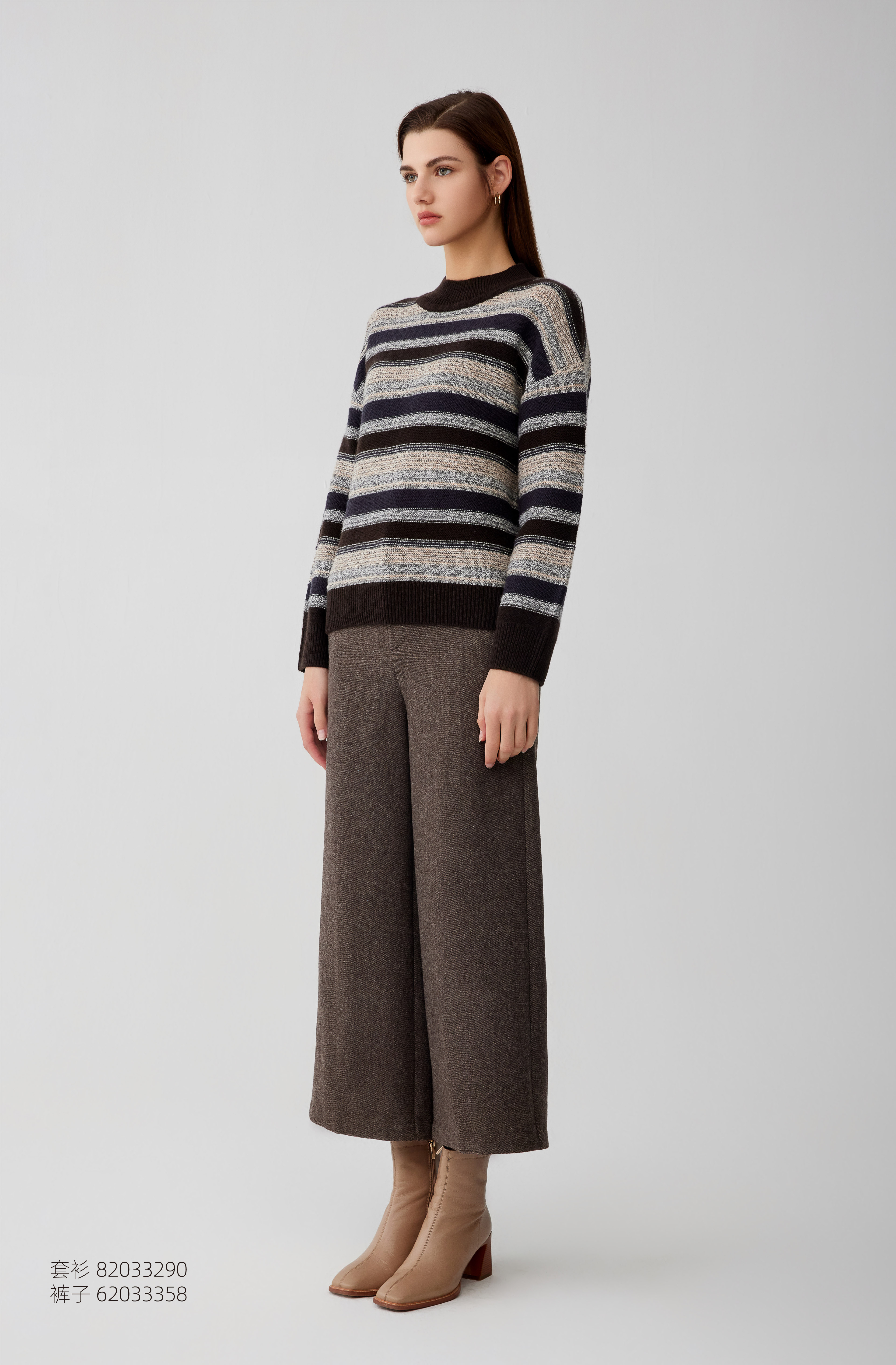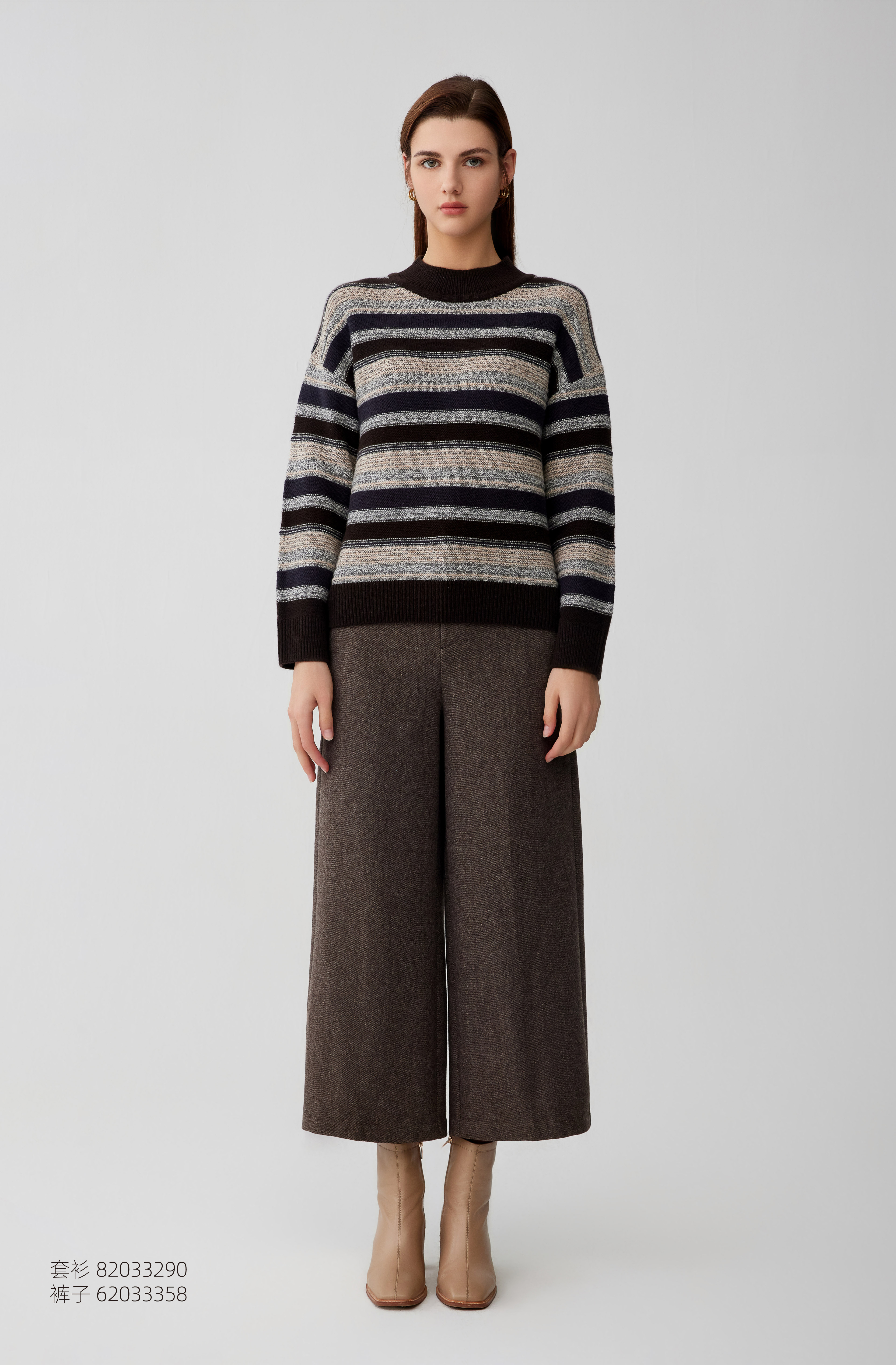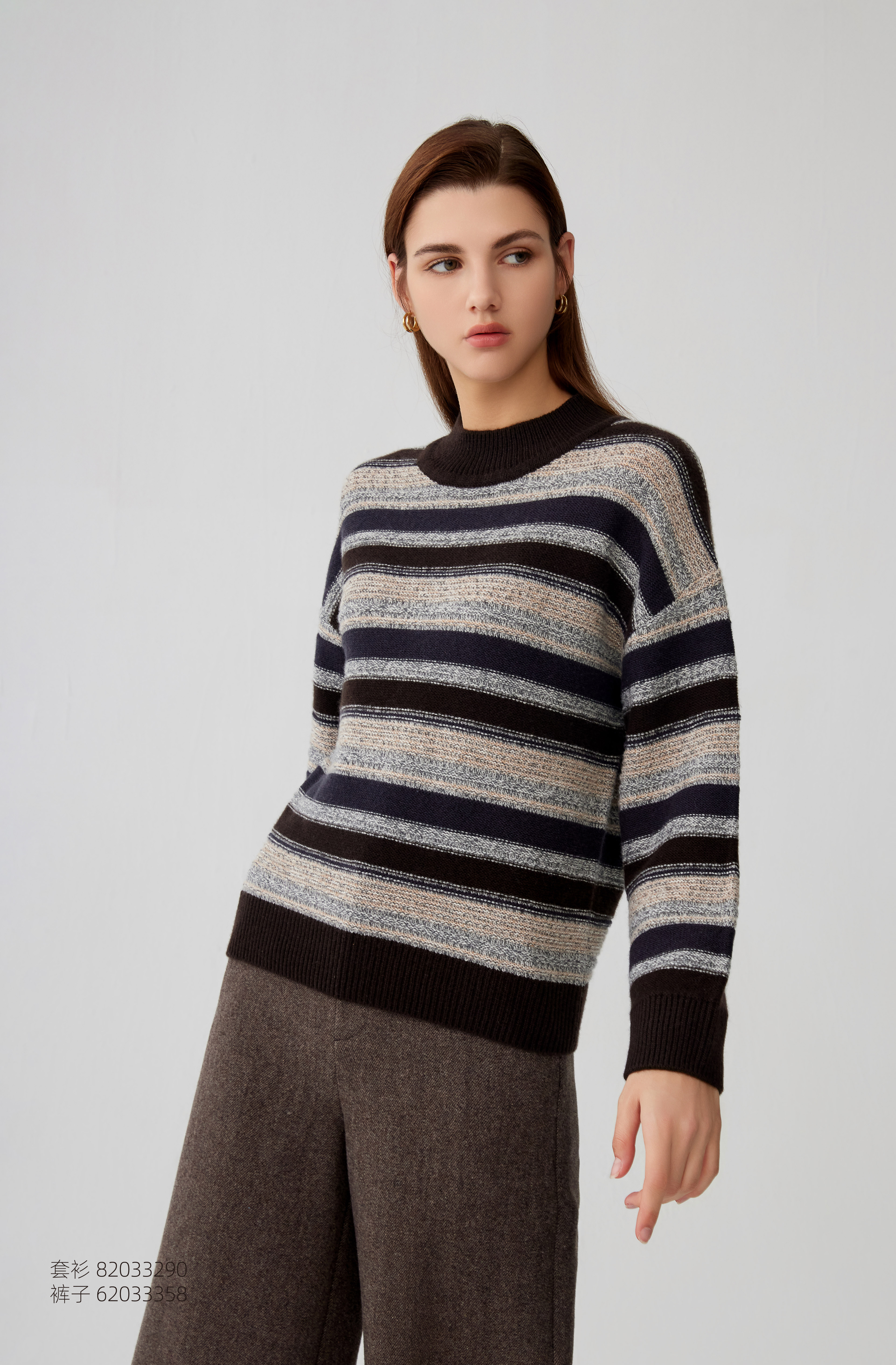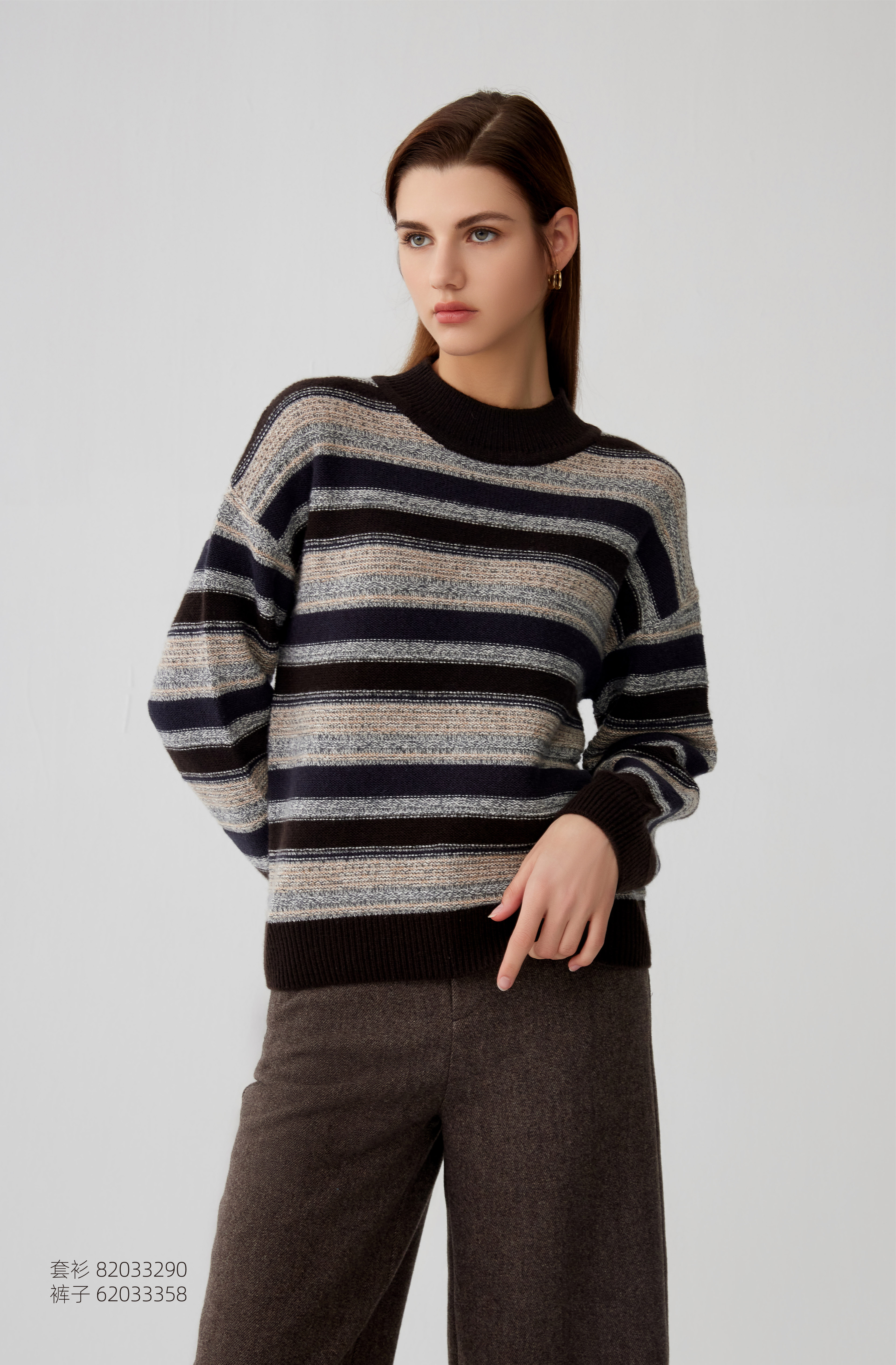 【半高领条纹撞色羊绒衫】羊绒世家秋冬新品女士100%山羊绒内搭保暖毛衣