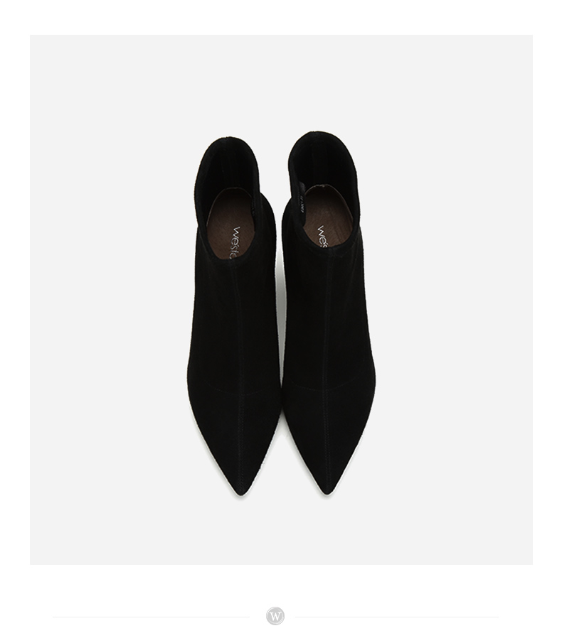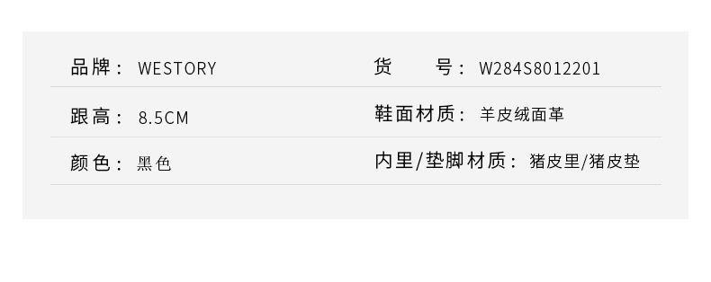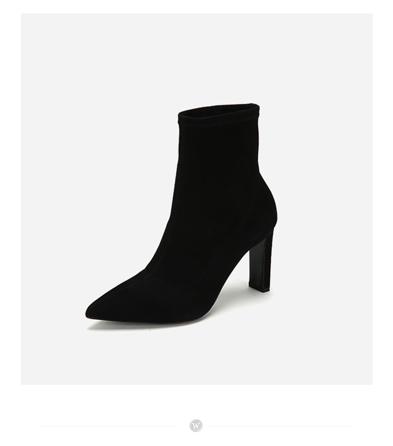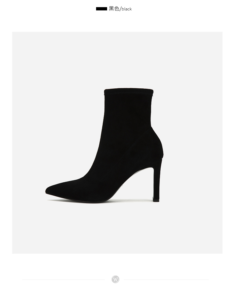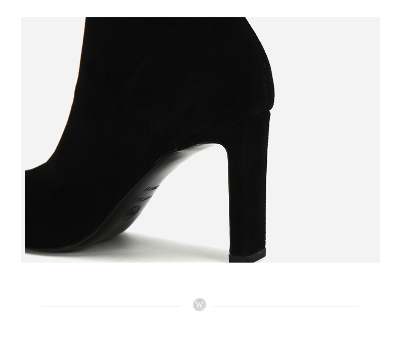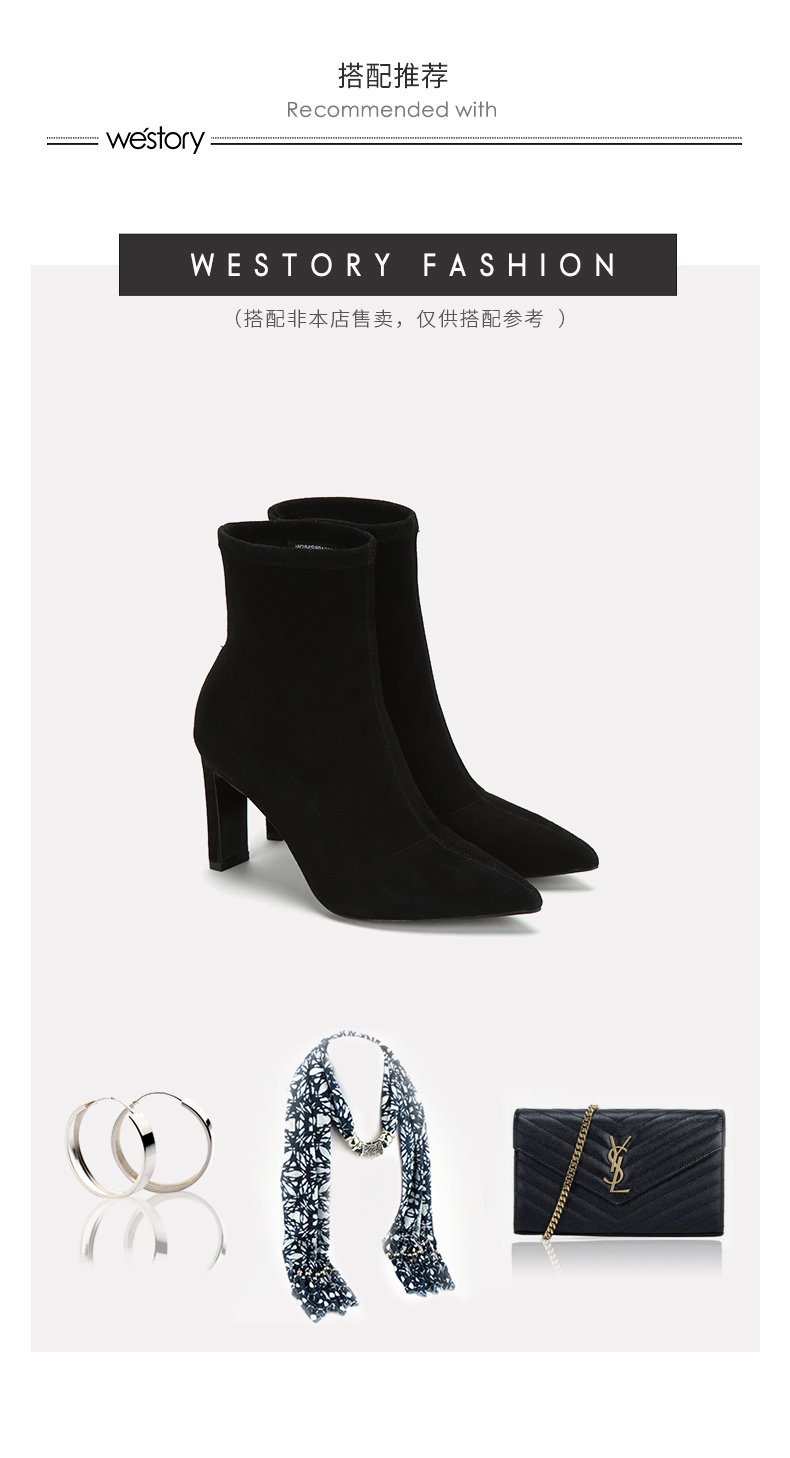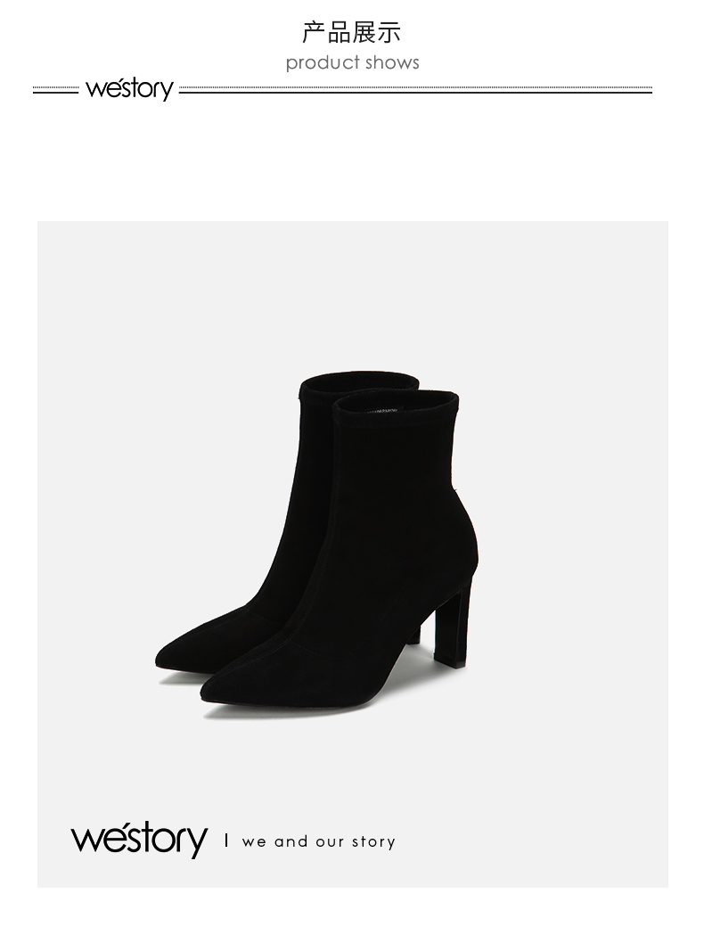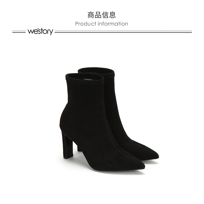 westory2018年冬季新款绒面短筒靴子粗高跟女靴瘦瘦靴W284S80122