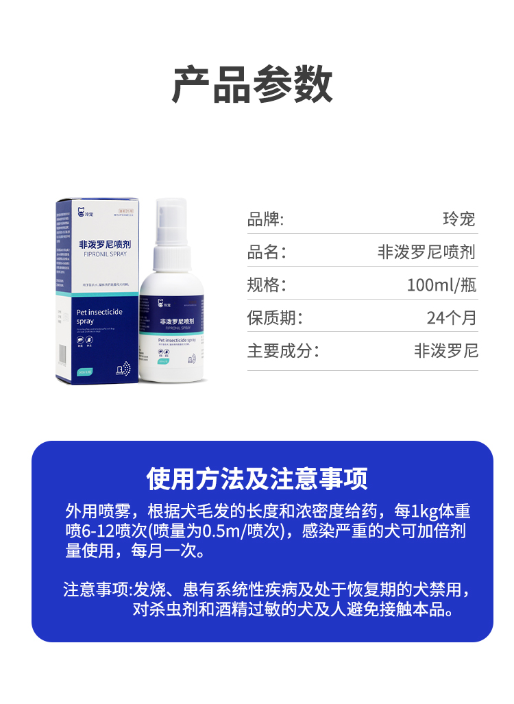 狗狗猫咪体外驱虫药非泼罗尼喷雾喷剂宠物去除跳蚤蜱虫体内外一体