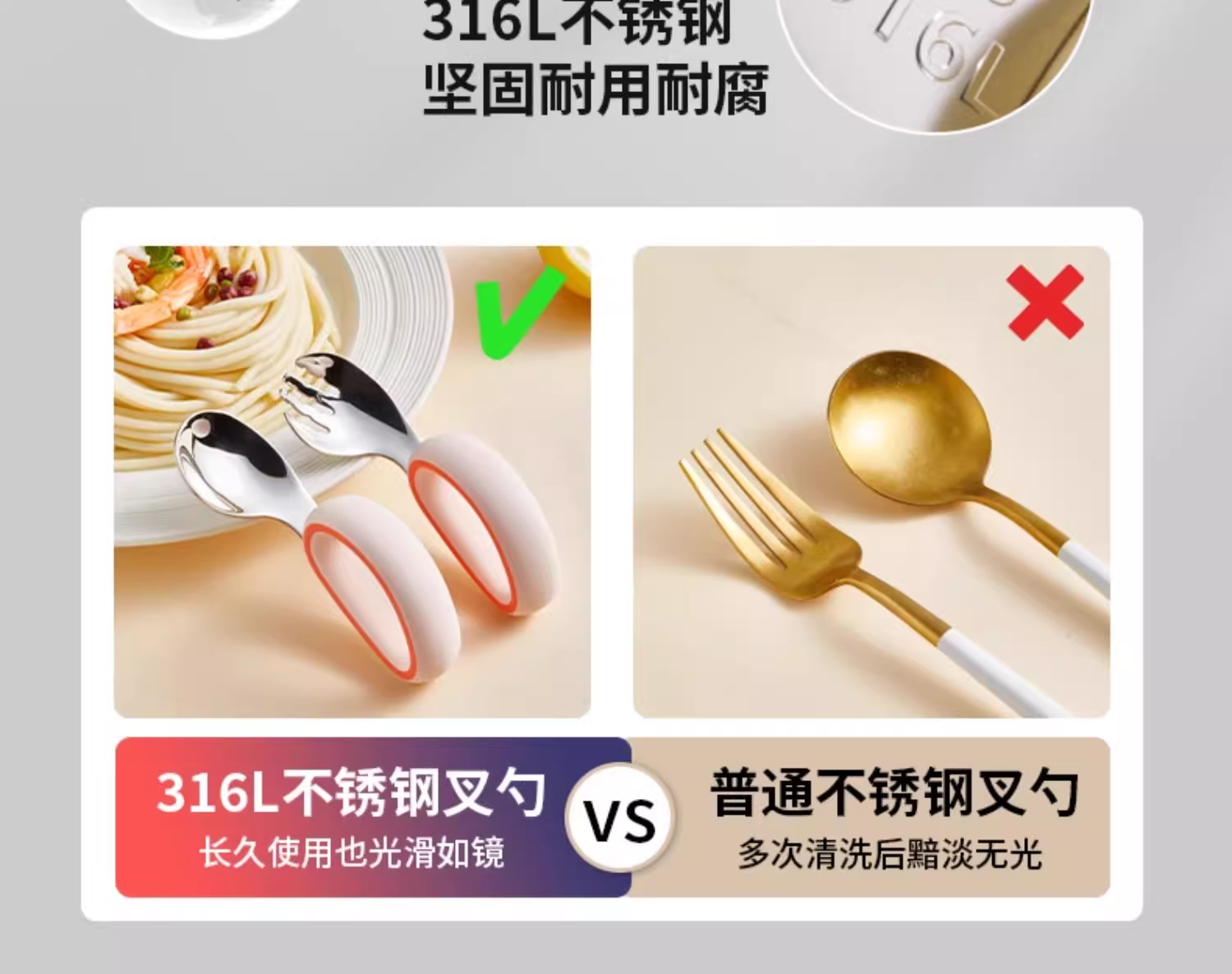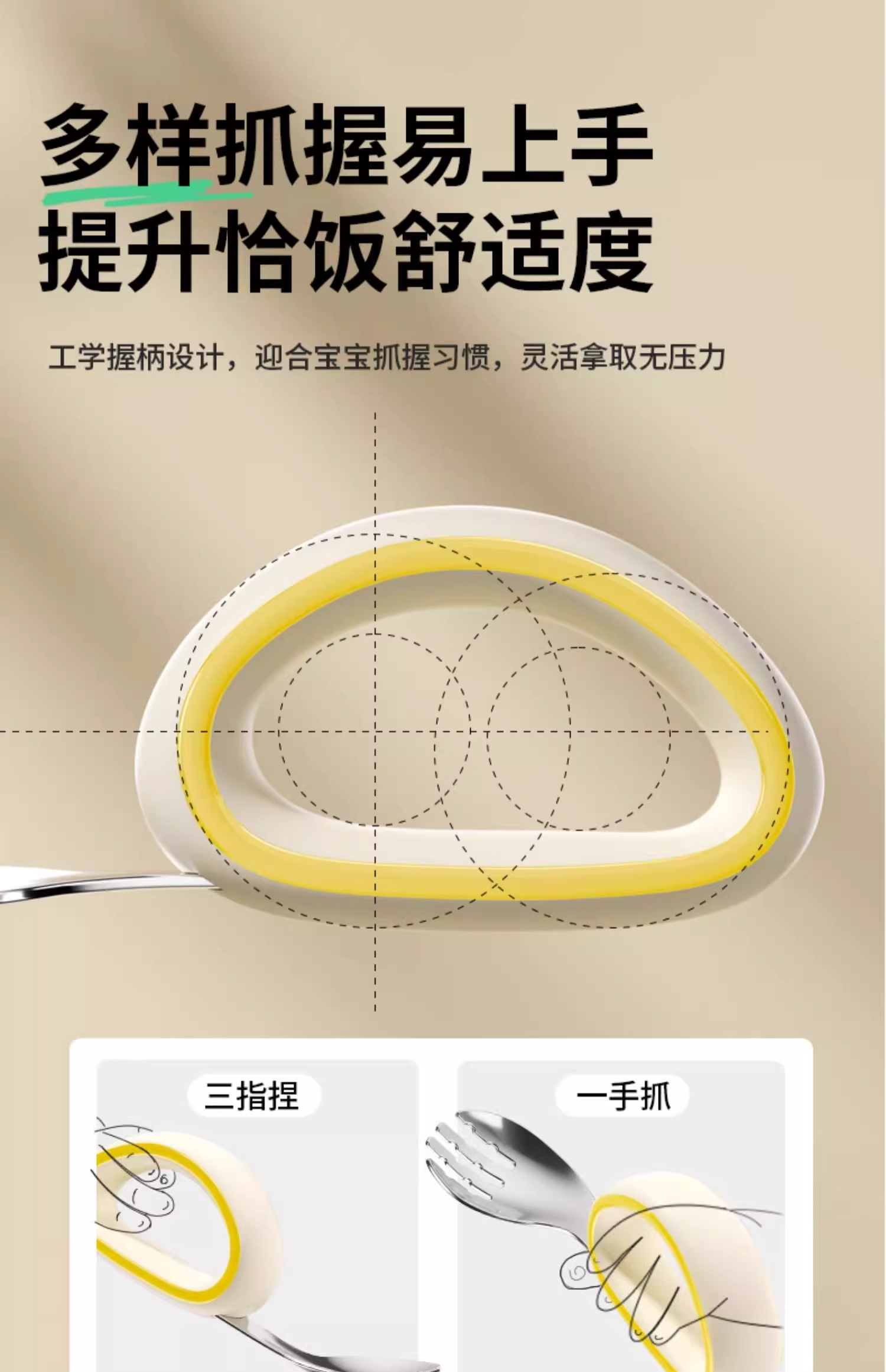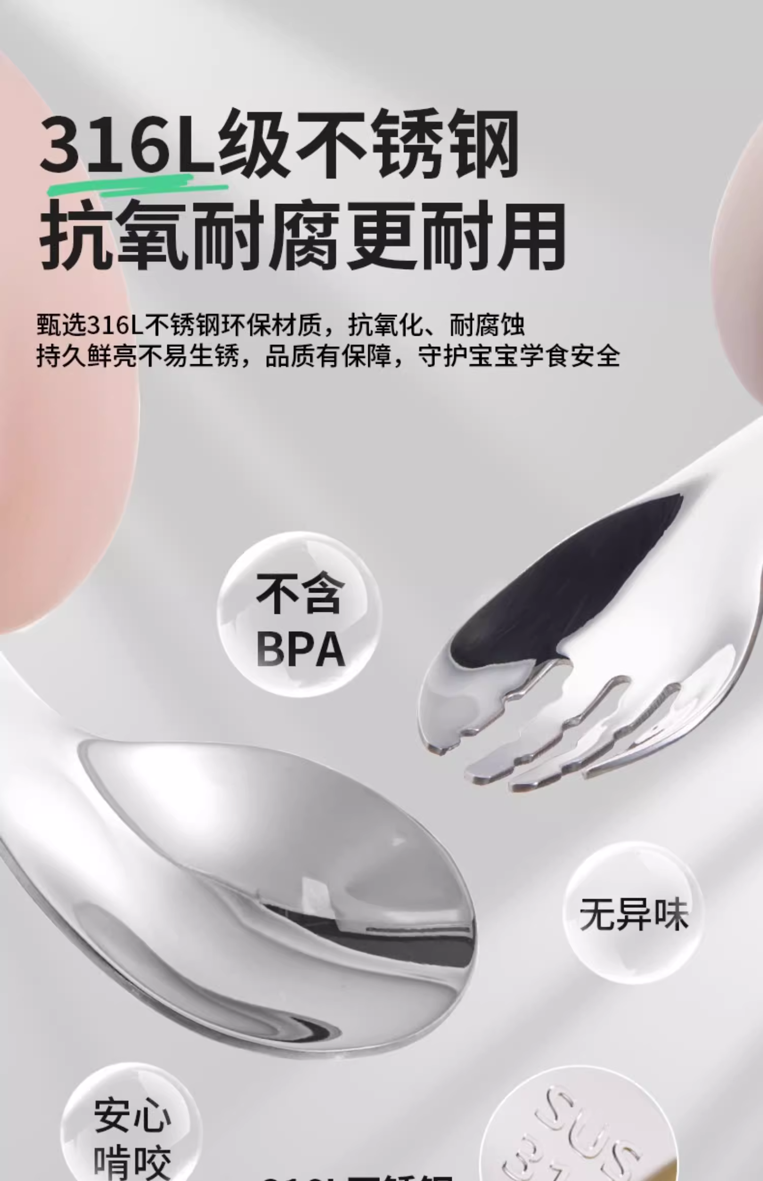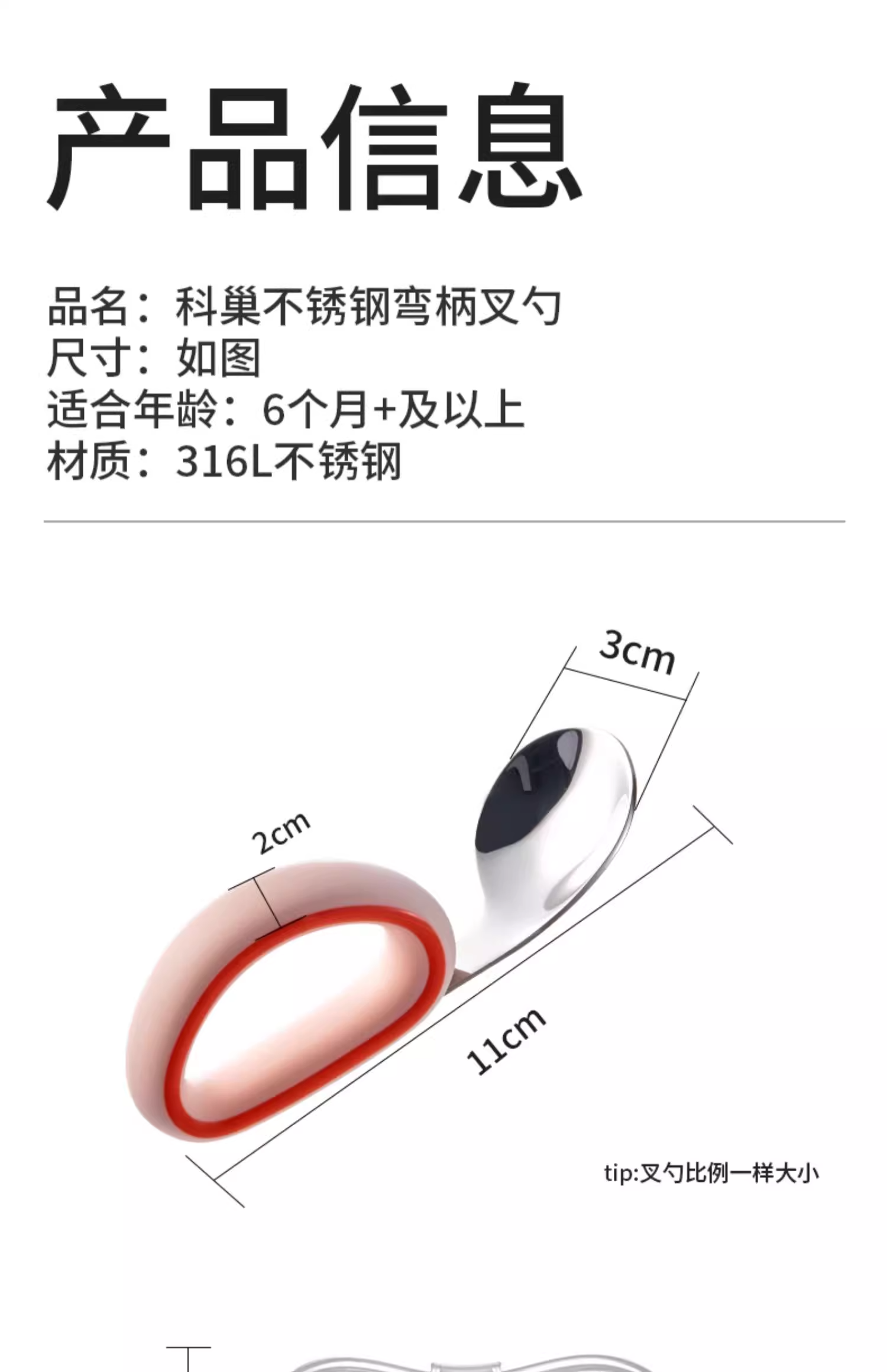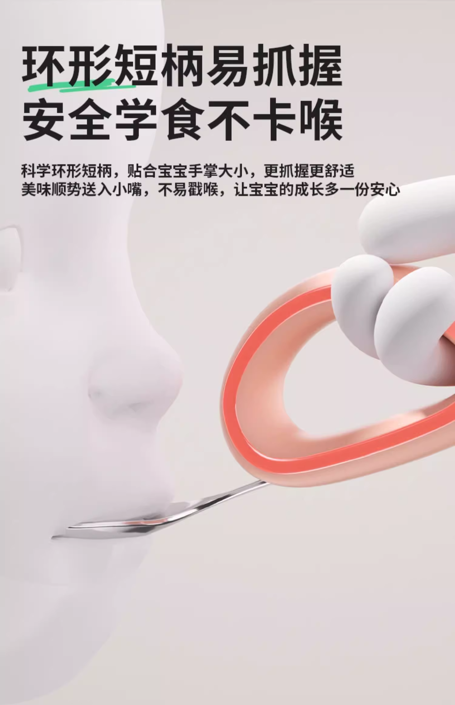 科巢宝宝自主进食辅食勺子316L不锈钢婴儿学吃饭训练儿童专用短柄