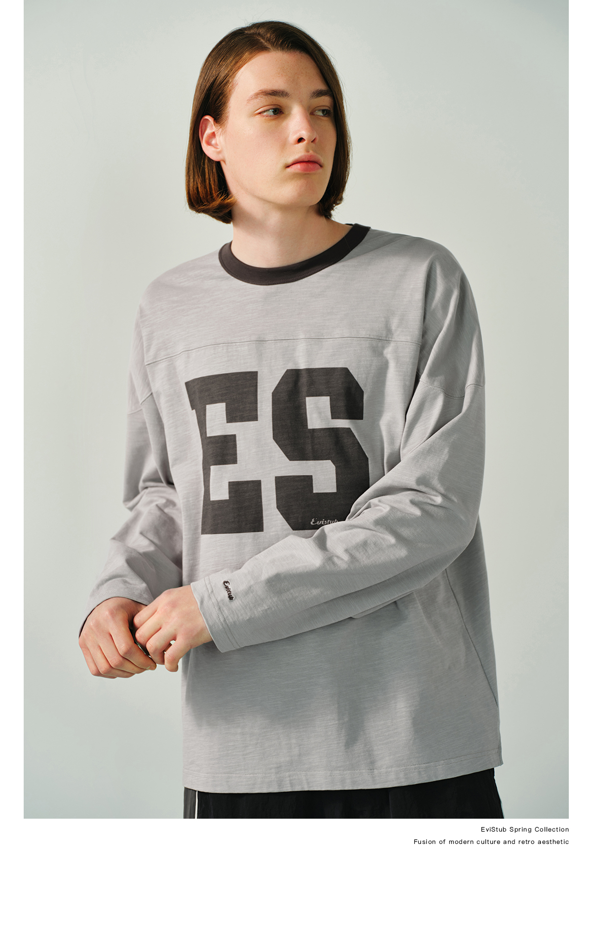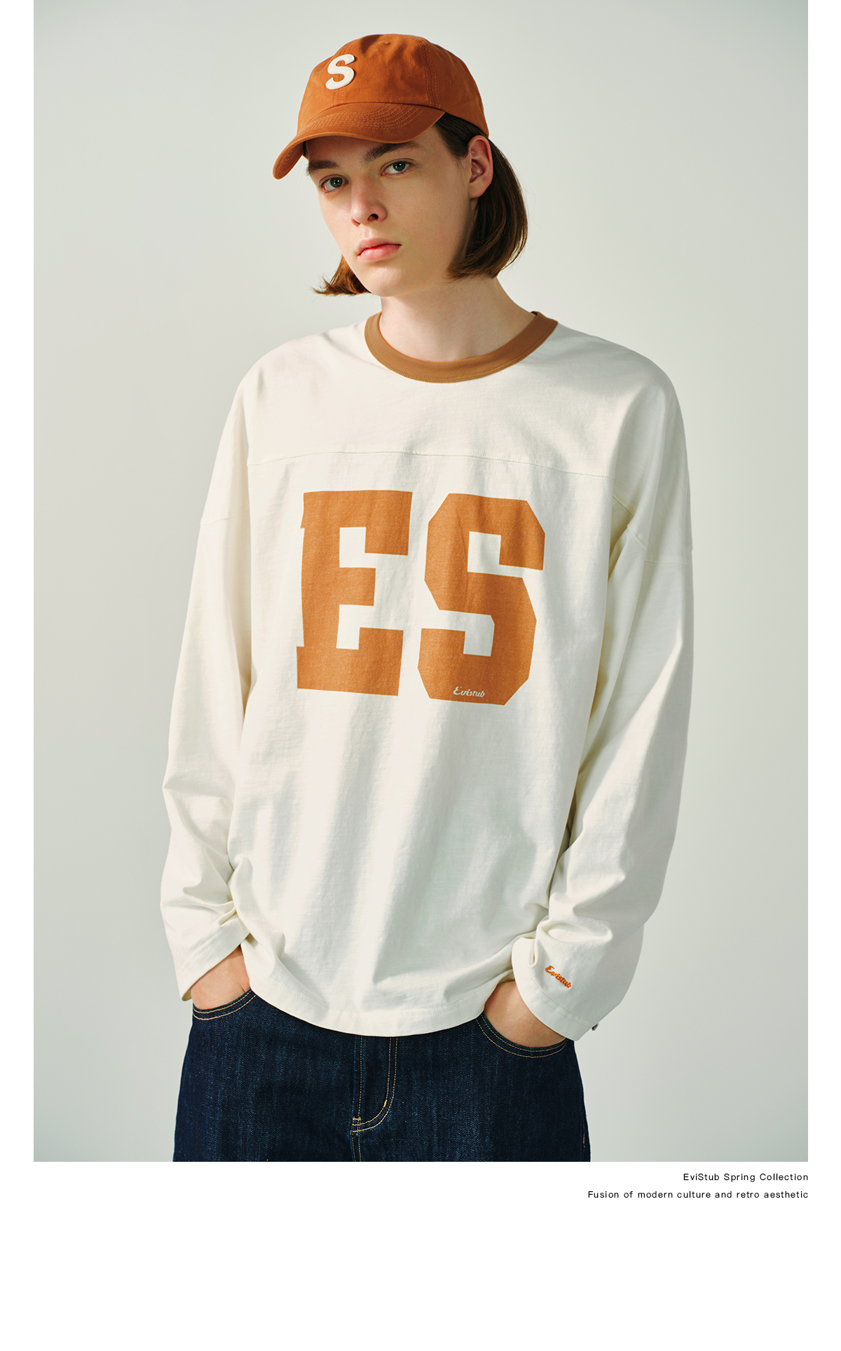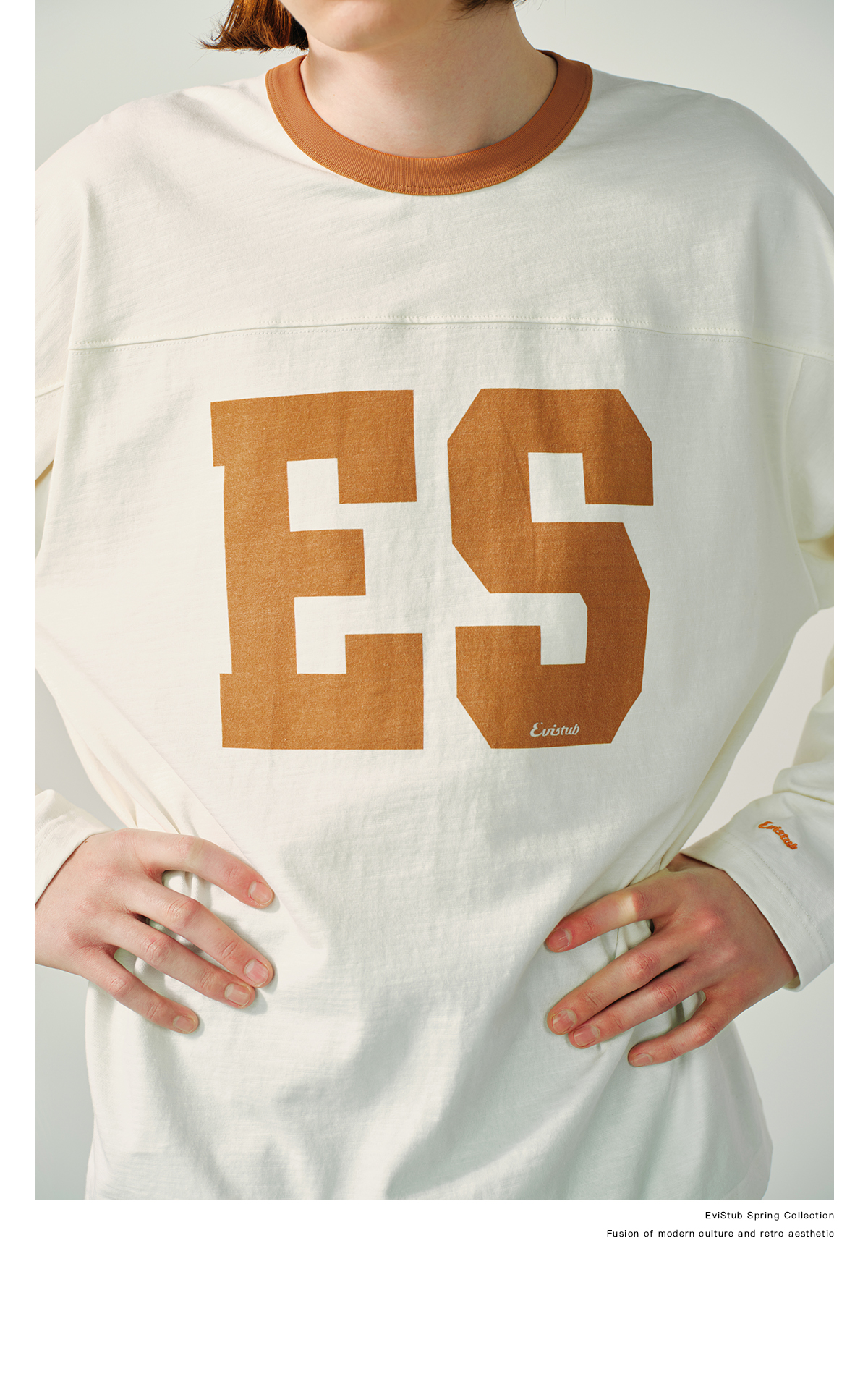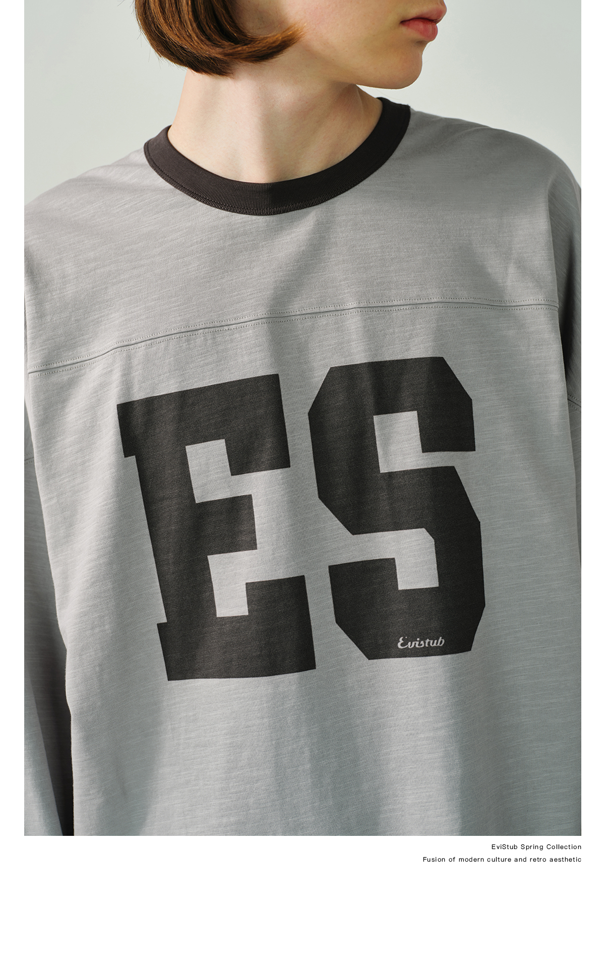Evistub/E-5CCX153/舒爽竹节棉复古橄榄球T恤