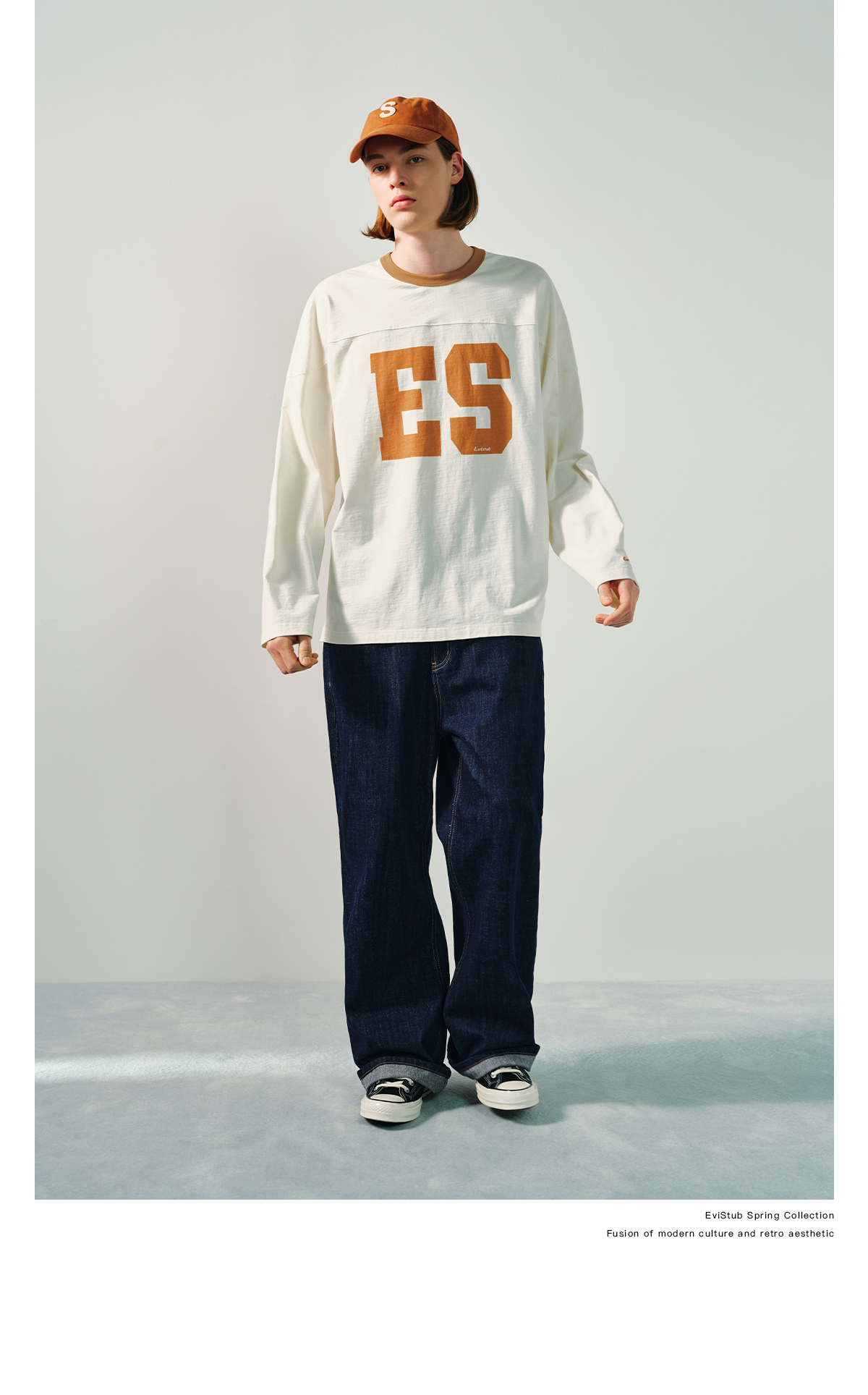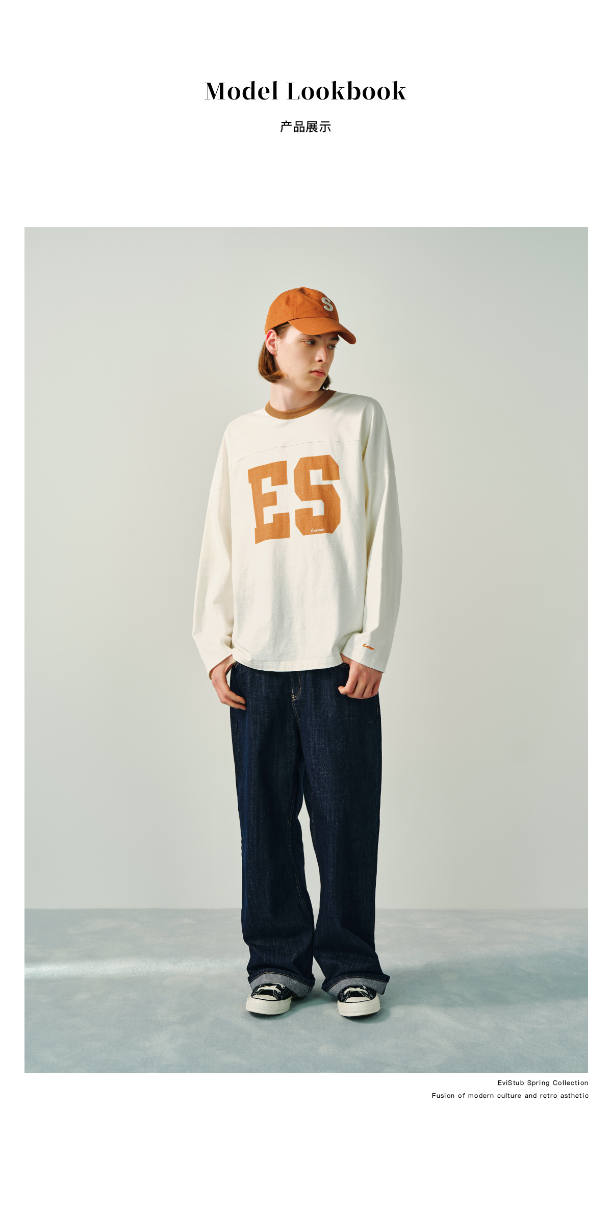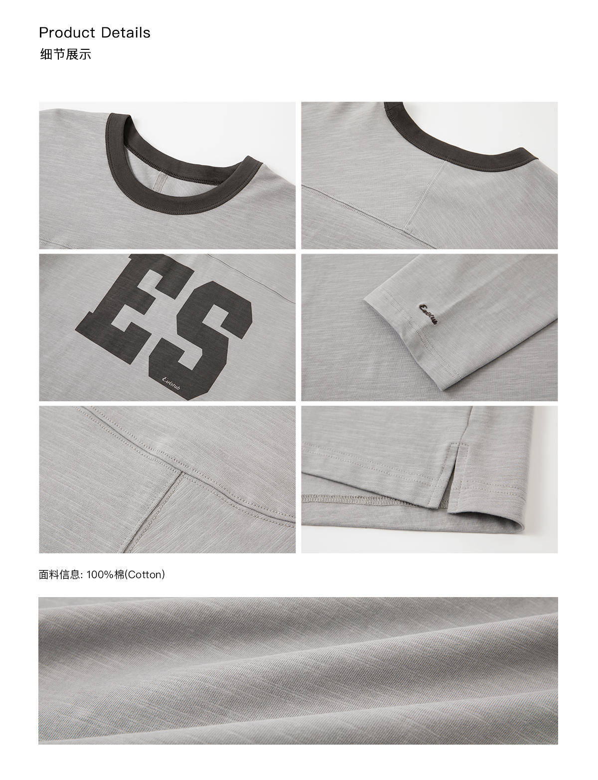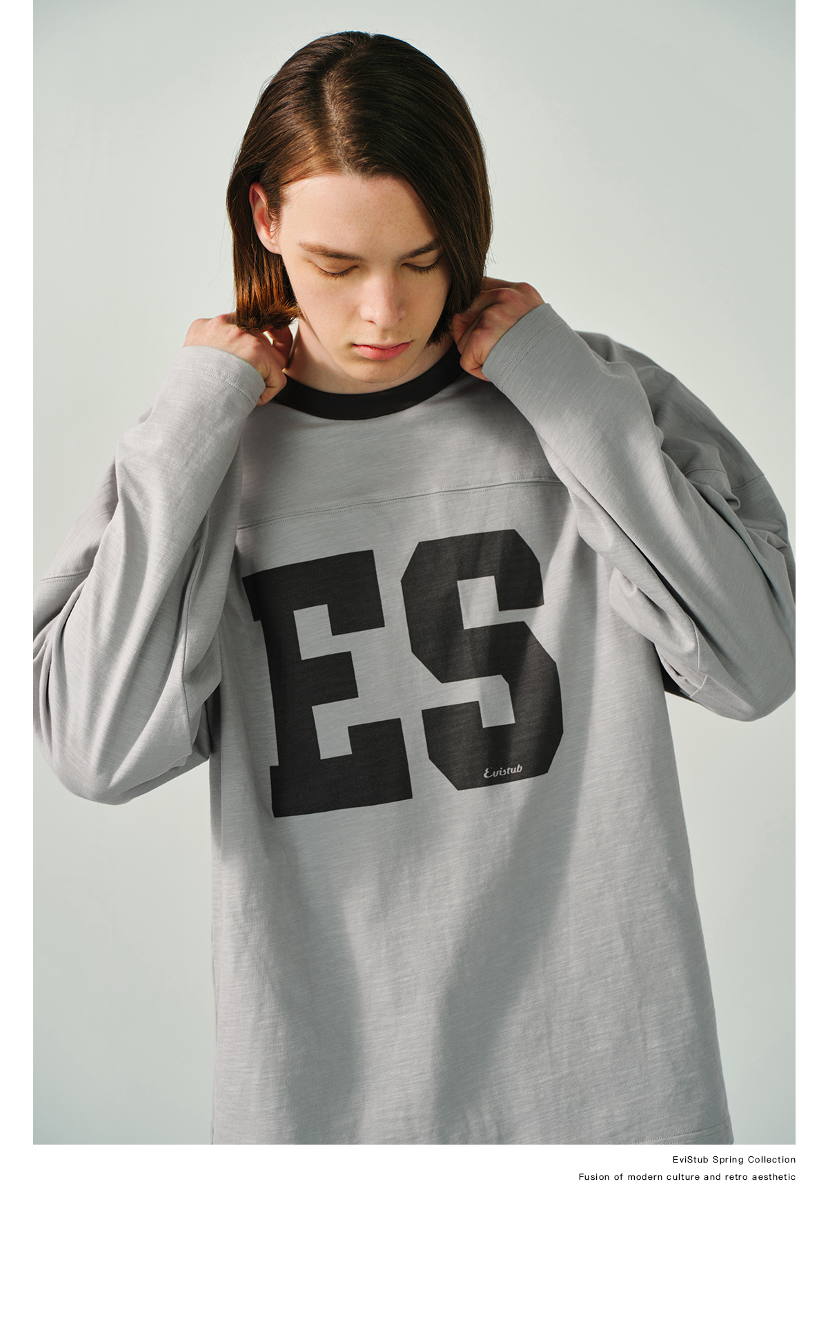 Evistub/E-5CCX153/舒爽竹节棉复古橄榄球T恤