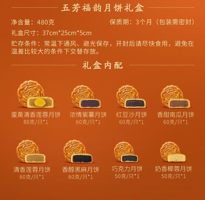 五芳斋韵月月饼礼盒【8饼8味480g】广式月饼中秋节送礼