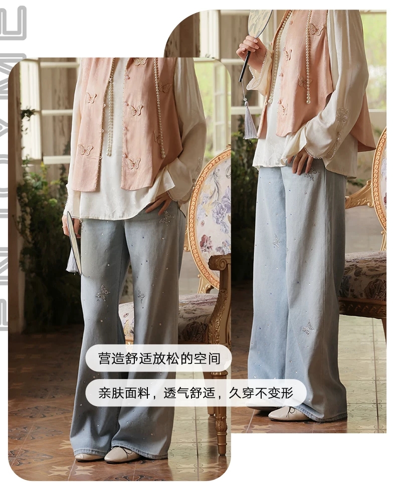 【门店同款】ENJOY夏季蝴蝶烫钻阔腿裤 170593769
