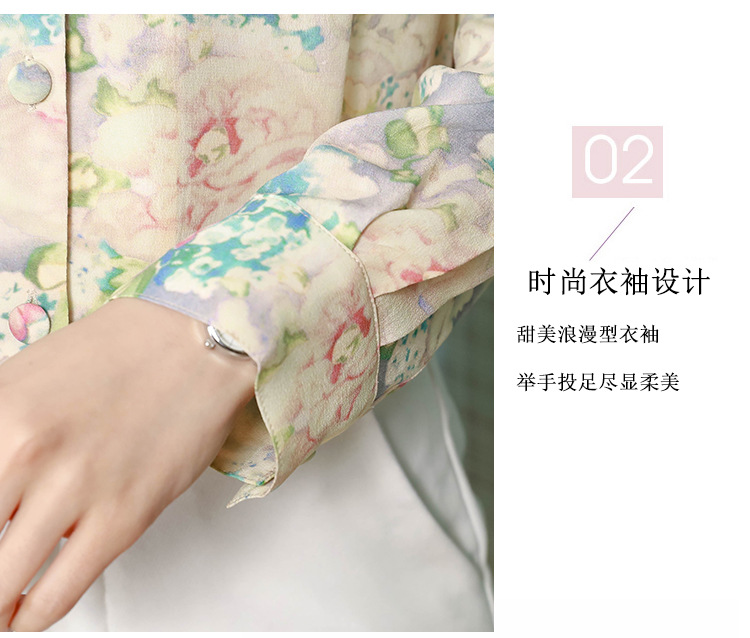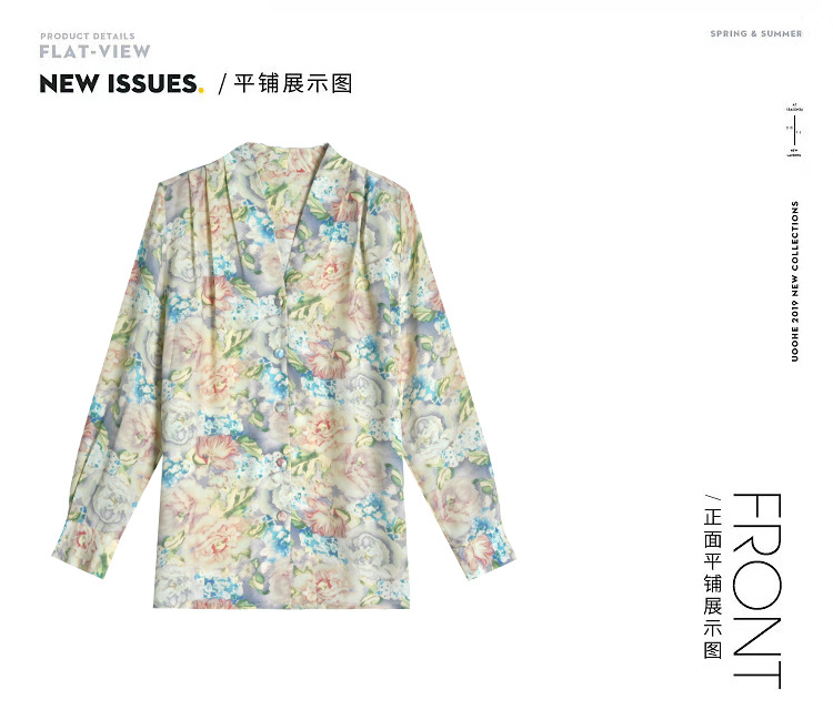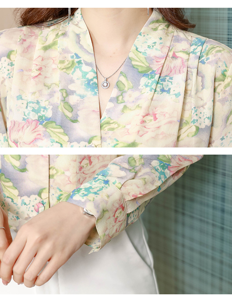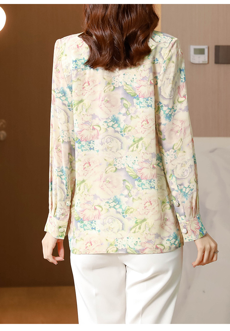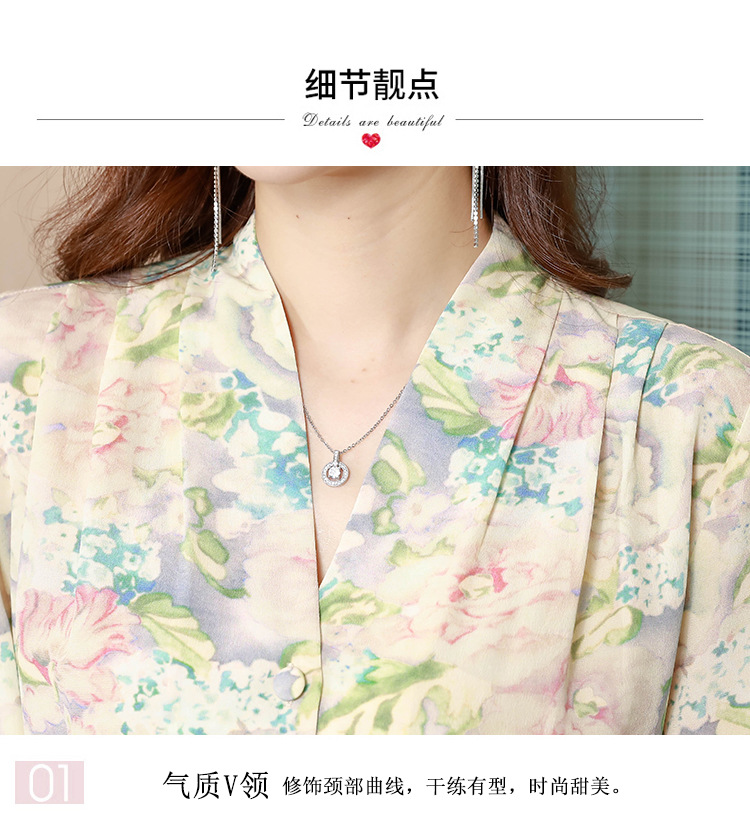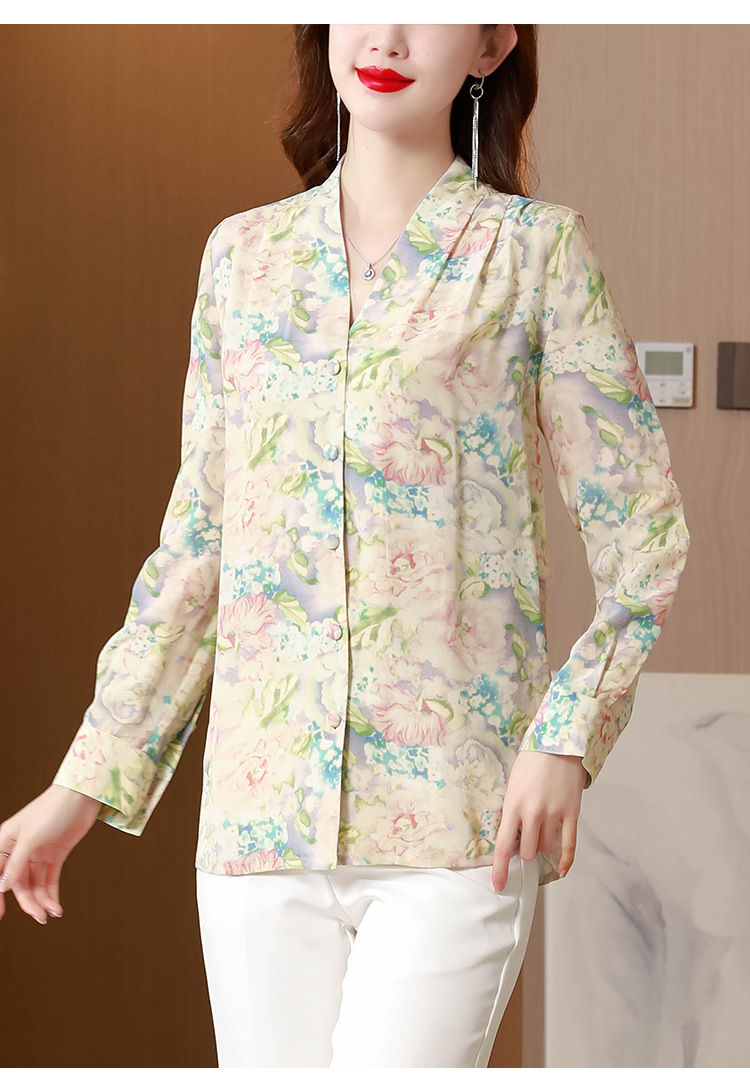 仿真丝衬衫女宽松2022春装新款女装春立体印花气质V领上衣 KQL8152