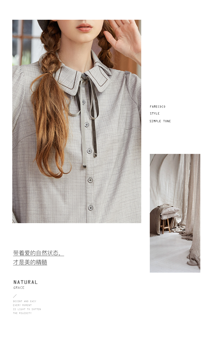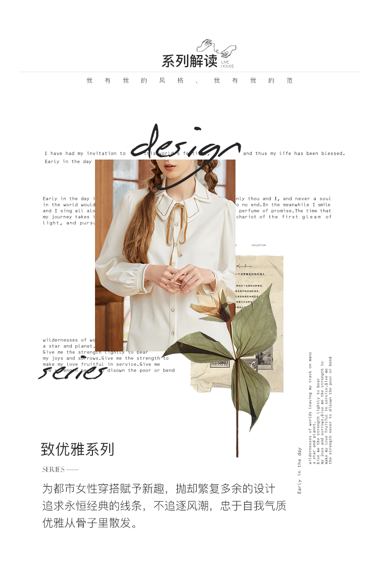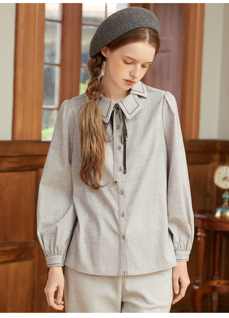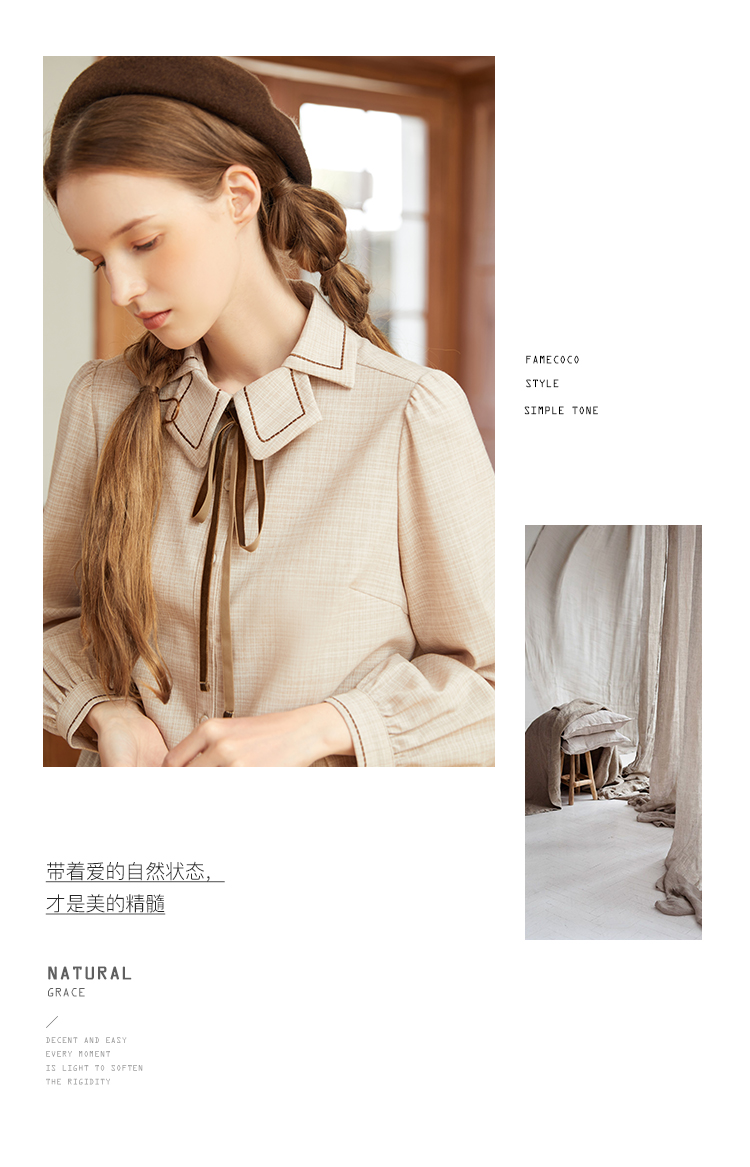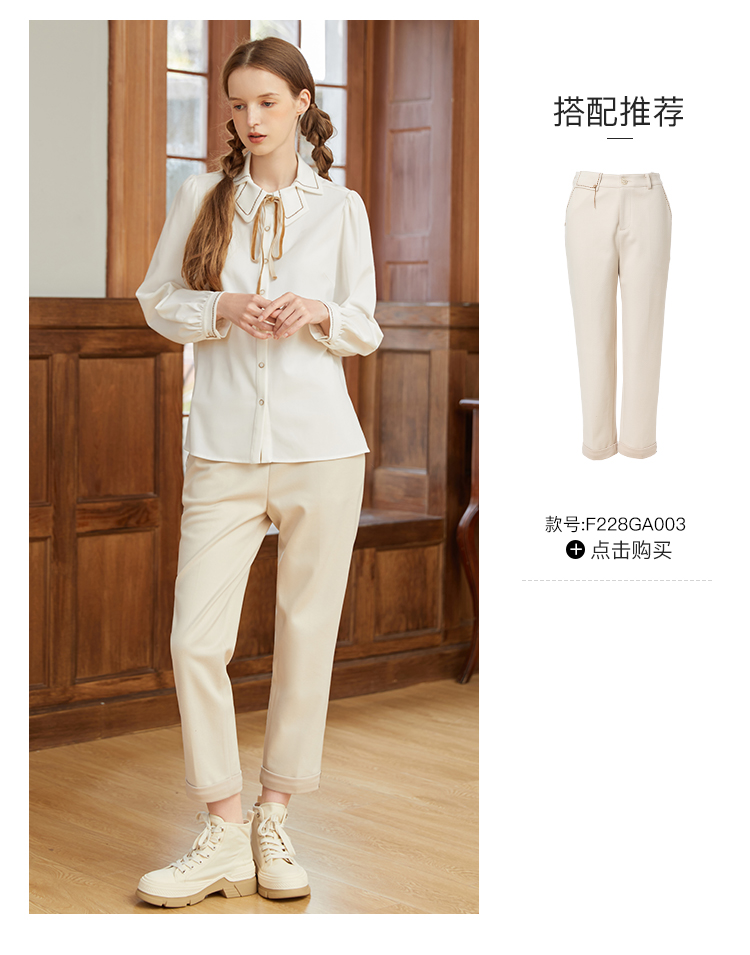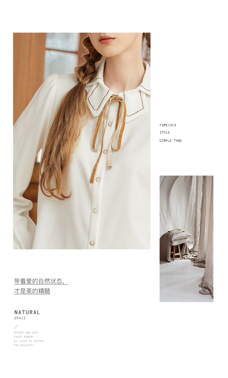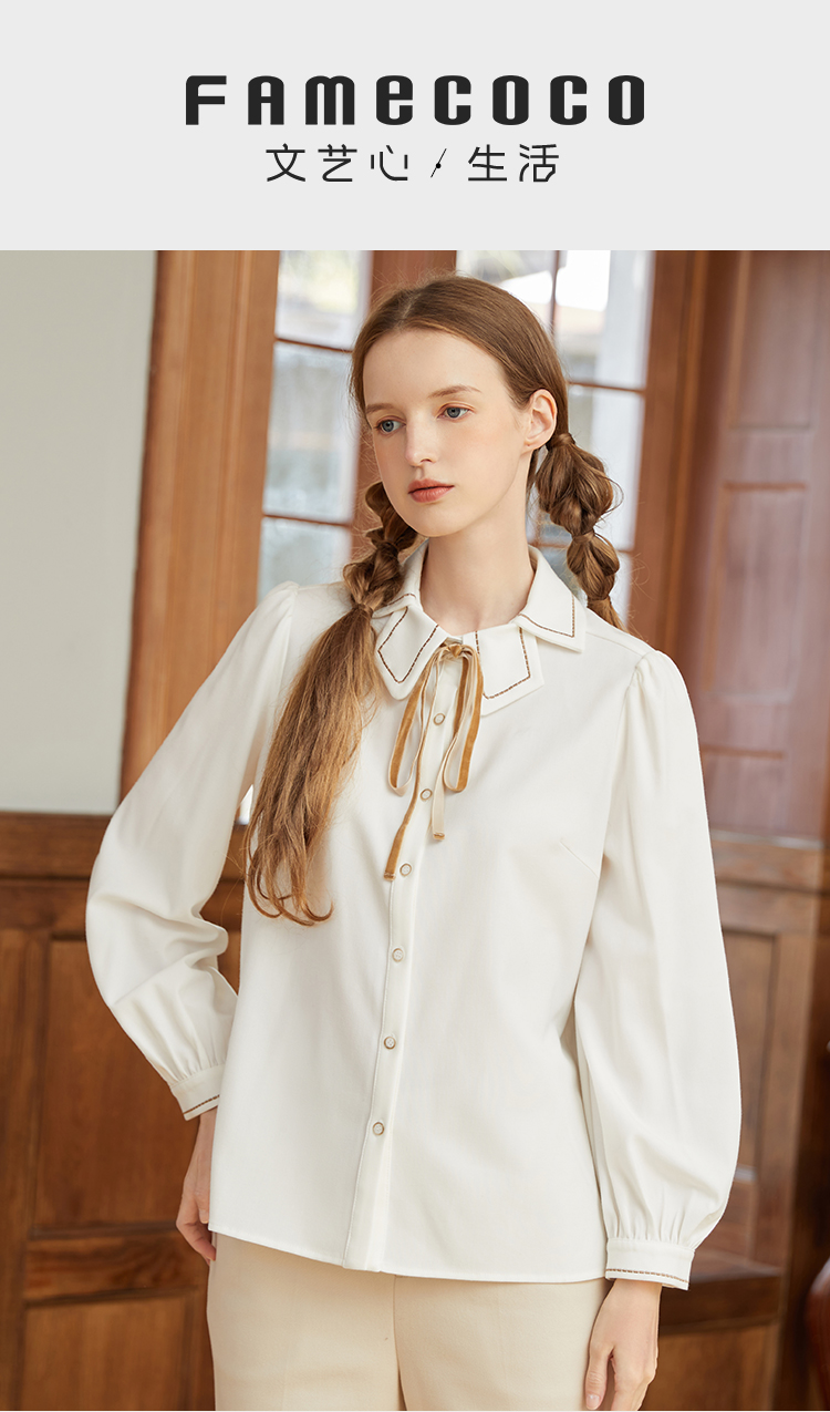 Famecoco范可儿花瓣领衬衫女设计感小众秋冬季蝴蝶结衬衣F228BH008