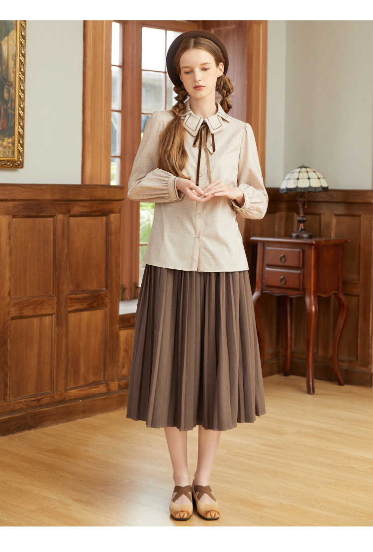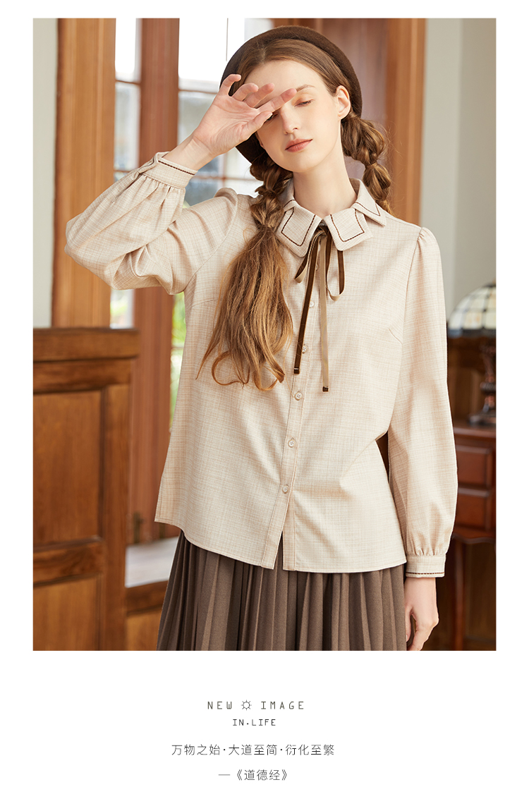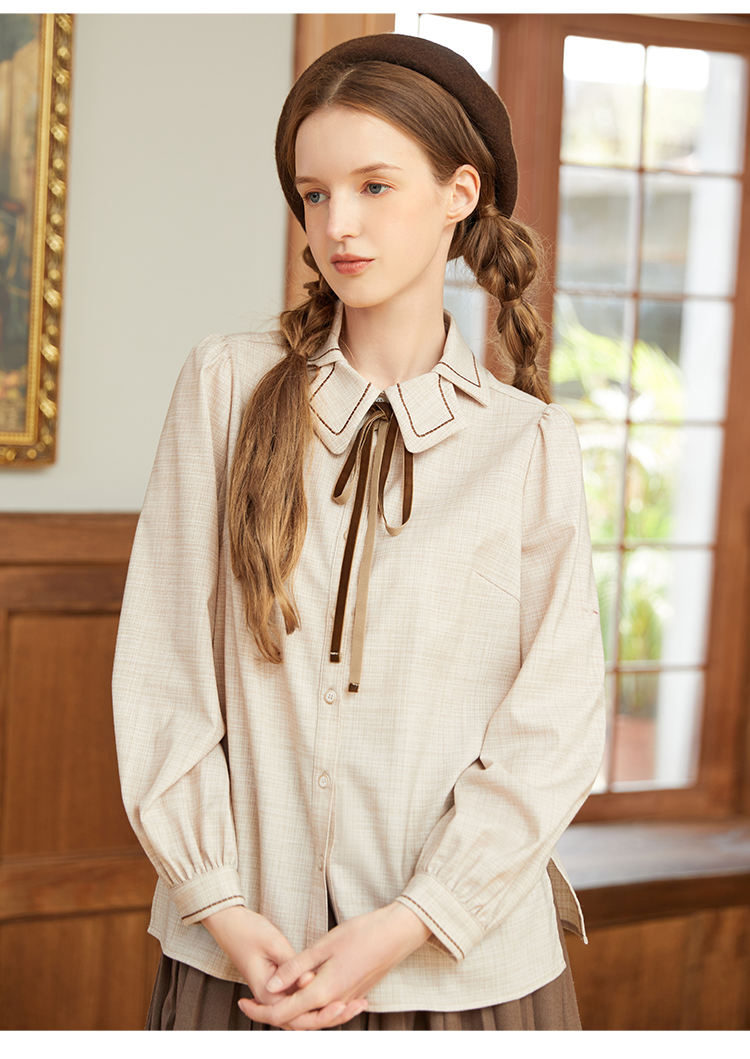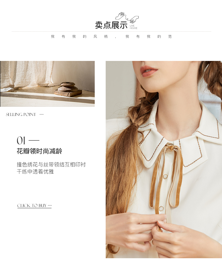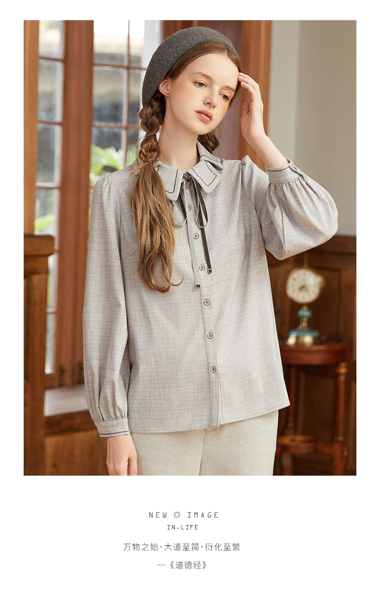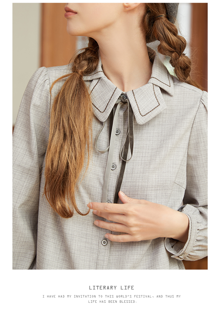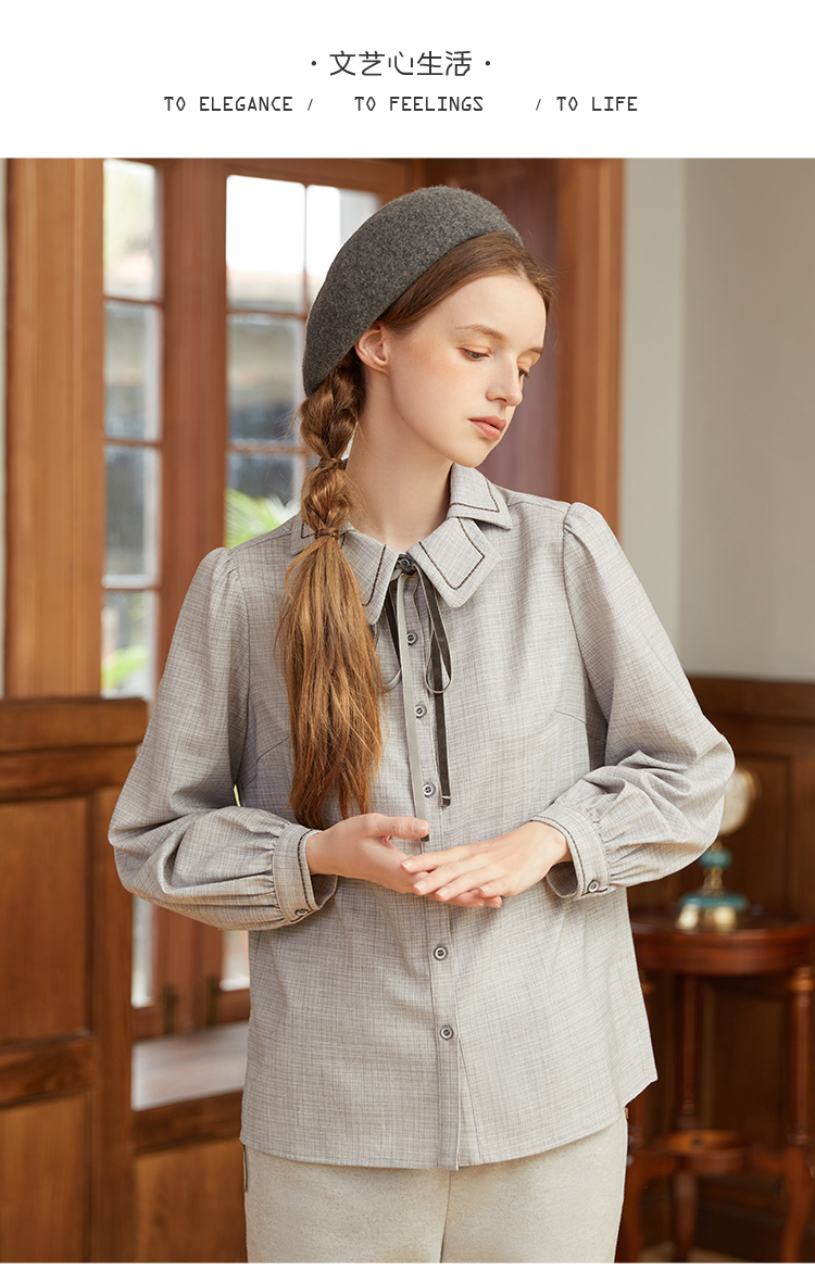 Famecoco范可儿花瓣领衬衫女设计感小众秋冬季蝴蝶结衬衣F228BH008