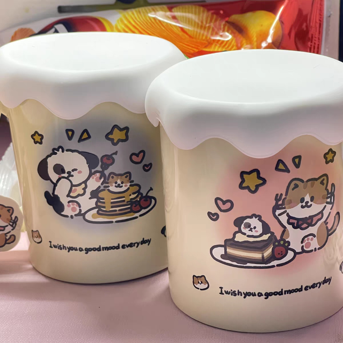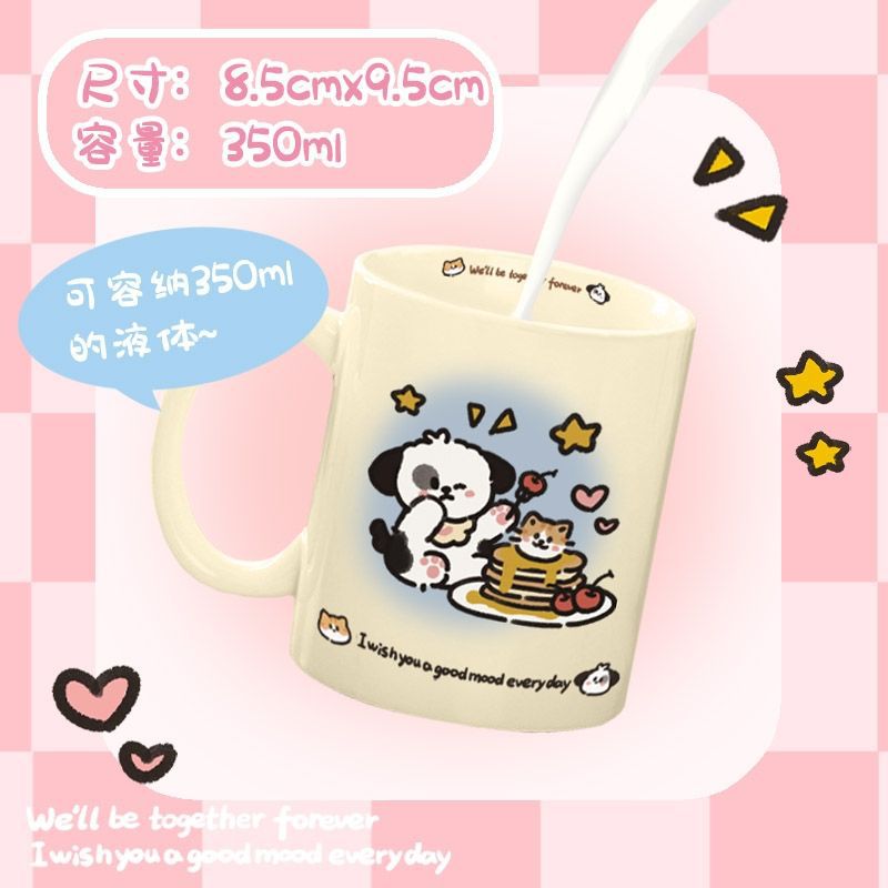 【超萌的陶瓷水杯】渐变橘猫小狗超萌陶瓷水杯杯子ins风高颜值带盖生日礼物送女生。ry