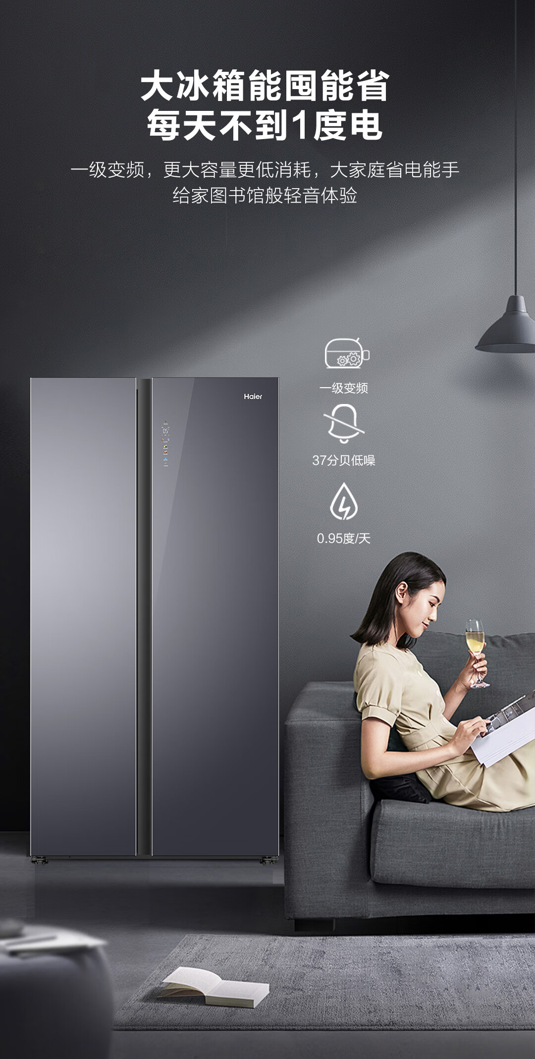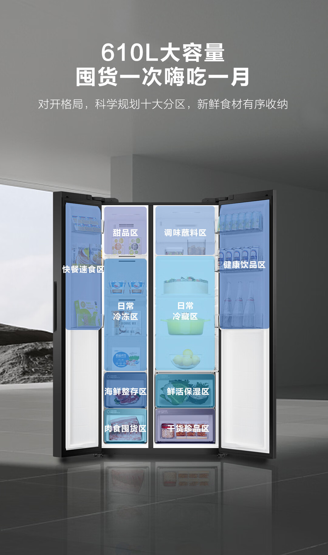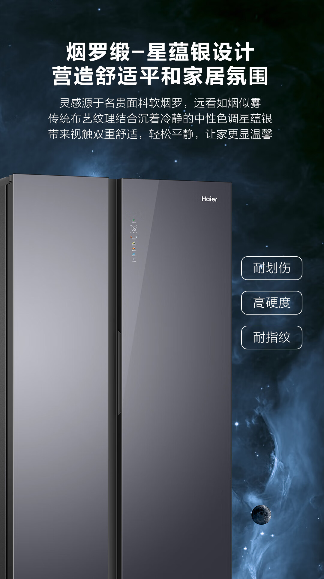 海尔(Haier)610升 大容量 一级双变频 阻氧干湿分储 烟罗缎彩晶玻璃面板 光彩智控UI大屏 黑金净化 BCD-610WGHSSE5S1 星蕴银