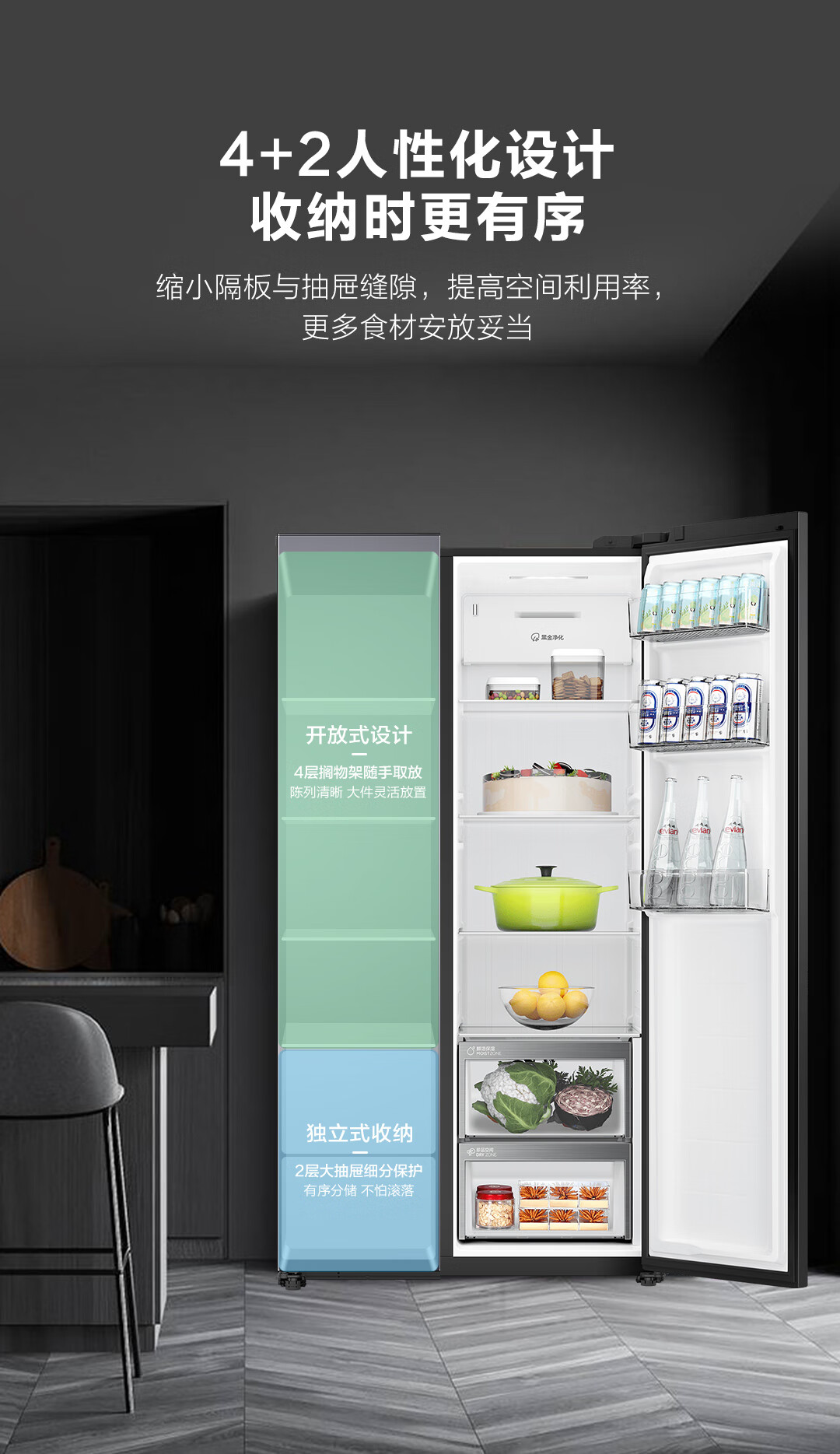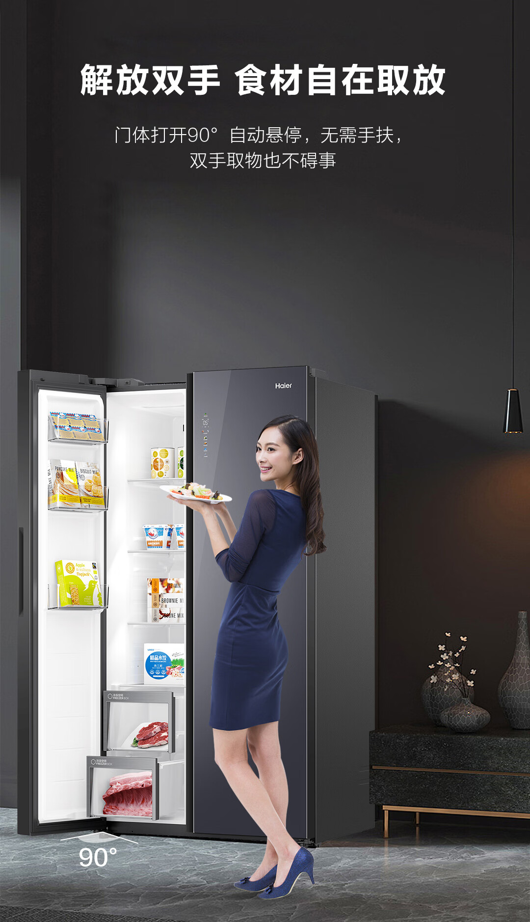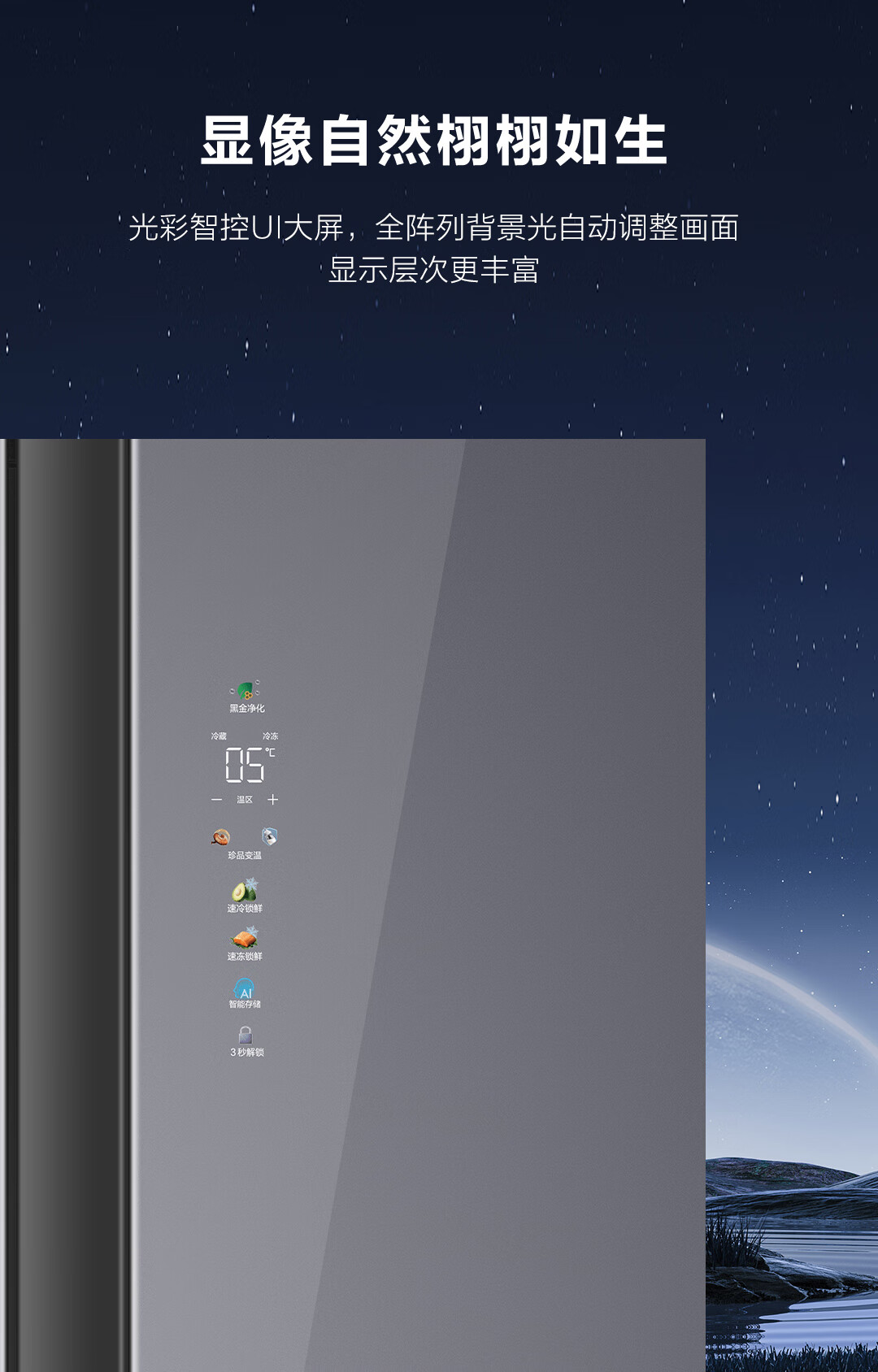 海尔(Haier)610升 大容量 一级双变频 阻氧干湿分储 烟罗缎彩晶玻璃面板 光彩智控UI大屏 黑金净化 BCD-610WGHSSE5S1 星蕴银