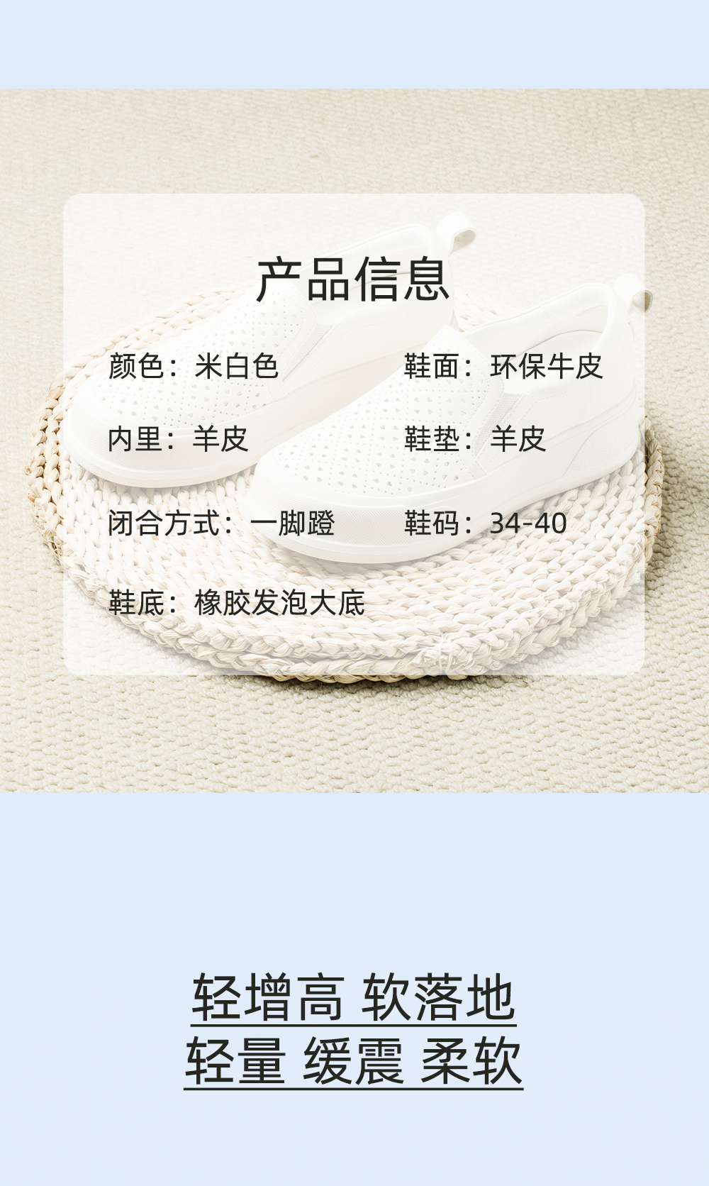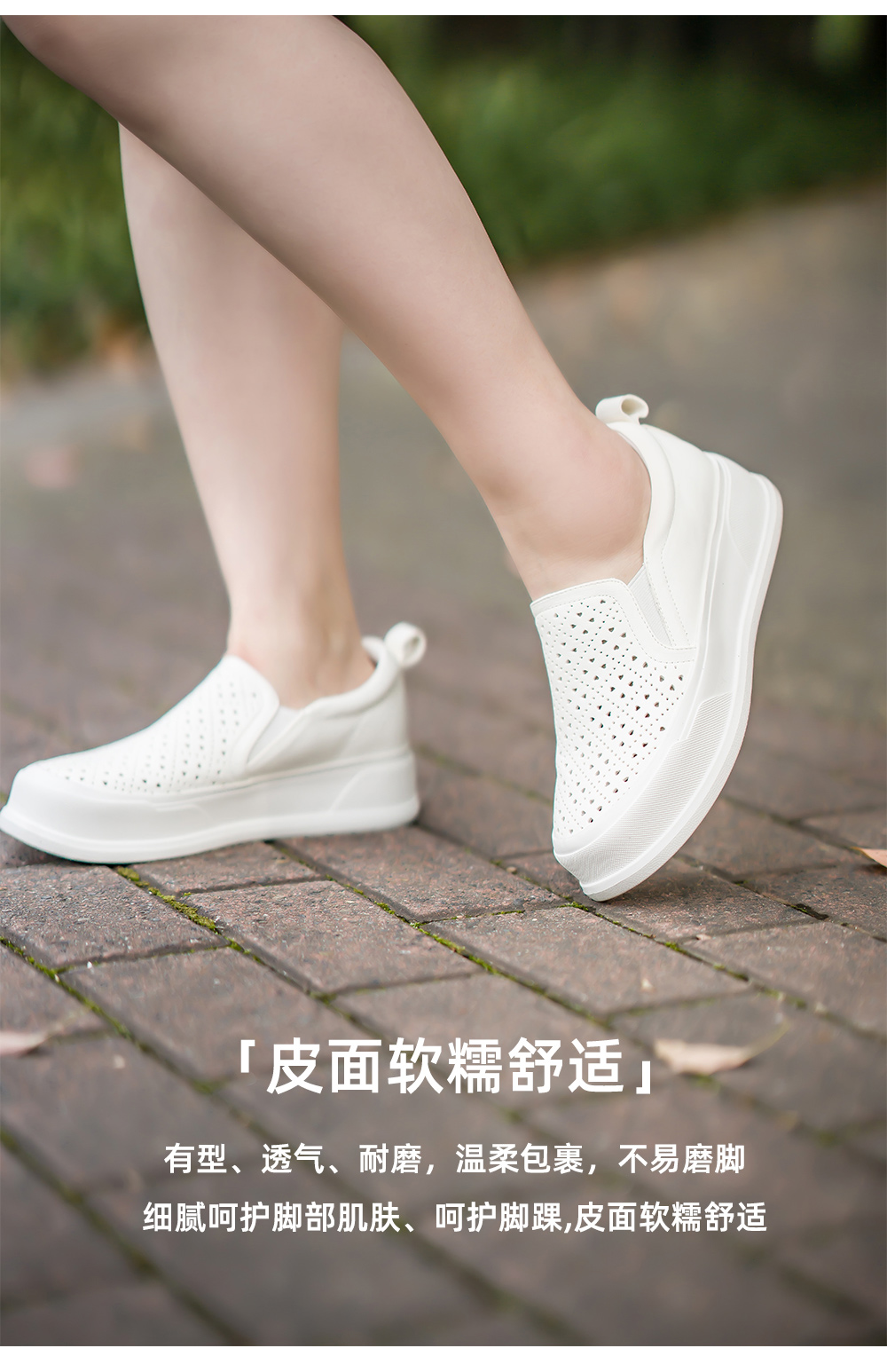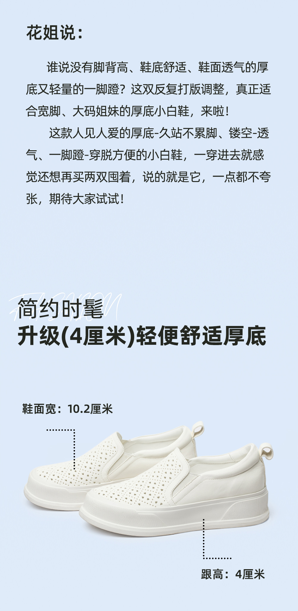 【一脚蹬 厚底小白鞋】👍❤️【🍀四叶草镂空】现货,跟高4厘米,鞋面环保牛皮,内里羊皮,鞋垫羊皮,鞋底橡胶大底,不易挤脚,包容显瘦,经典耐看