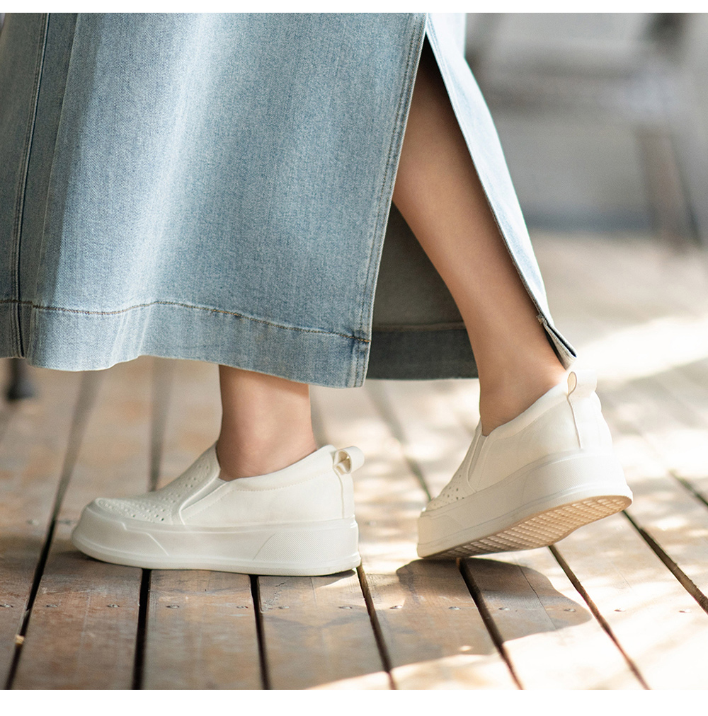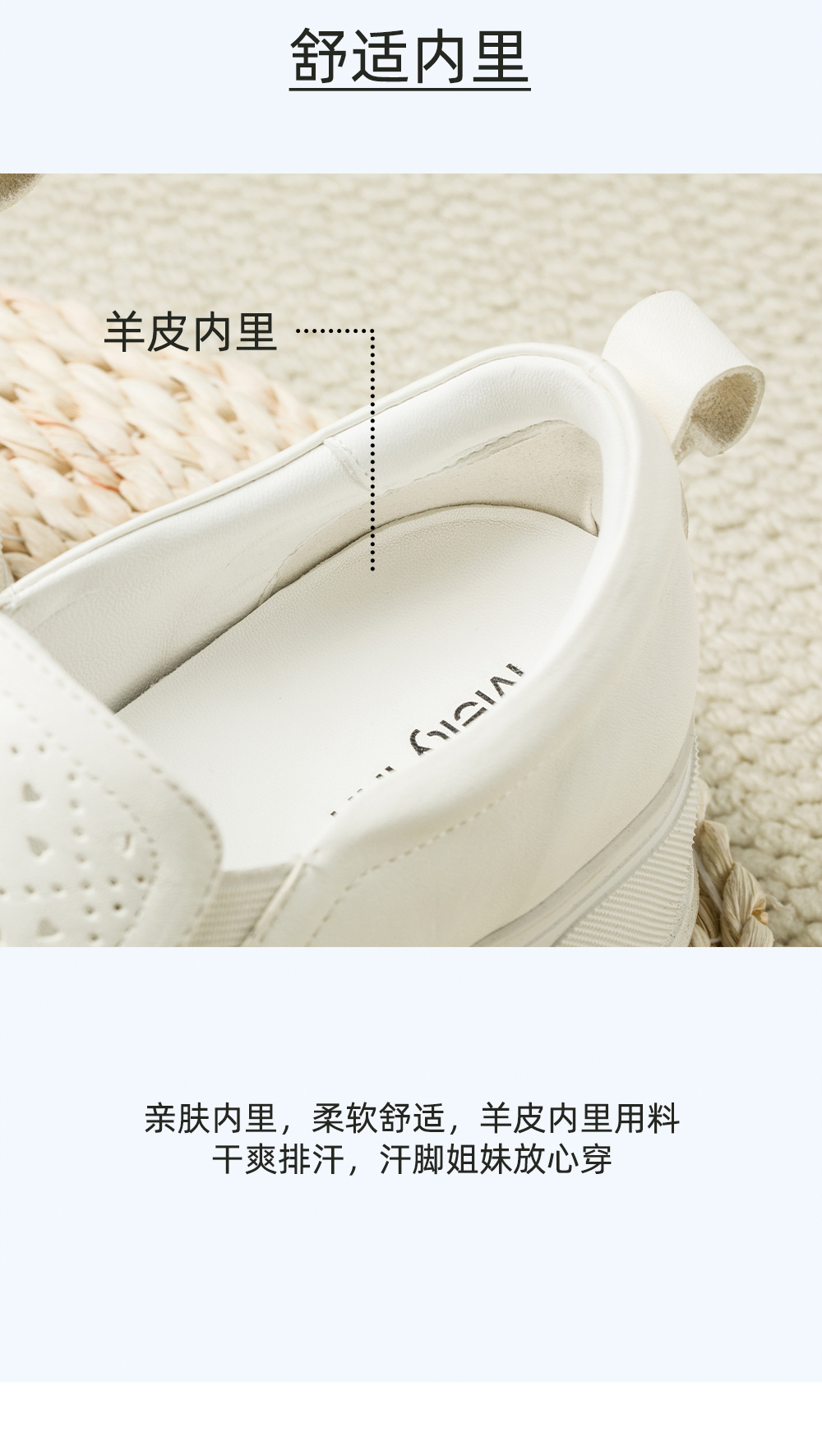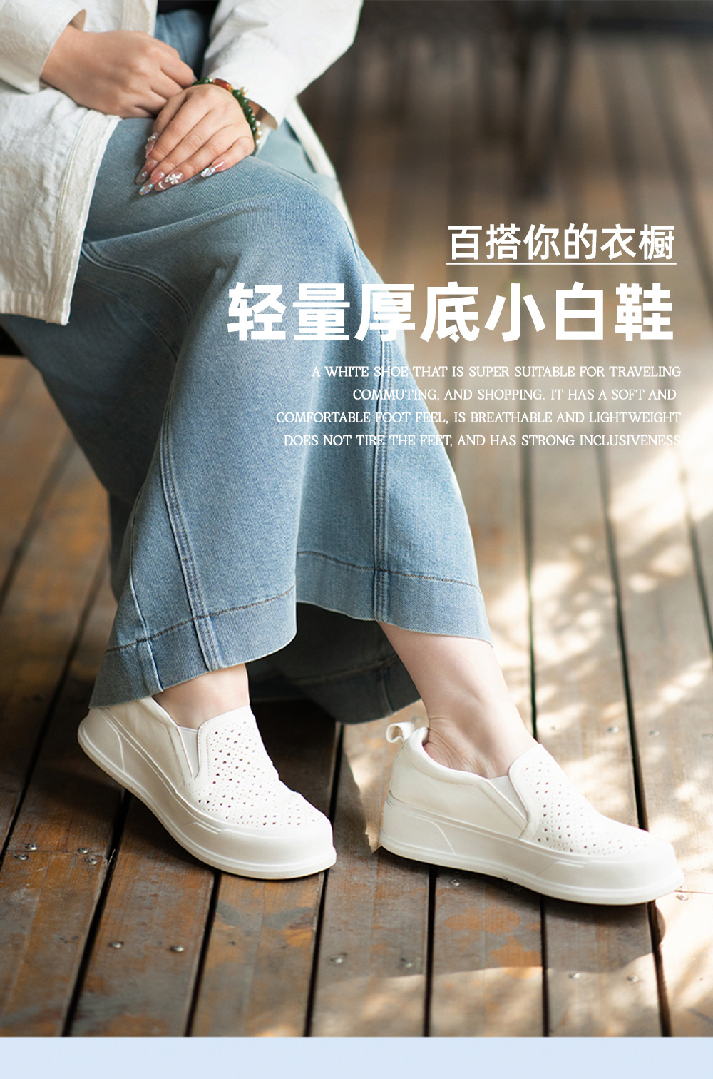 【一脚蹬 厚底小白鞋】👍❤️【🍀四叶草镂空】现货,跟高4厘米,鞋面环保牛皮,内里羊皮,鞋垫羊皮,鞋底橡胶大底,不易挤脚,包容显瘦,经典耐看