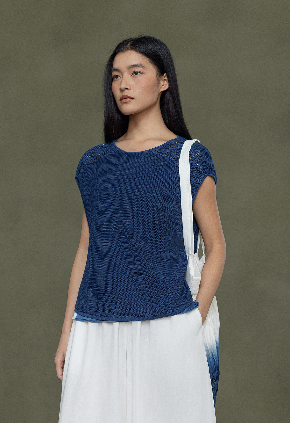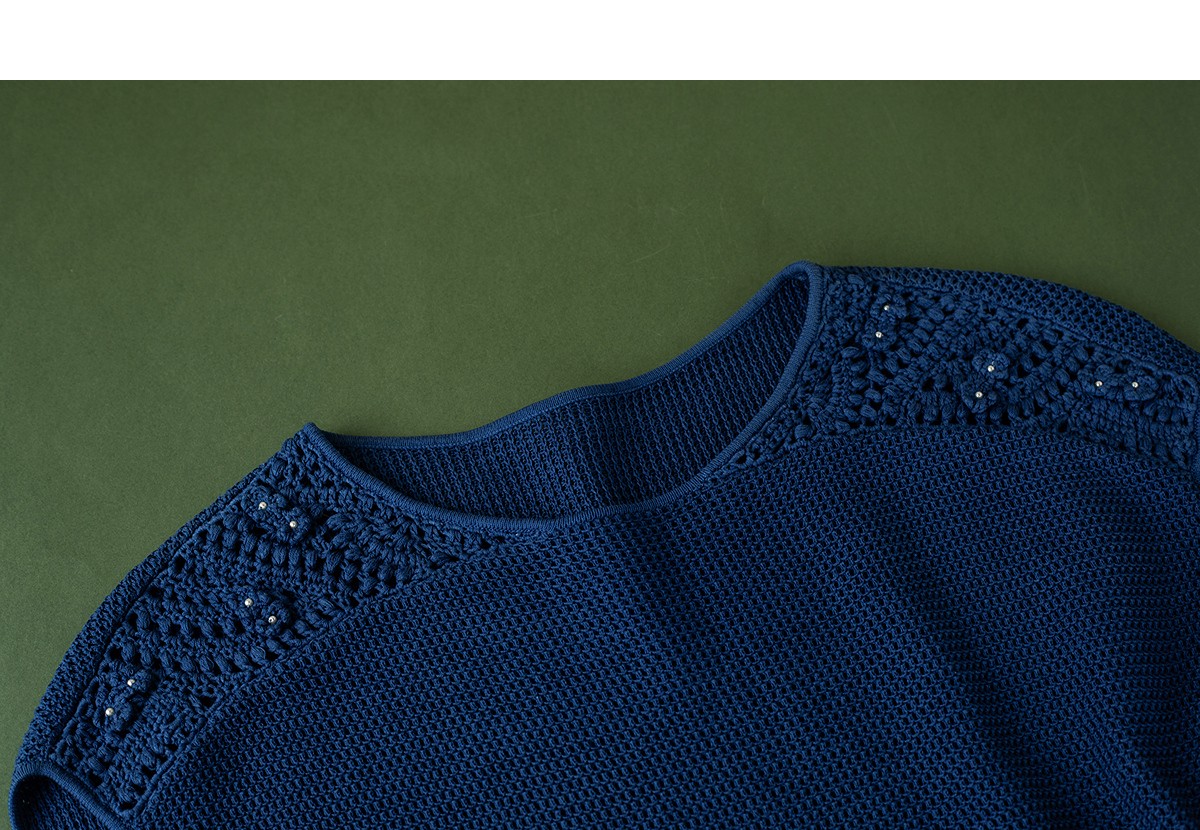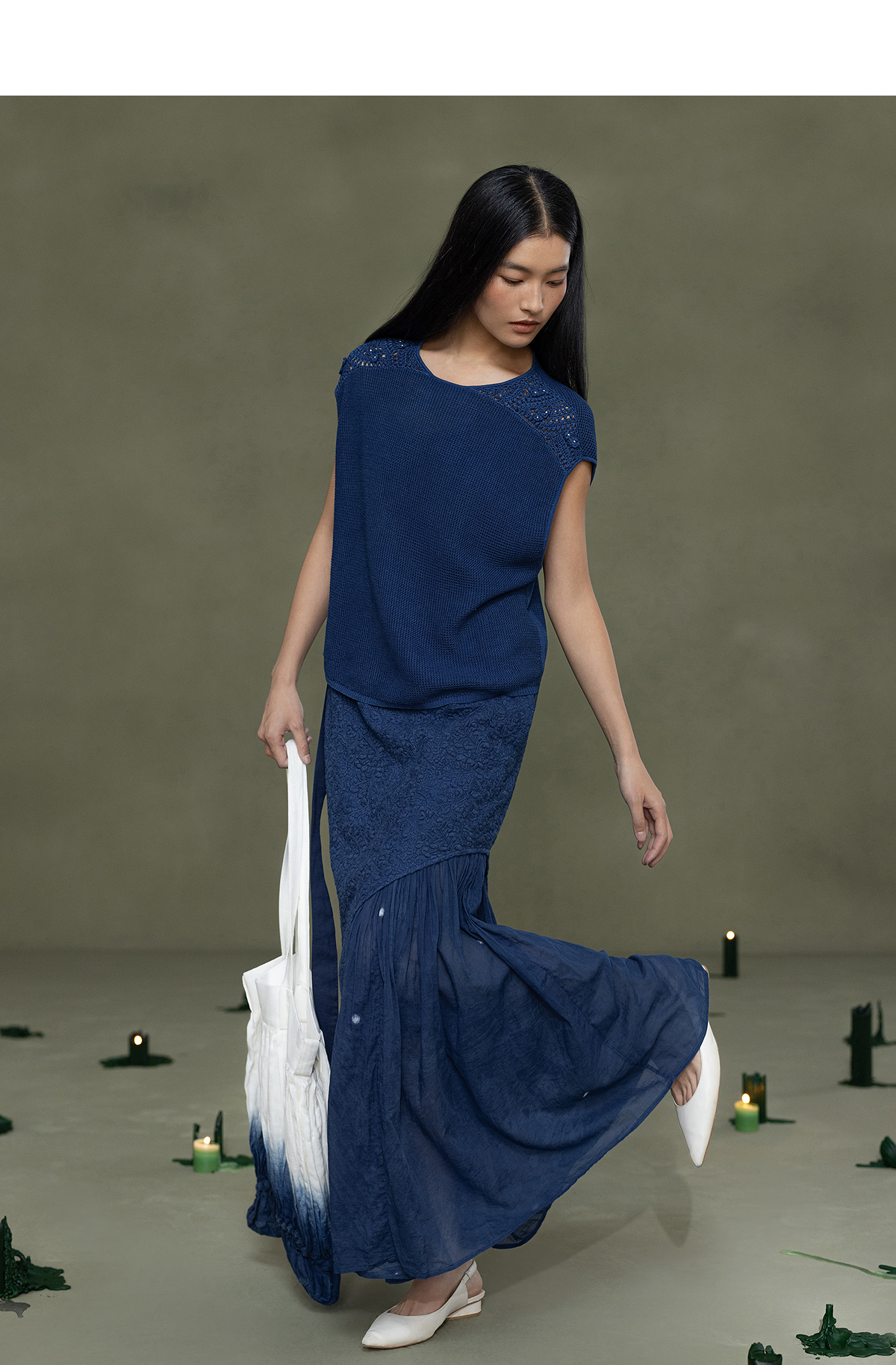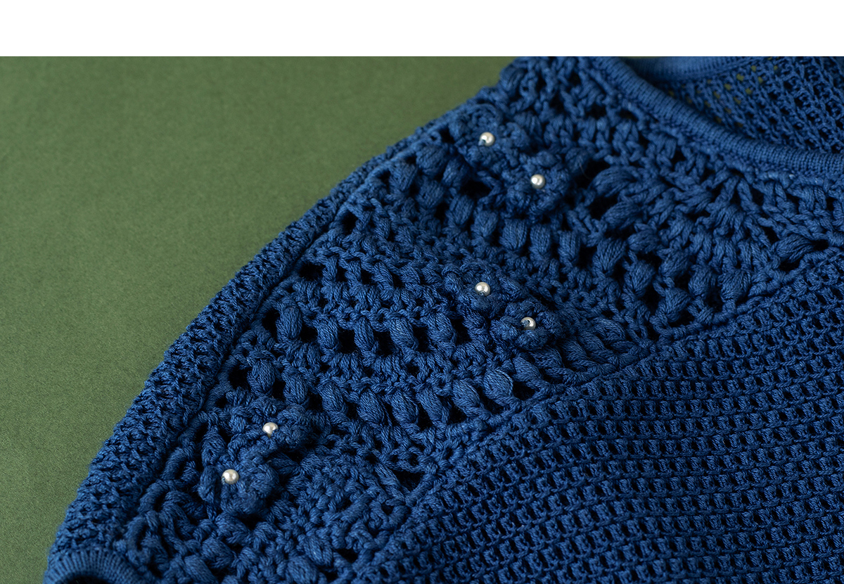 【林栖设计小店】植物染色|手工钩花植物蓝丝棉2026春新款镂空毛织上衣1961214