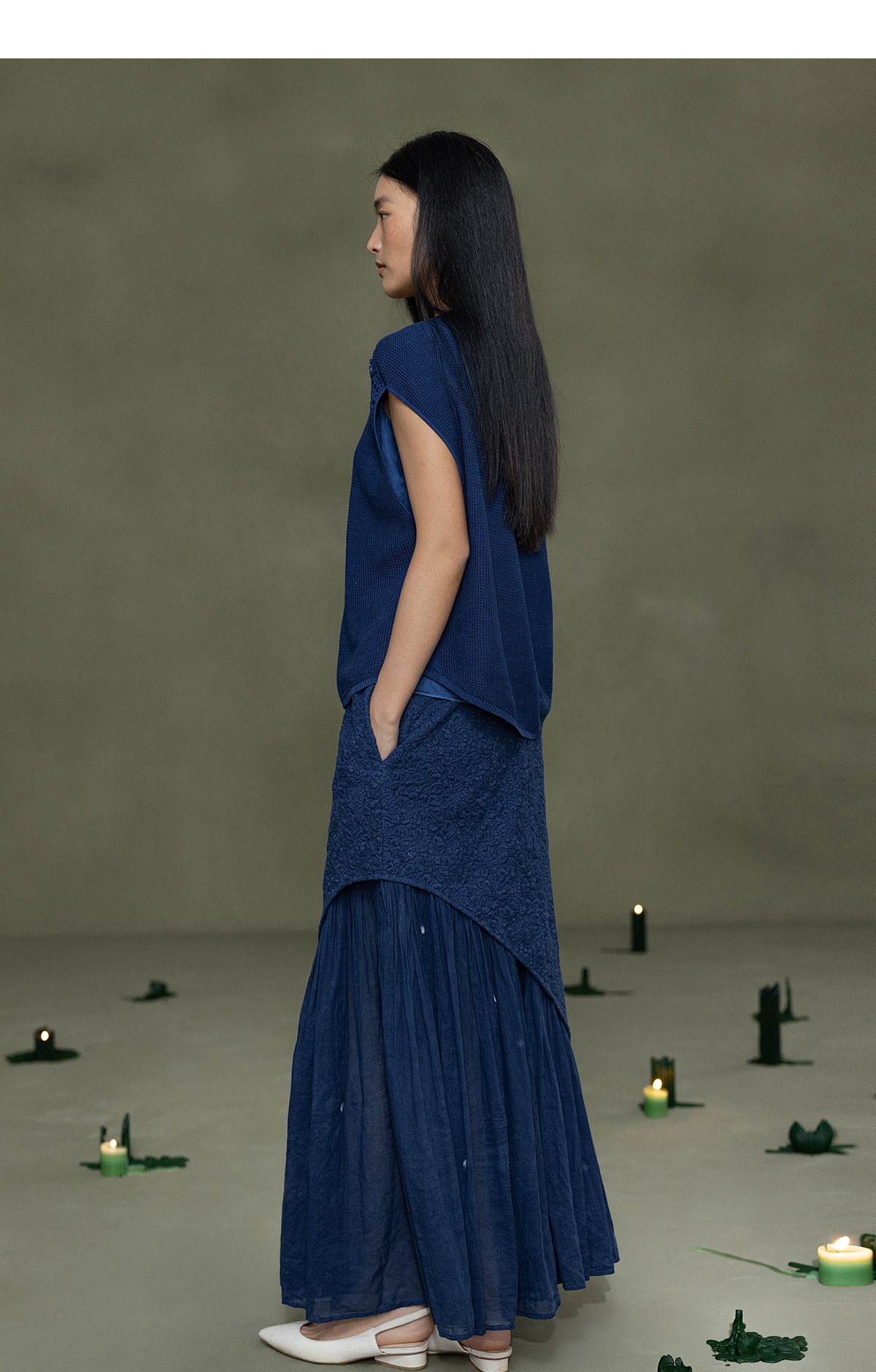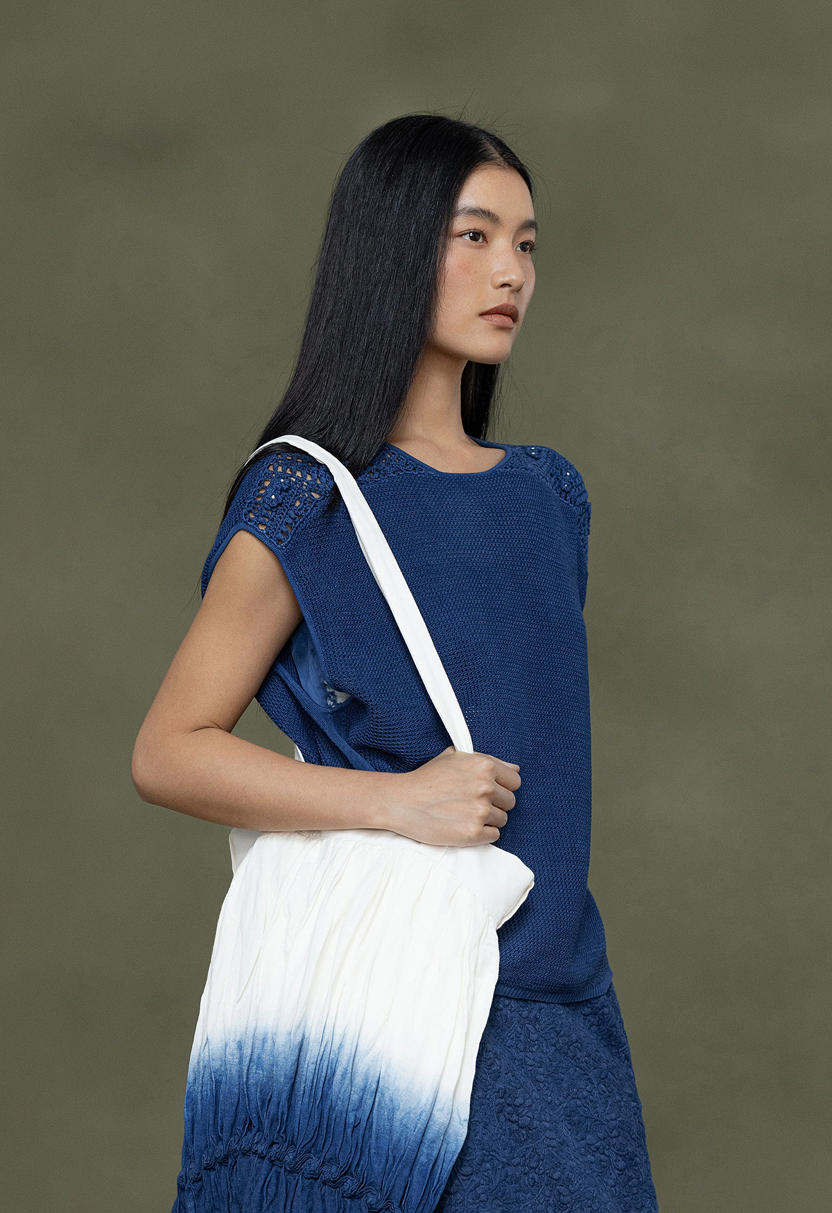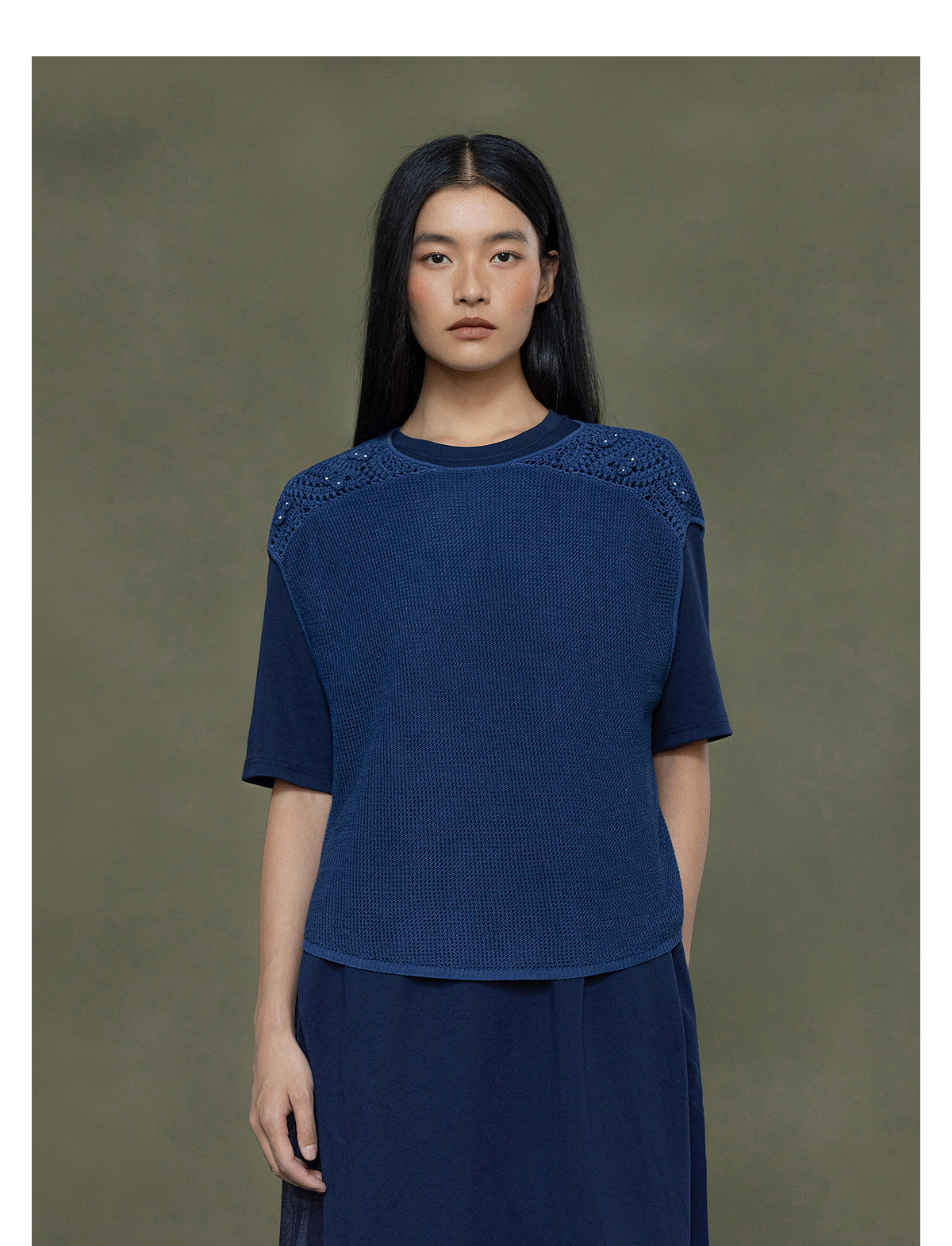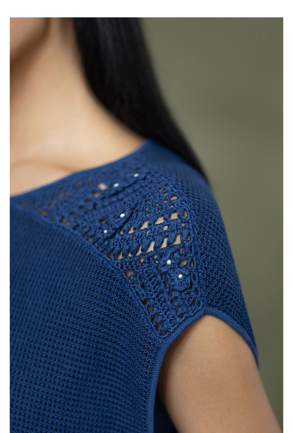 【林栖设计小店】植物染色|手工钩花植物蓝丝棉2026春新款镂空毛织上衣1961214