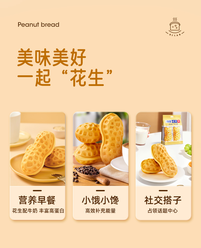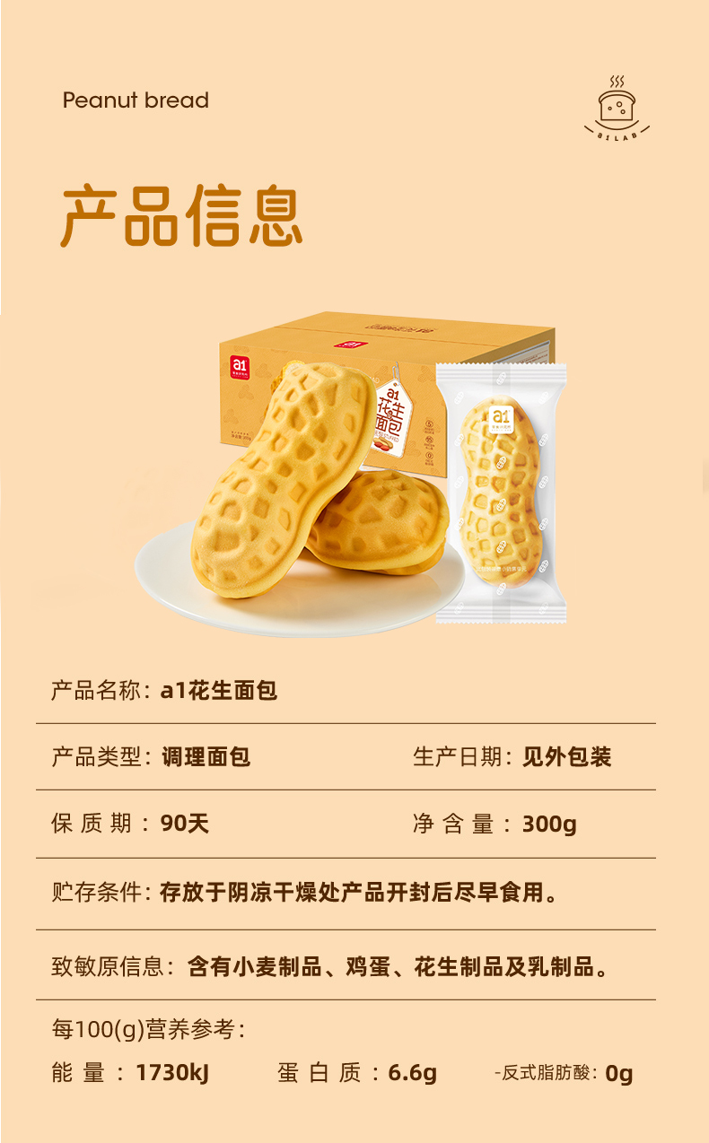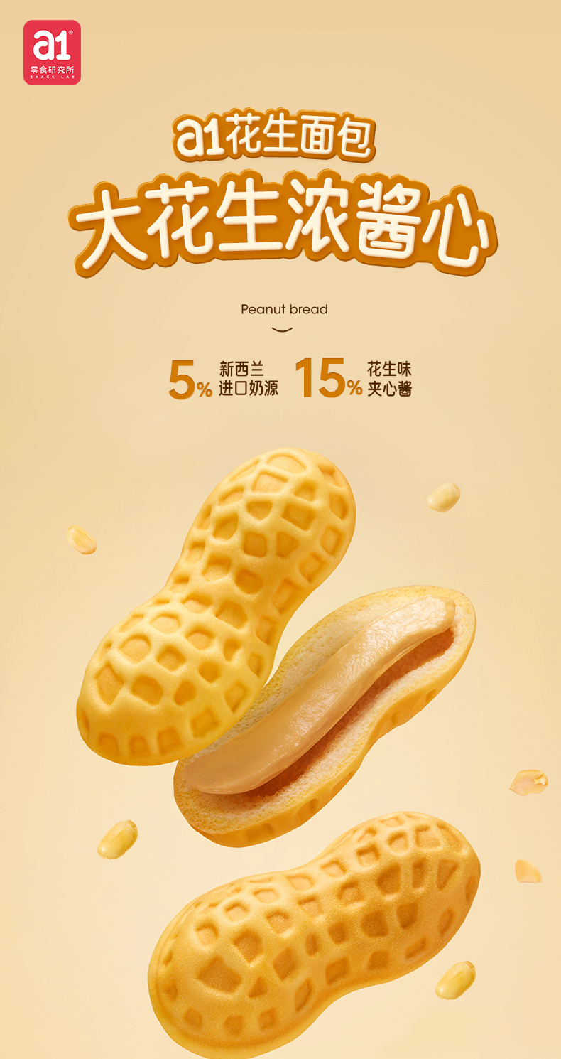 a1花生面包营养早餐休闲零食糕点下午茶办公室夹心食品整箱300g