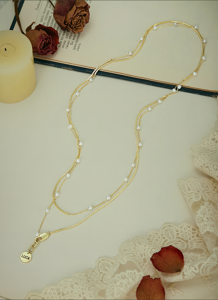 Oflye潮流饰品 长款可调节珍珠叠戴项链女轻奢小众新款爆款气质时尚秋冬毛衣链
