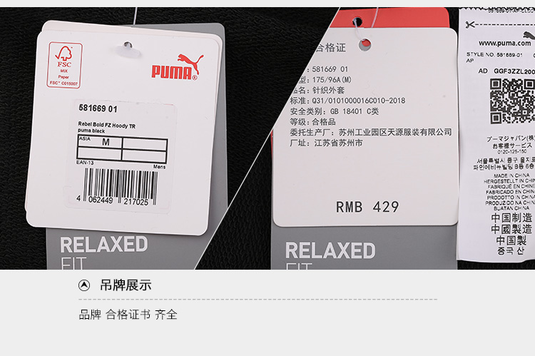小李子专柜正品PUMA彪马Rebel Bold FZ Hoody TR外套581669-01