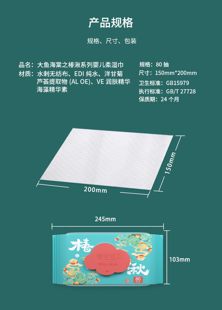 【史低价!49元12包】碧芭宝贝大鱼海棠之椿湫系列婴儿柔湿巾80抽12包