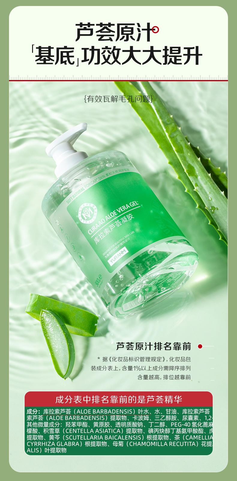 【微信会员专享】丨天然库拉索芦荟胶大瓶500g 祛痘淡印止痒晒后修护补水