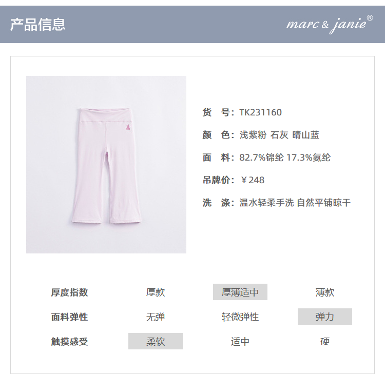 【凉感防晒】马克珍妮夏装 女童弹力运动打底裤瑜伽喇叭裤231160