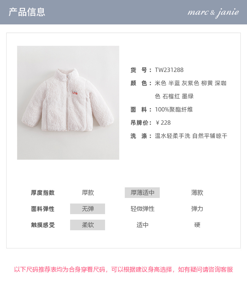 【抗静电】马克珍妮秋装男女童时尚舒棉绒立领外套231288X