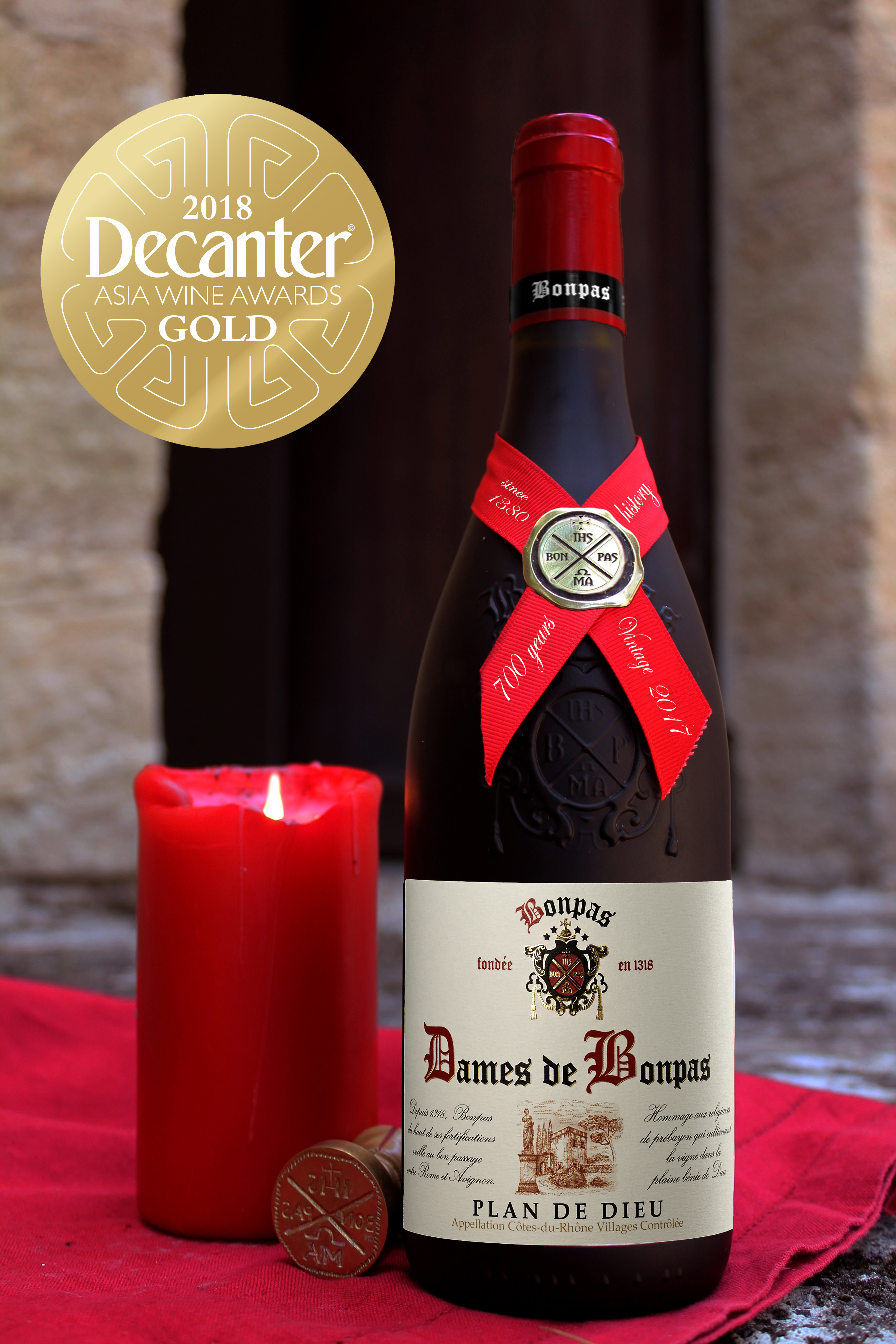 Bonpas波帕修道院城堡由«让二十二世»教皇于1318年敕令修建,至今已有700多年历史。Bonpas波帕的名字源于« Bon Passage »,法语中是“顺利”的意思。瓶身正背面均有雕花,颜值超高。旺图这款酒酒精度高,果香浓郁,口感柔顺。金奖,红色礼盒,是团购、送礼佳品。