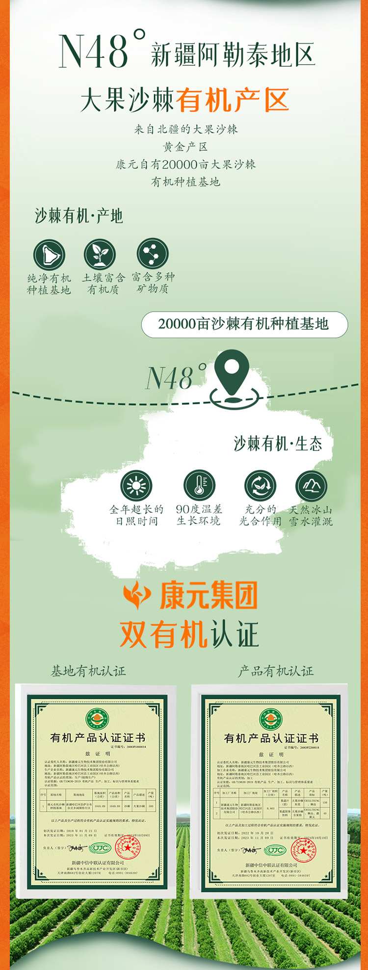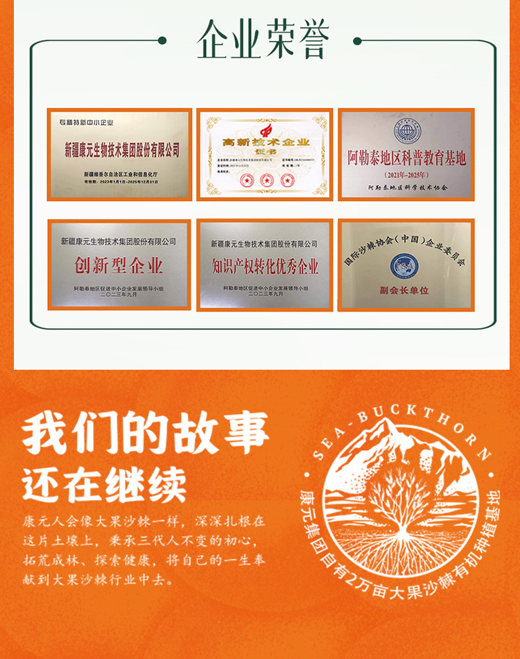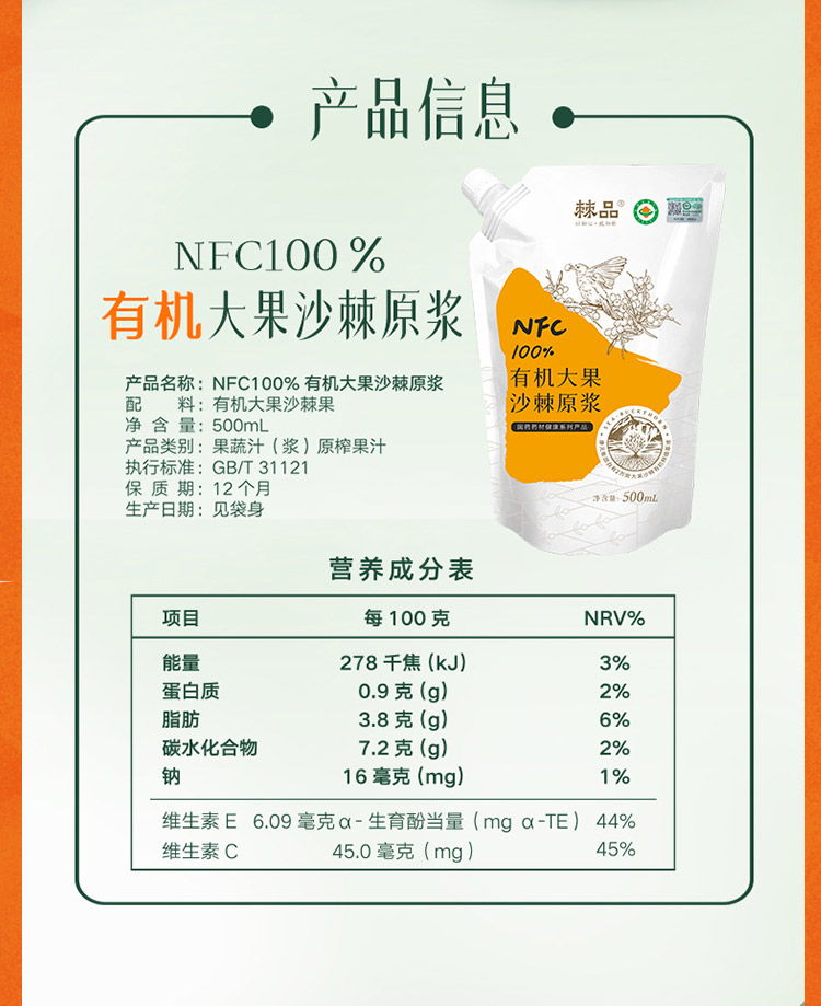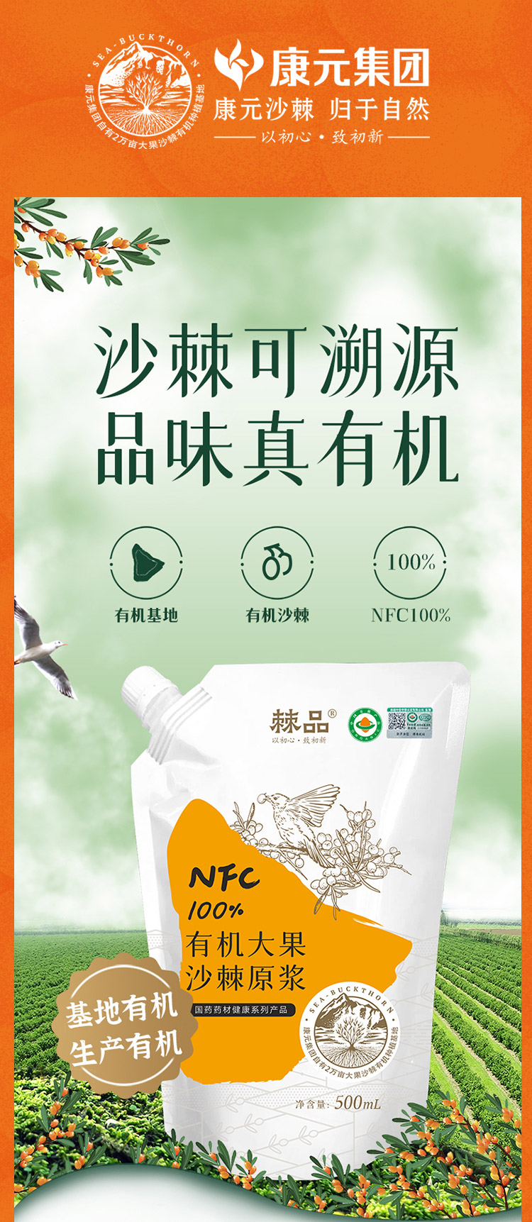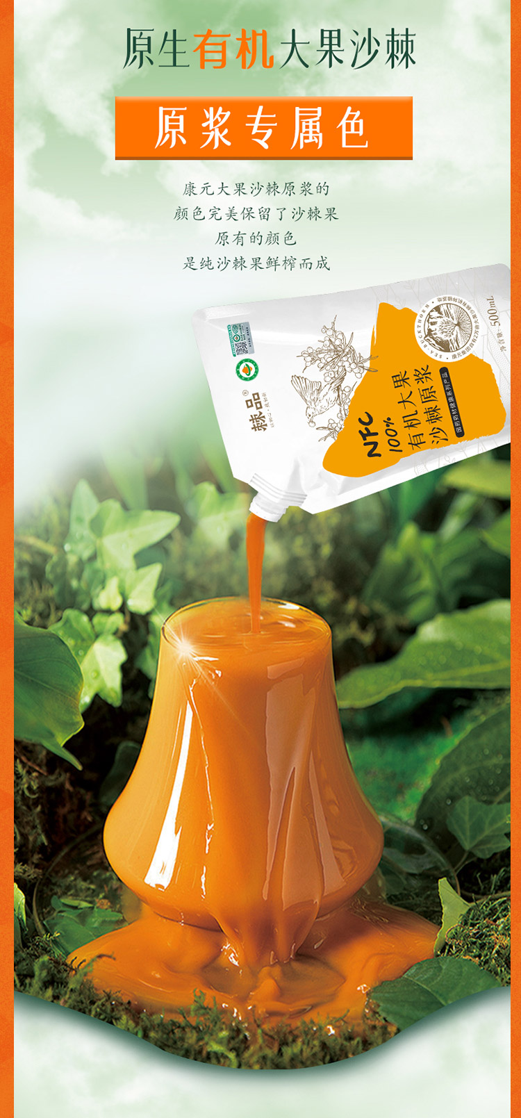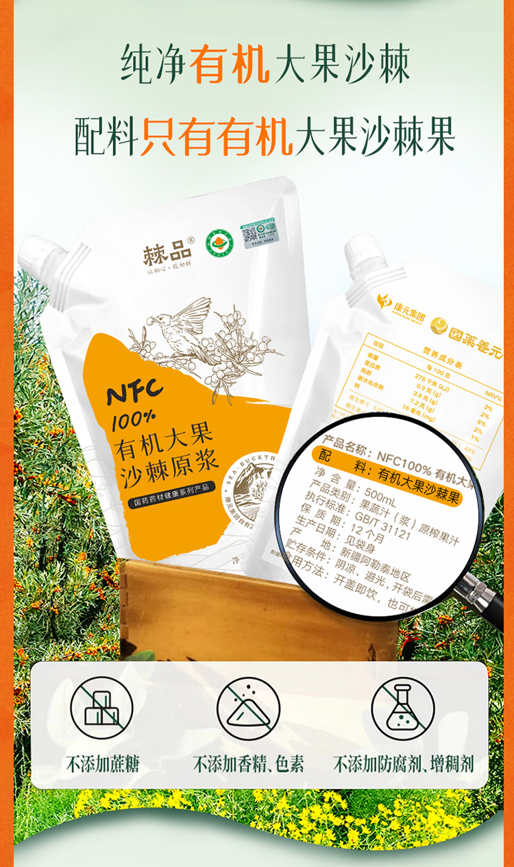 新疆康元沙棘有机原浆500ml/袋