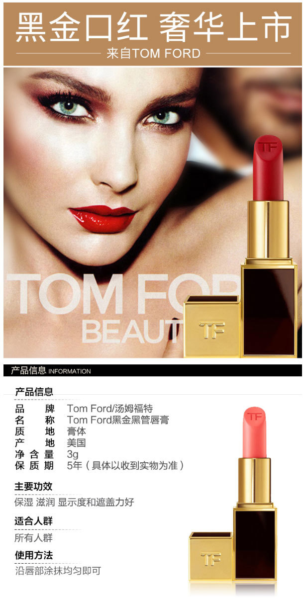 汤姆福特Tom Ford TF 哑光黑管黑金唇膏口红15#WILDGINGER 版本随机发货