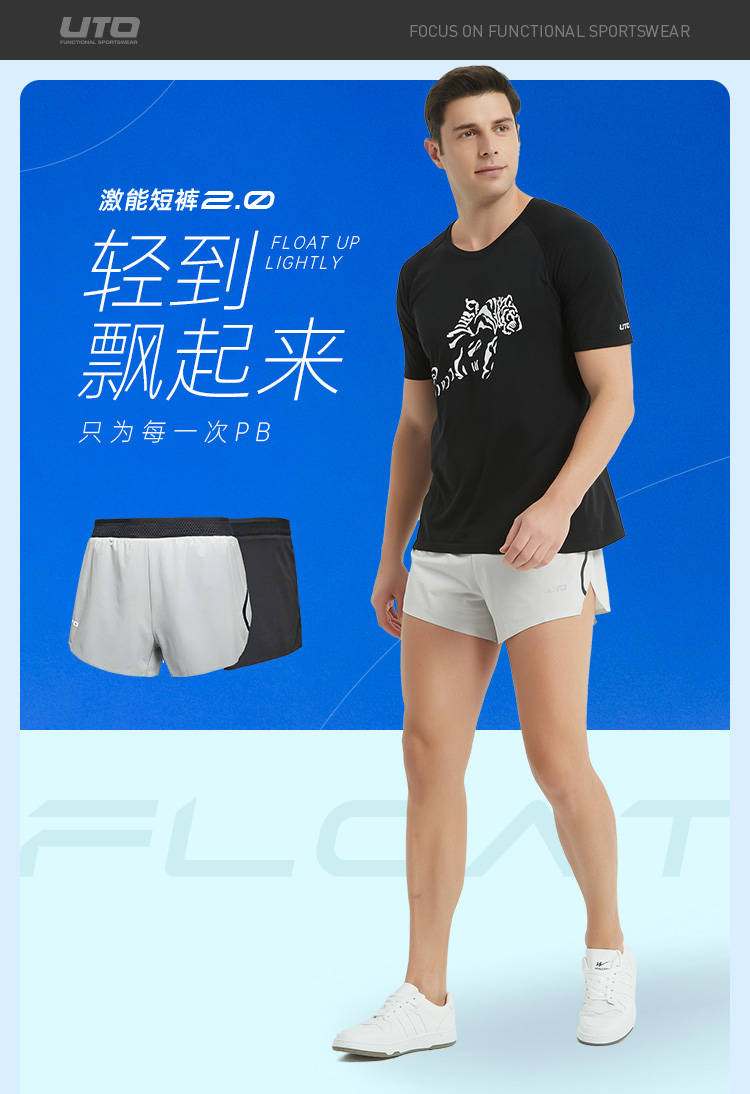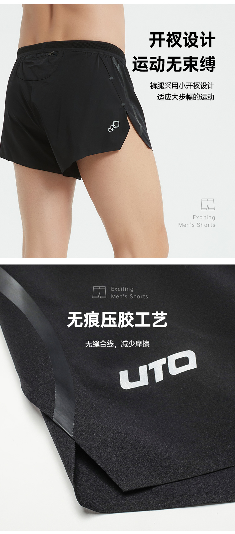UTO/悠途跑步短裤男子马拉松竞速三分裤外穿排汗三角内衬快干裤