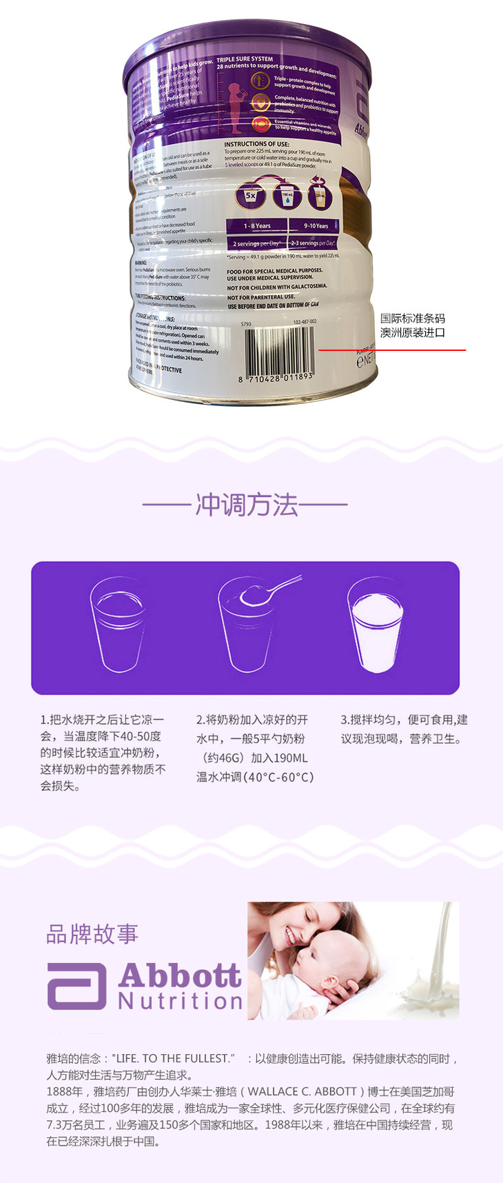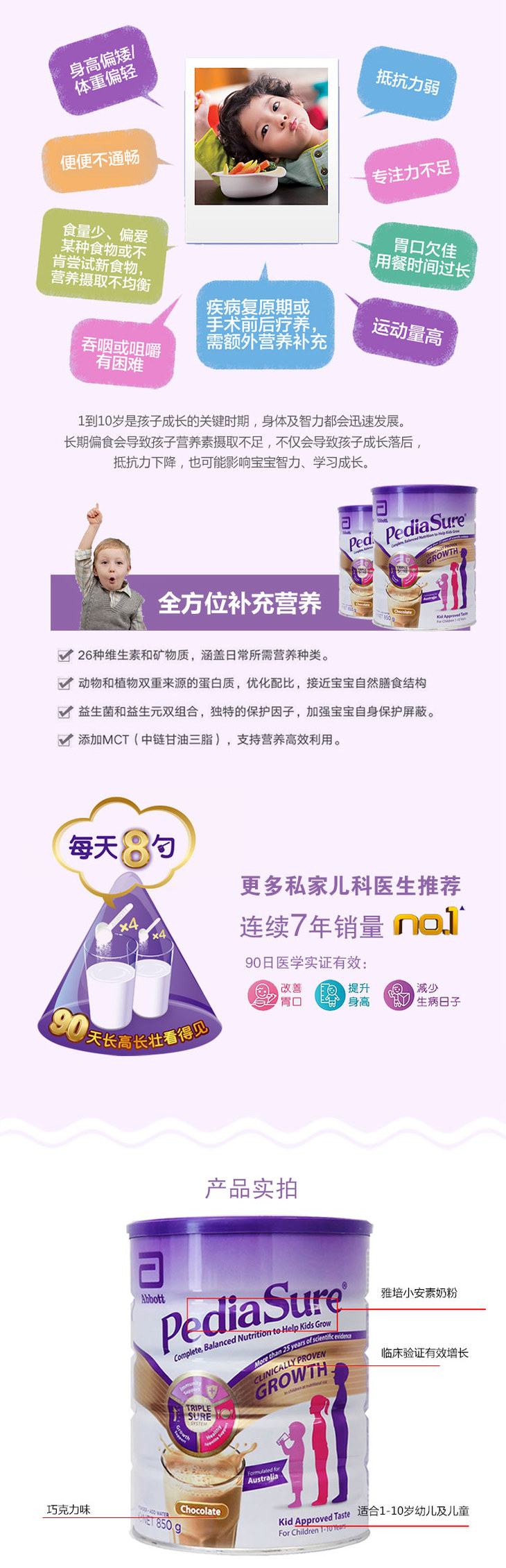 澳洲PediaSure雅培小安素奶粉巧克力味
