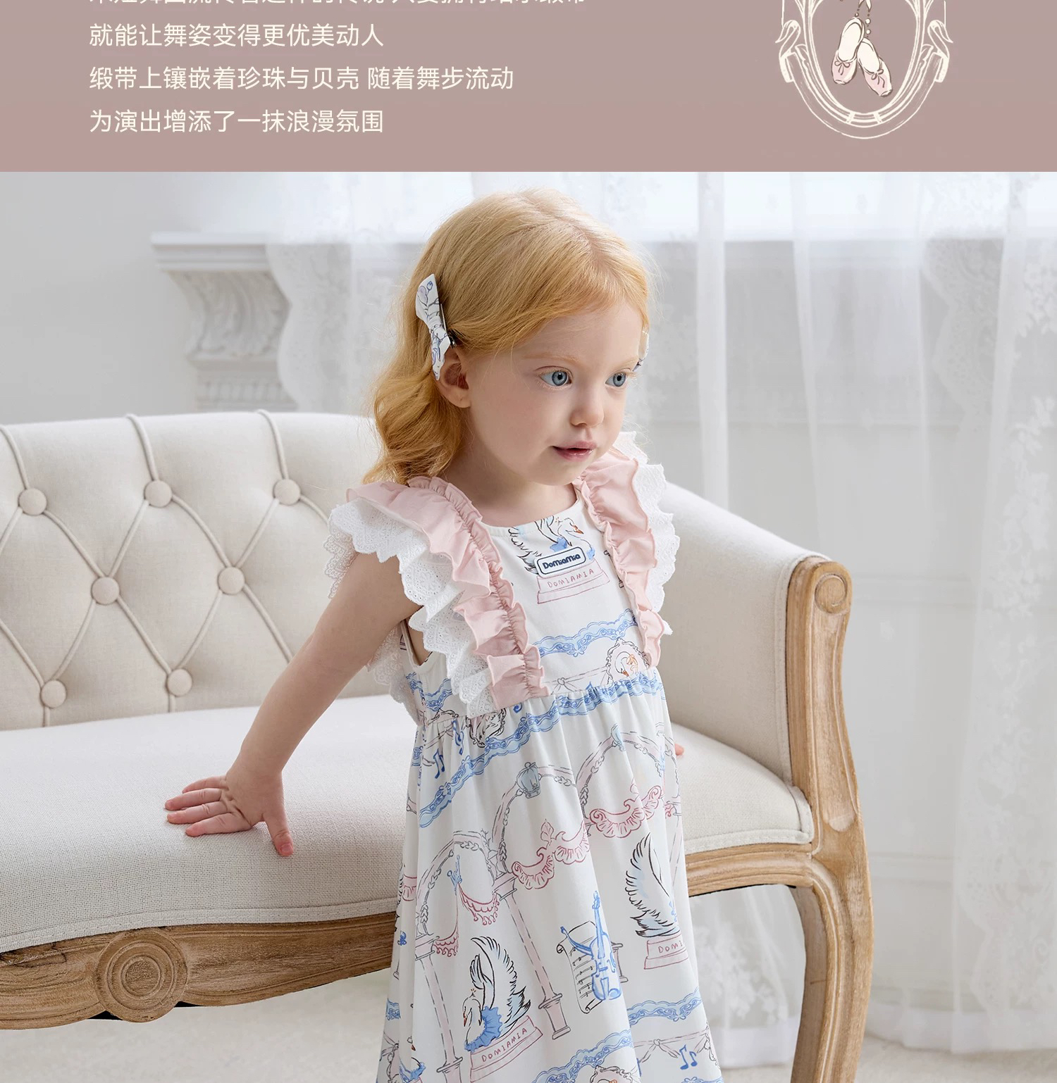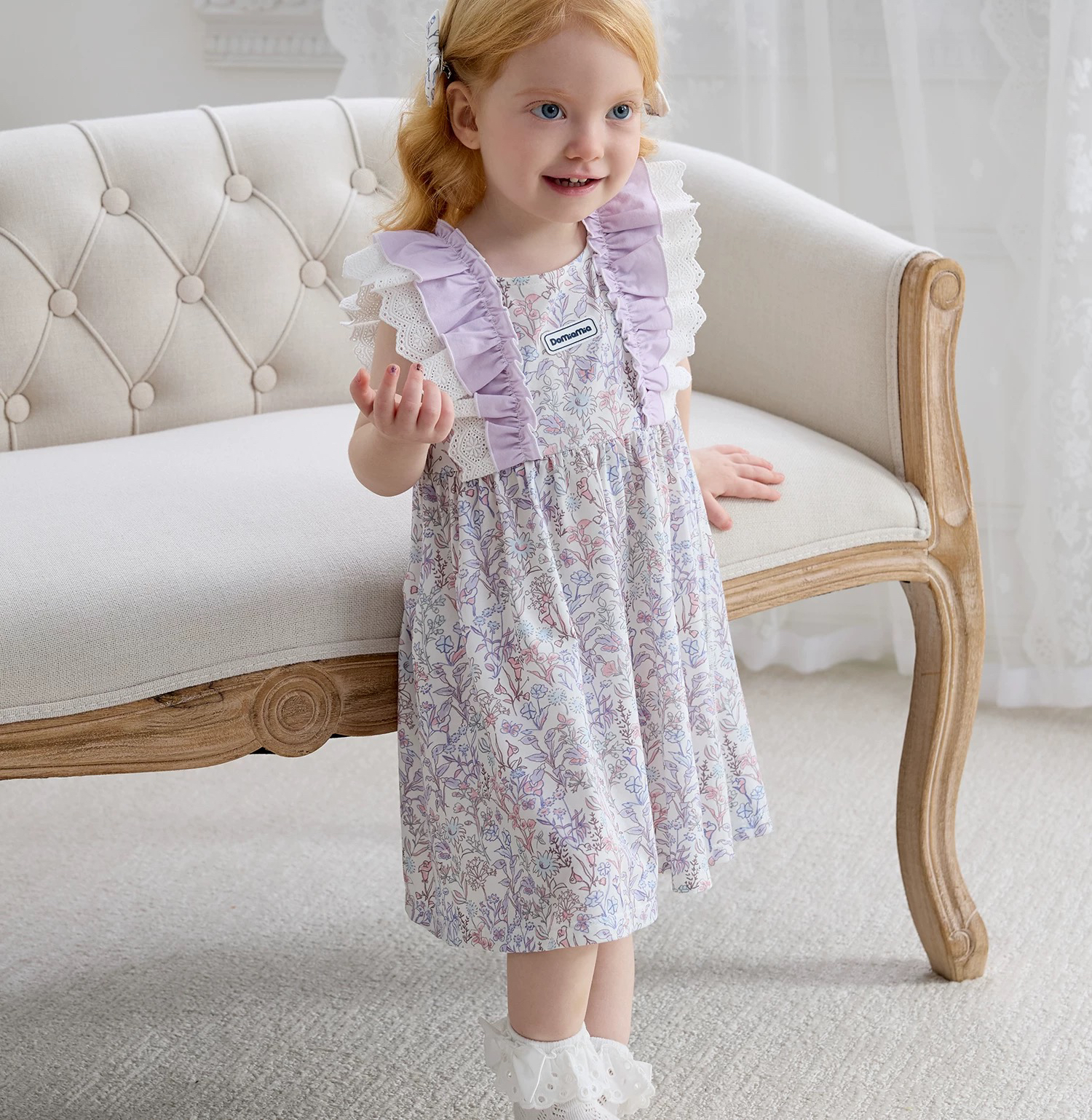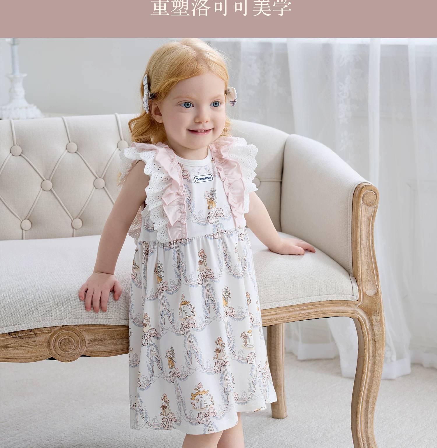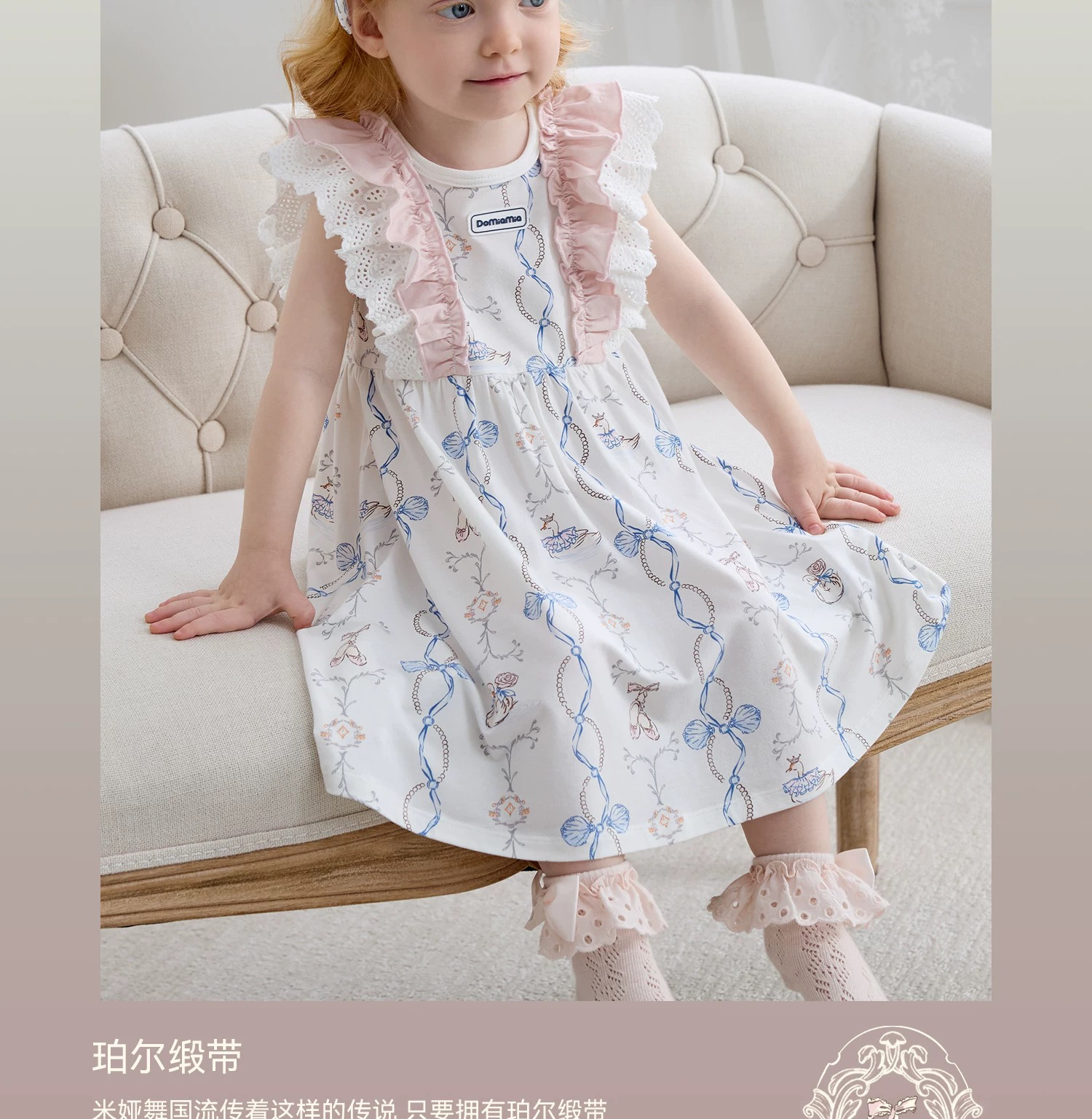 Domiamia 女宝宝针织无袖方领花边连衣裙 新款可爱中长款公主裙