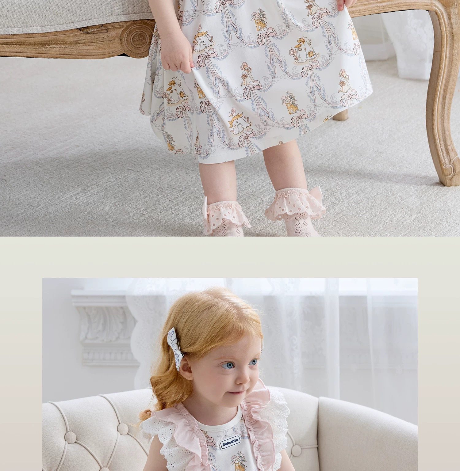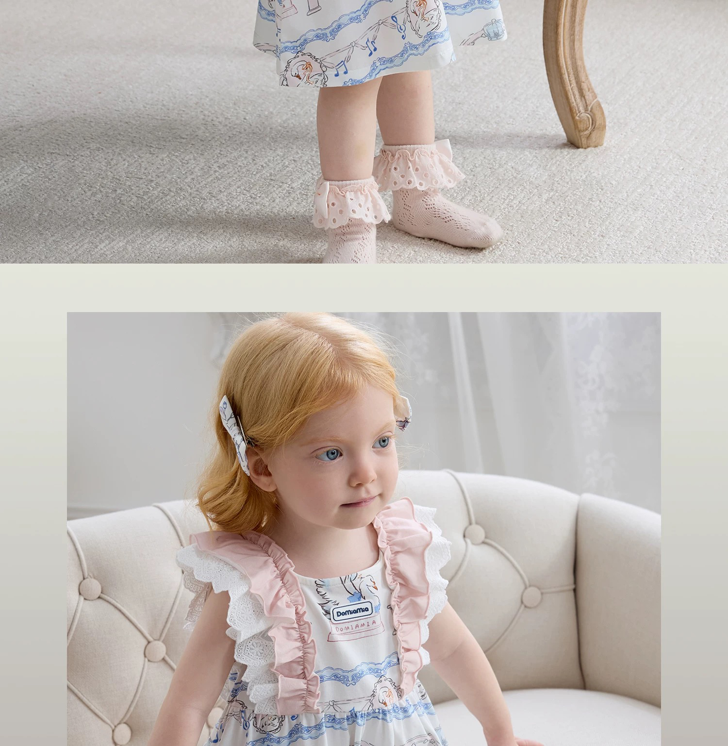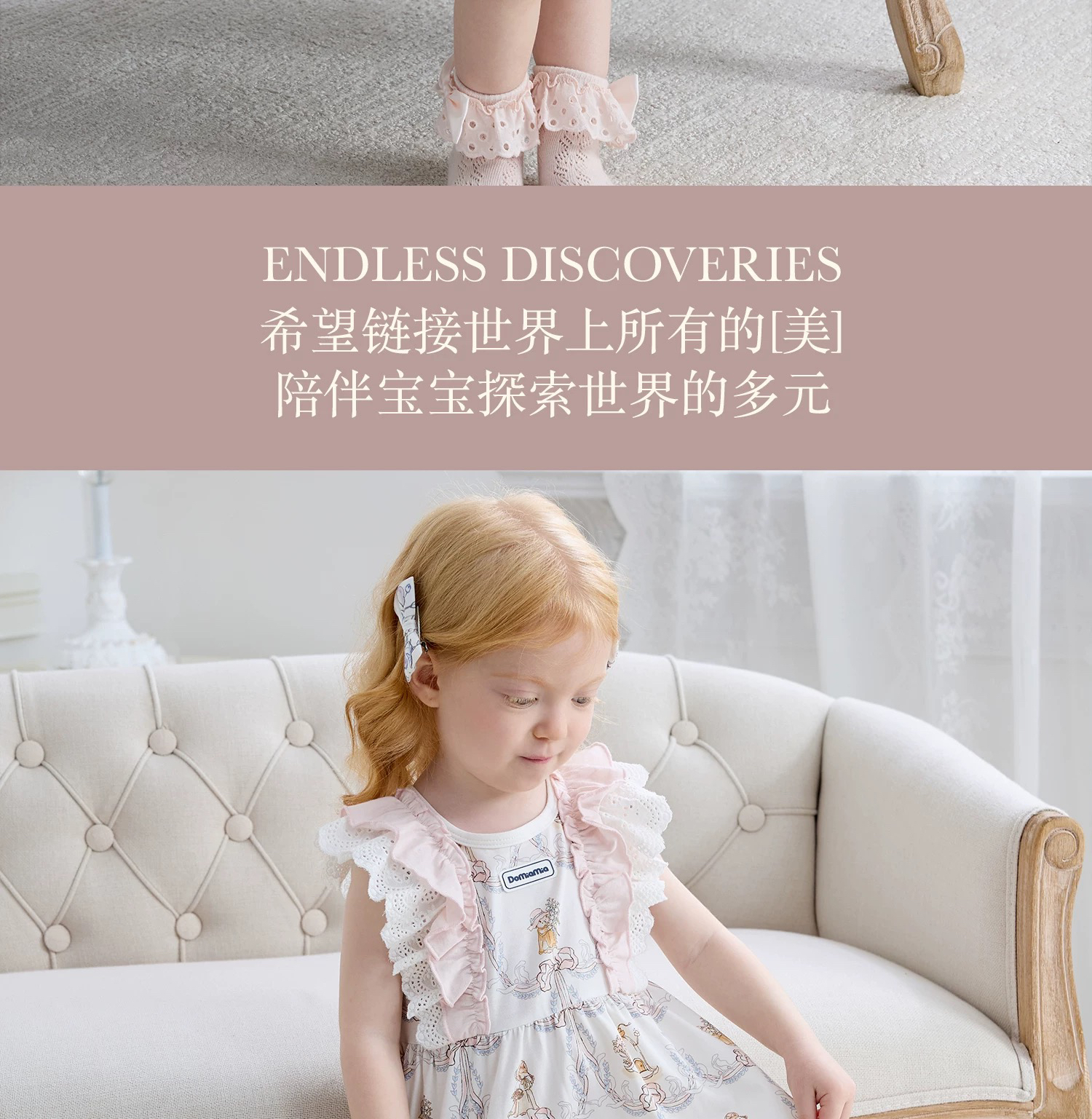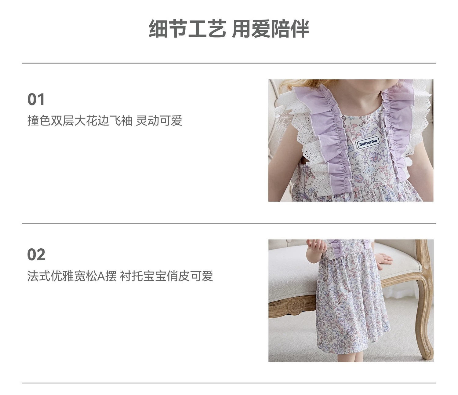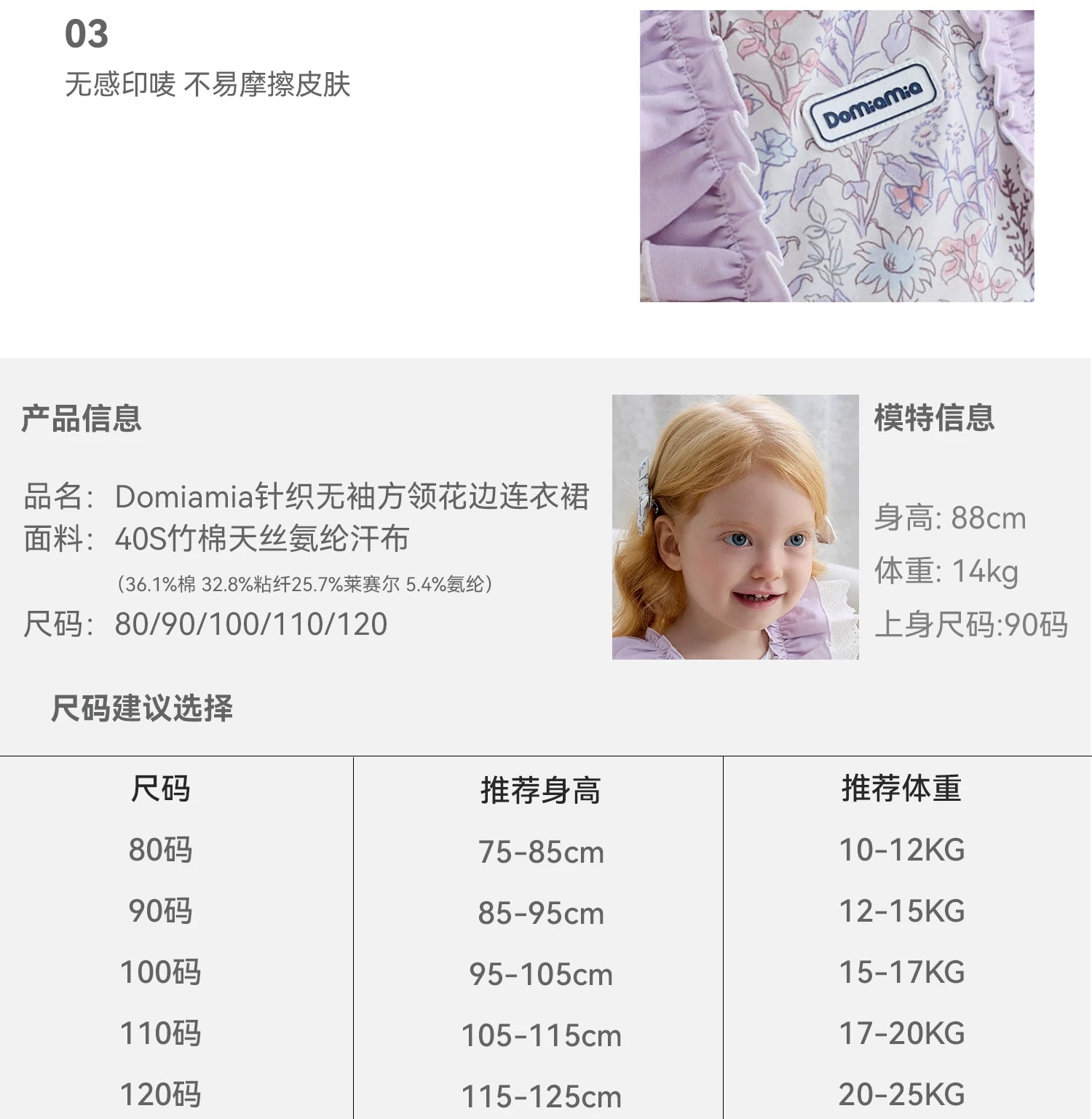 Domiamia 女宝宝针织无袖方领花边连衣裙 新款可爱中长款公主裙