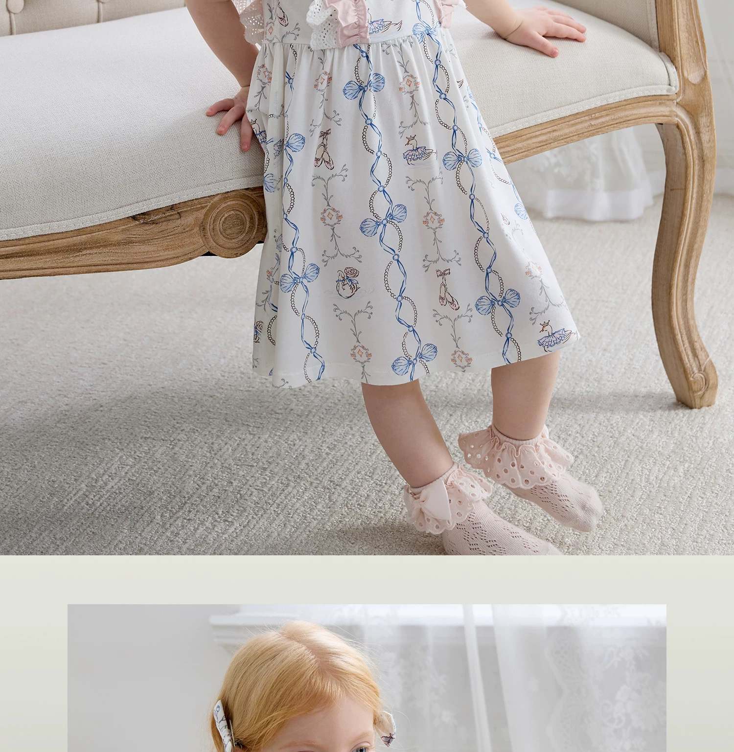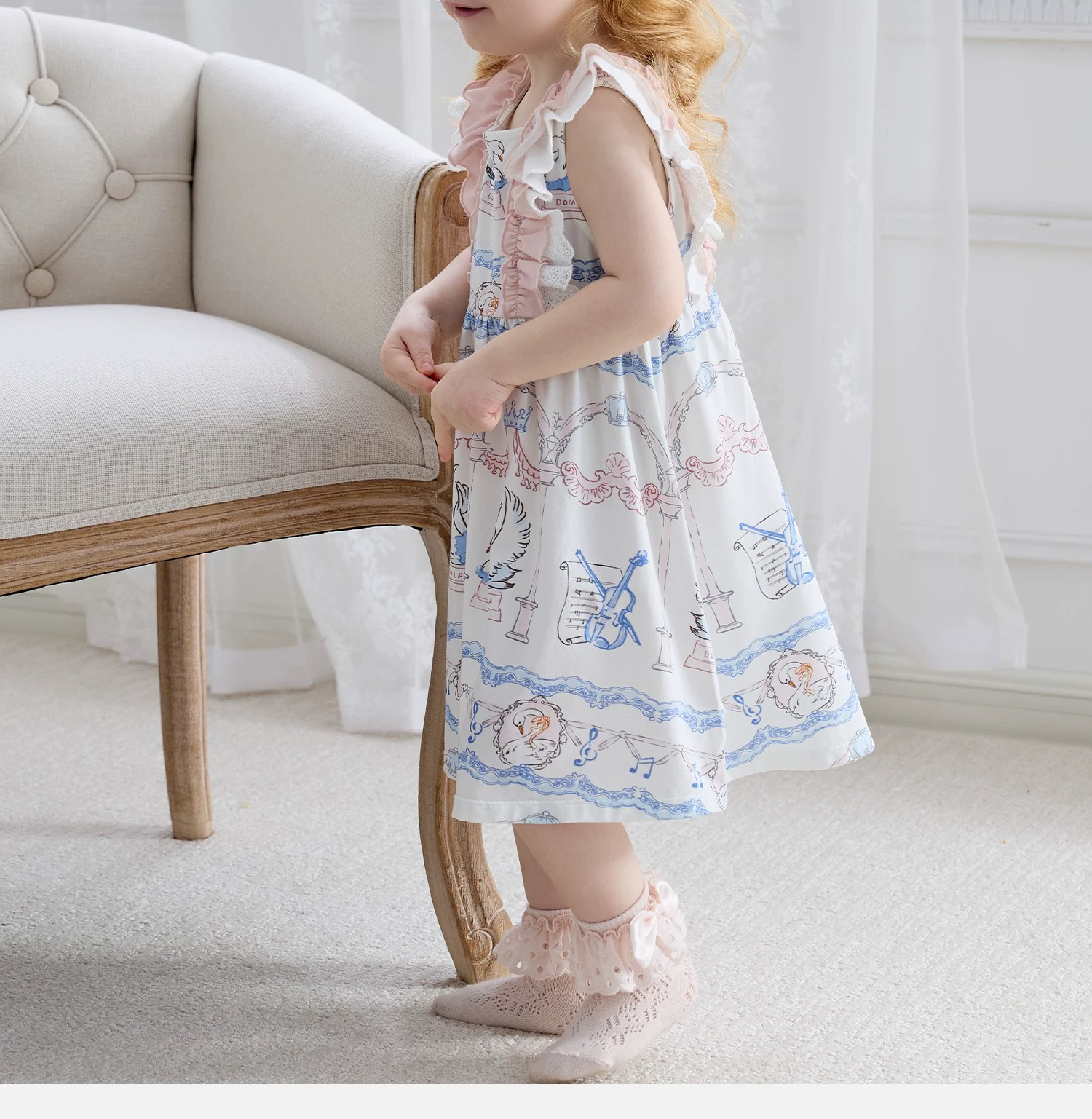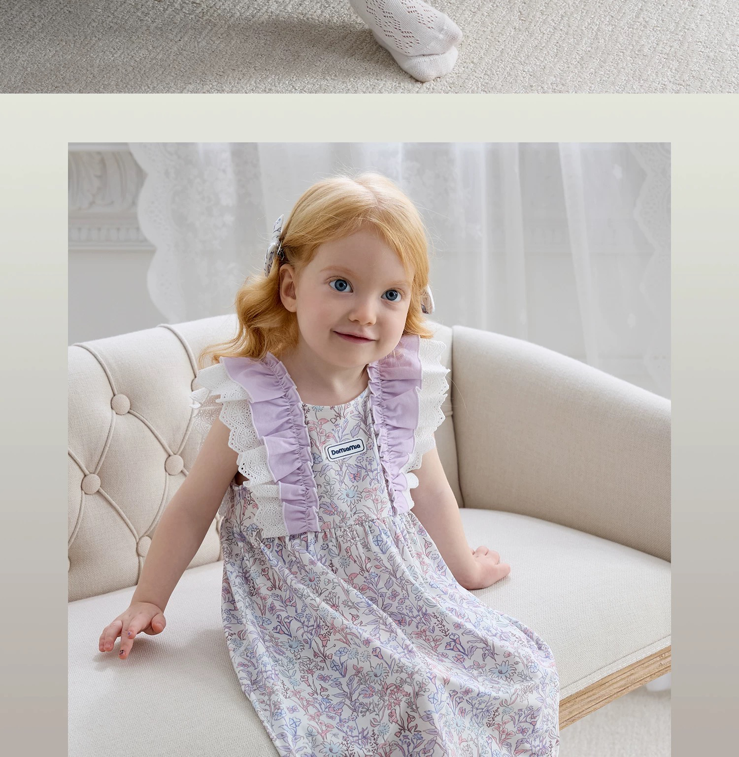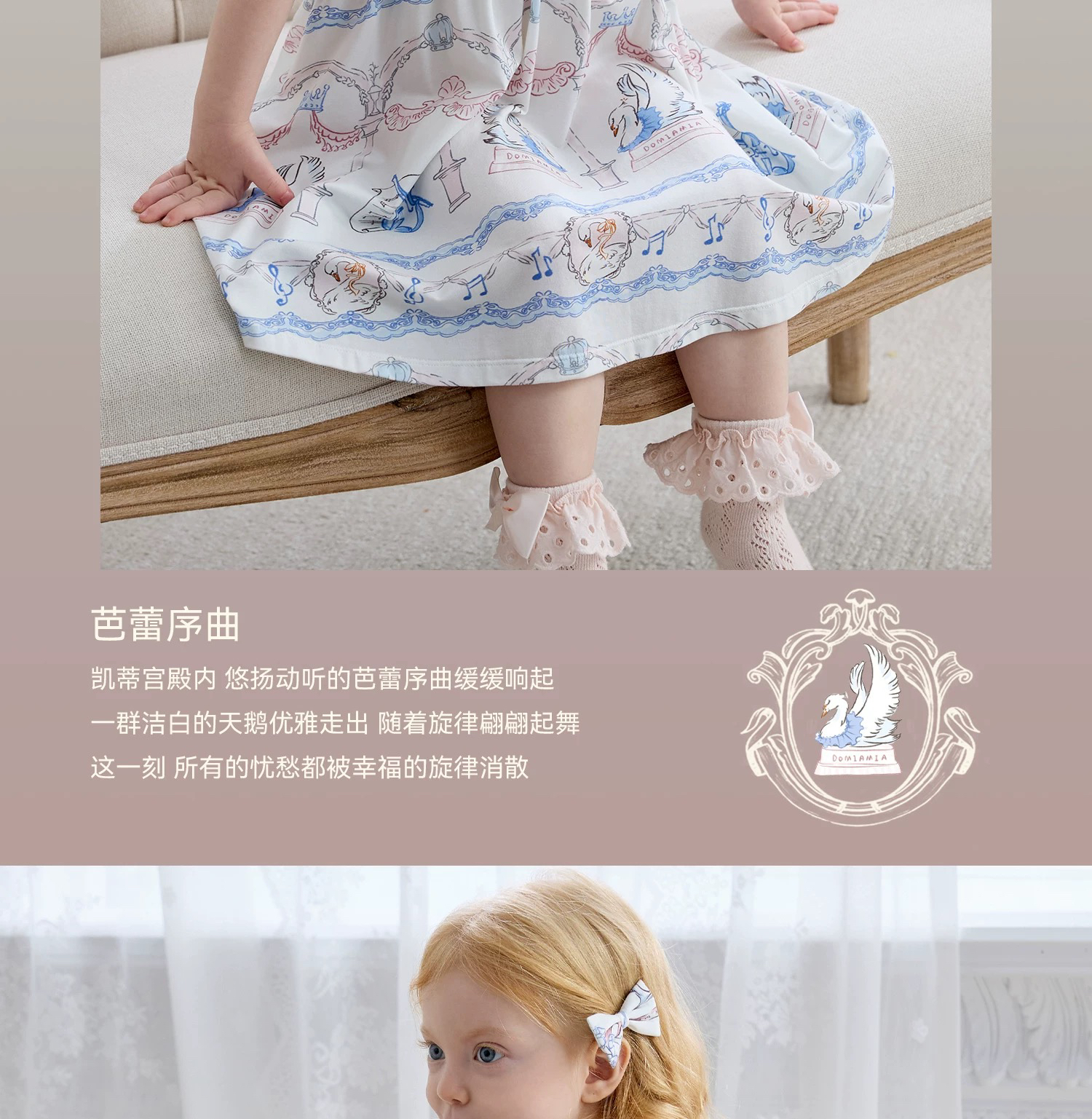 Domiamia 女宝宝针织无袖方领花边连衣裙 新款可爱中长款公主裙