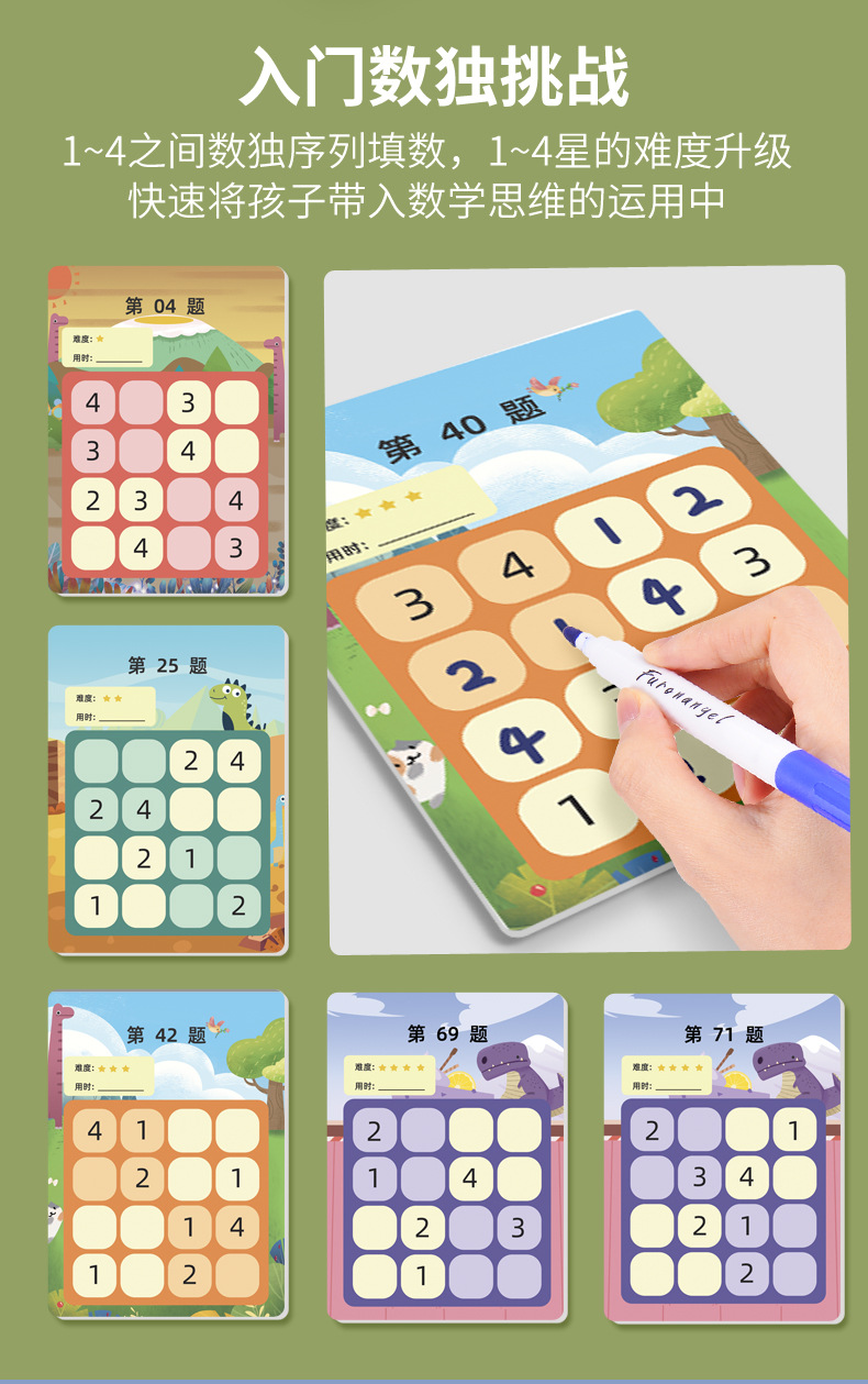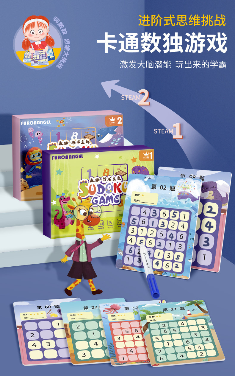 【从入门到进阶 儿童数独练习游戏礼盒】芙蓉天使卡通数独游戏 儿童潜能开发 逻辑思维训练 沉浸式体验